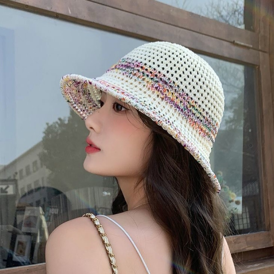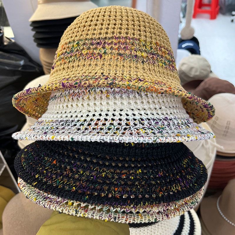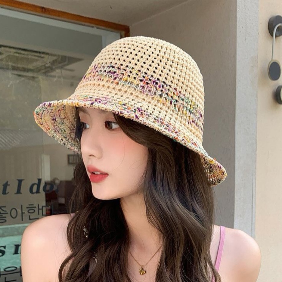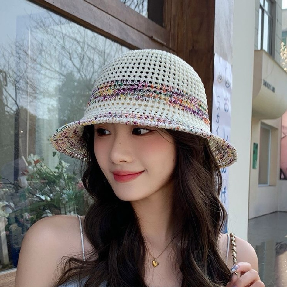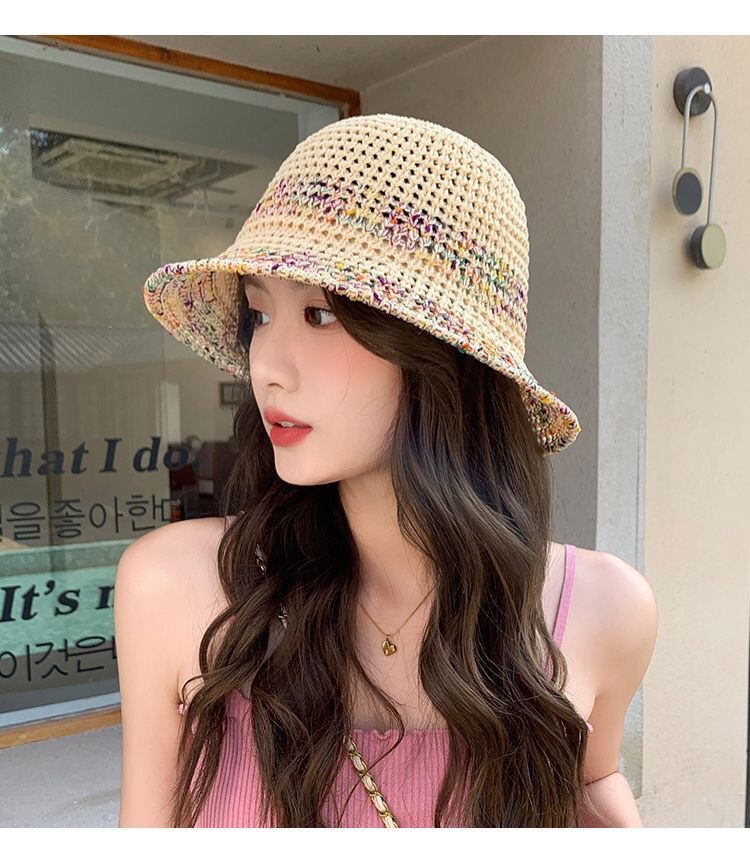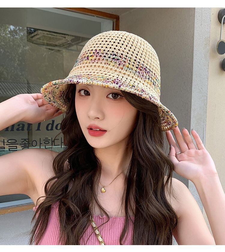 夏季甜美百搭镂空编织渔夫帽子女款新款沙滩彩色防晒遮脸盆帽
