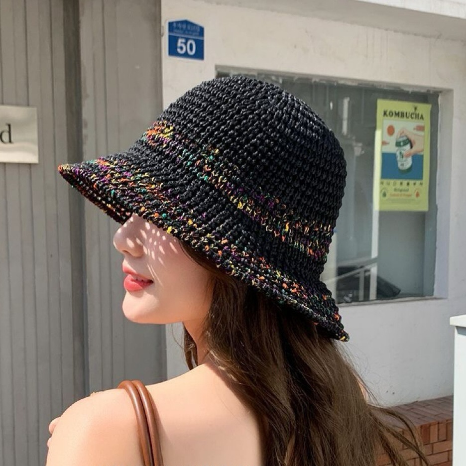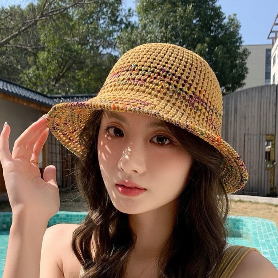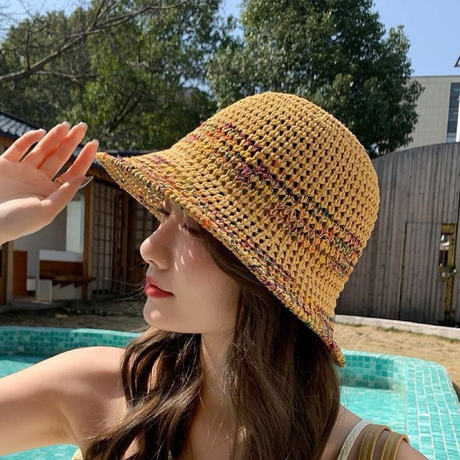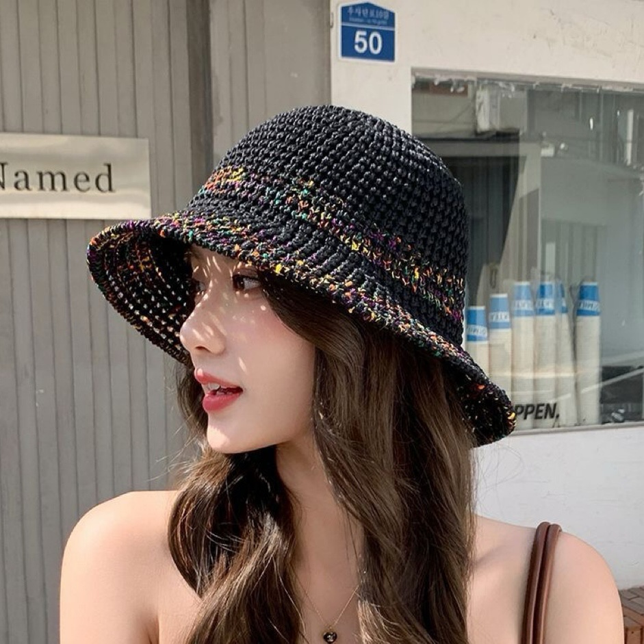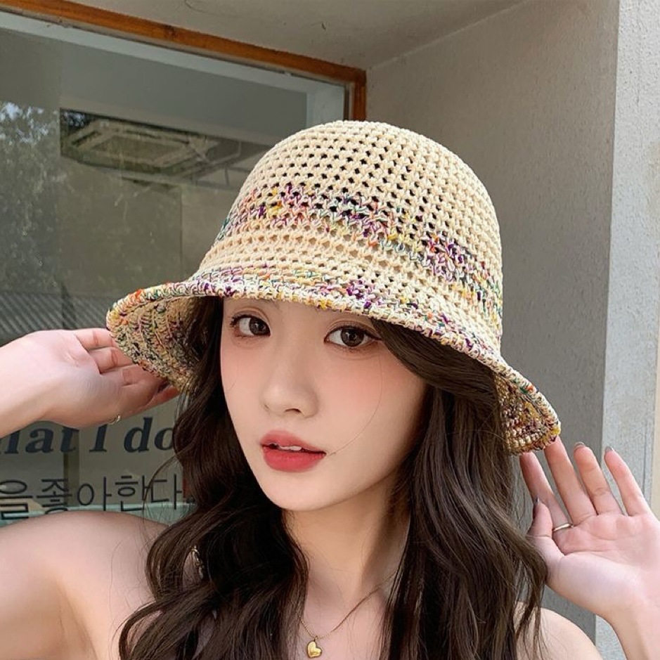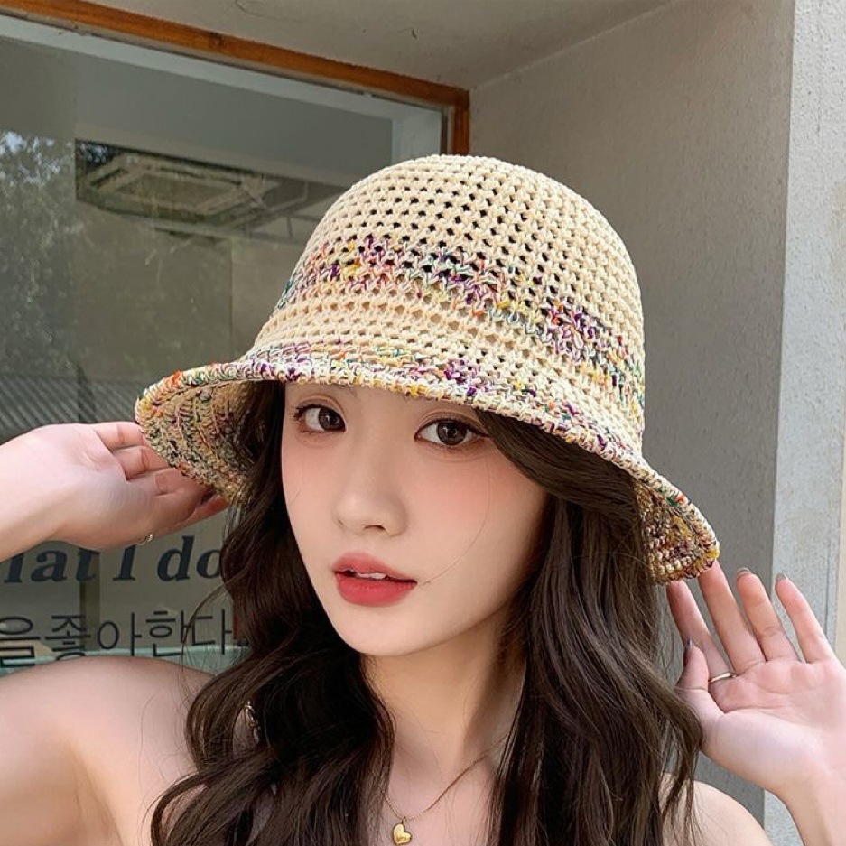 夏季甜美百搭镂空编织渔夫帽子女款新款沙滩彩色防晒遮脸盆帽