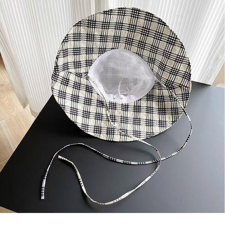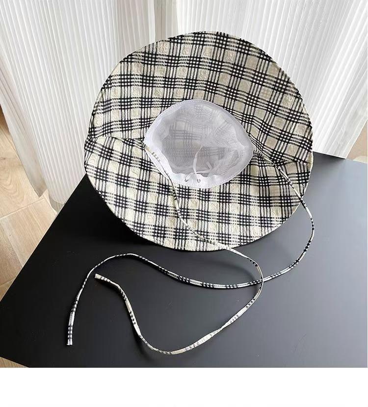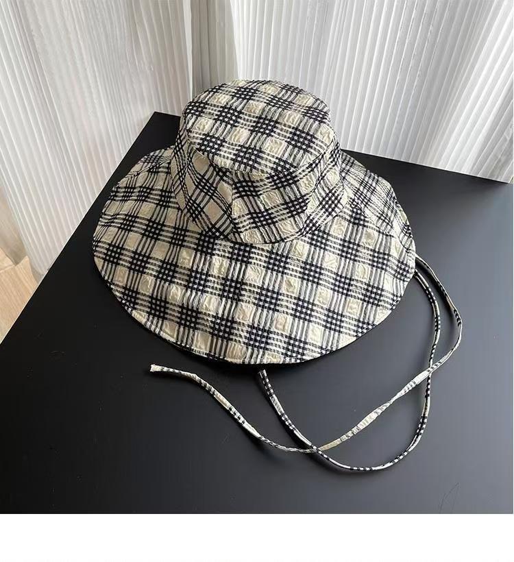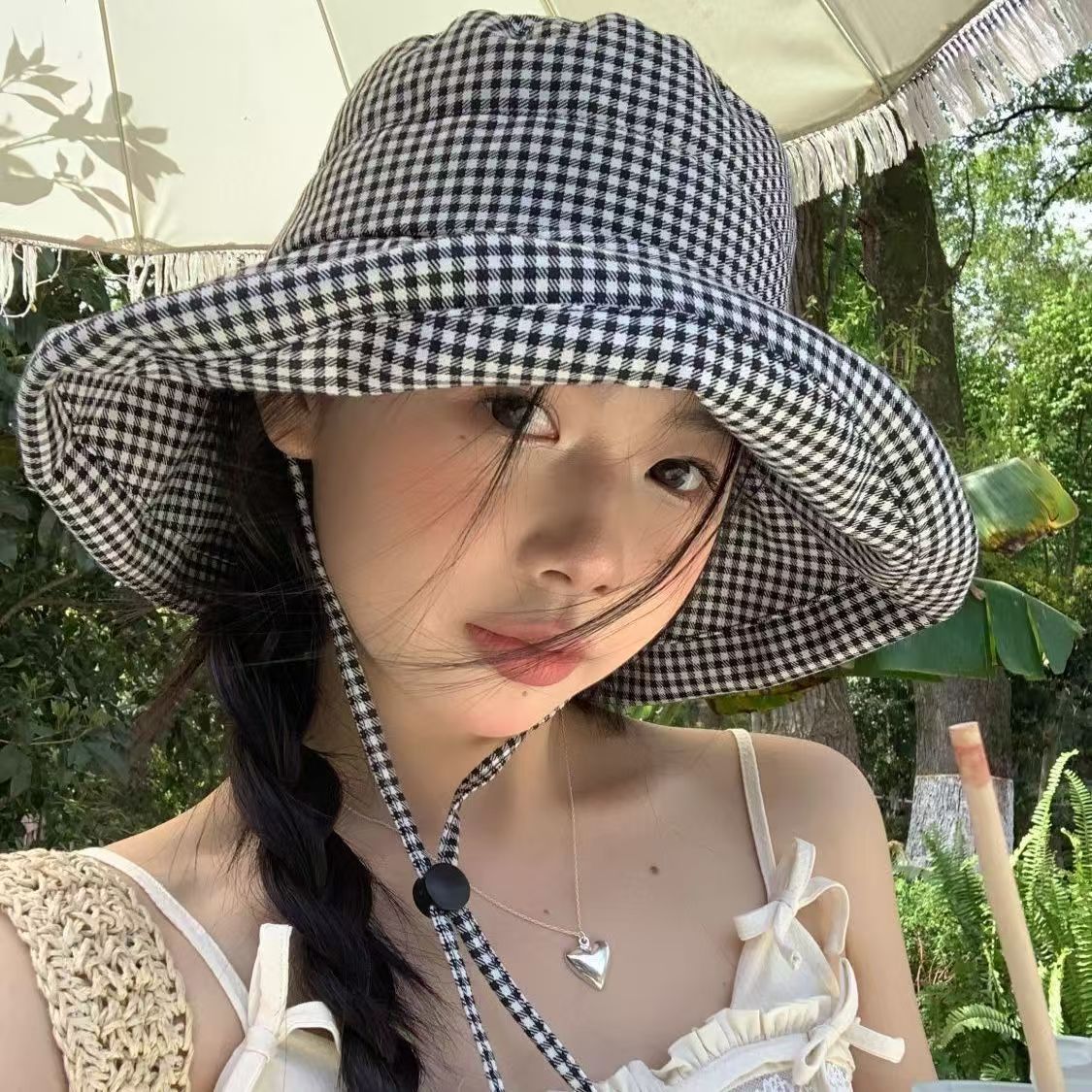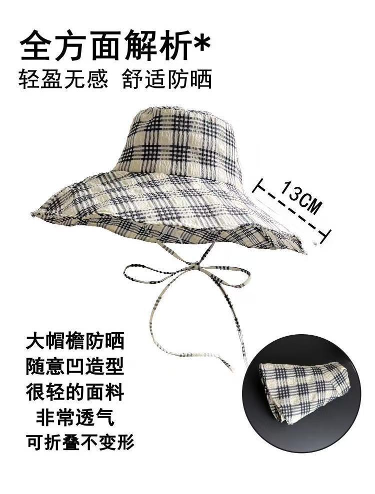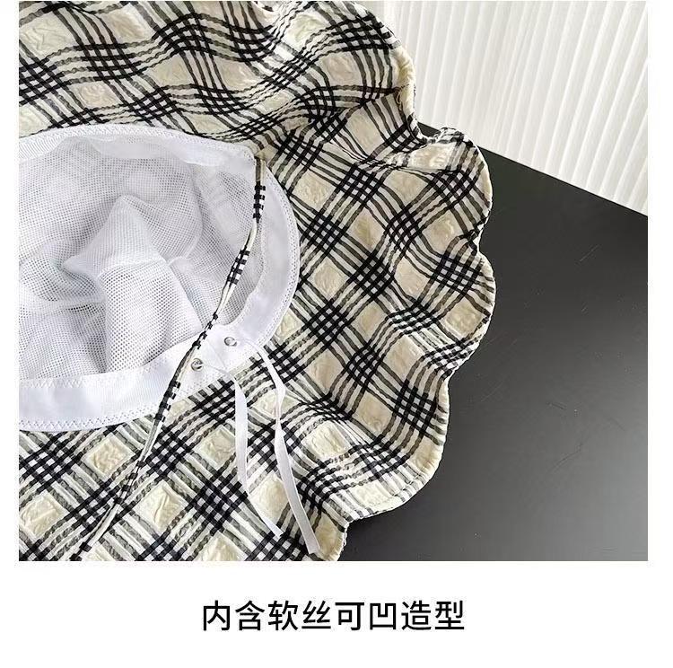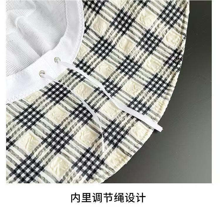 网红同款遮阳帽女2025新款防紫外线大帽檐格子渔夫帽户外防晒帽女