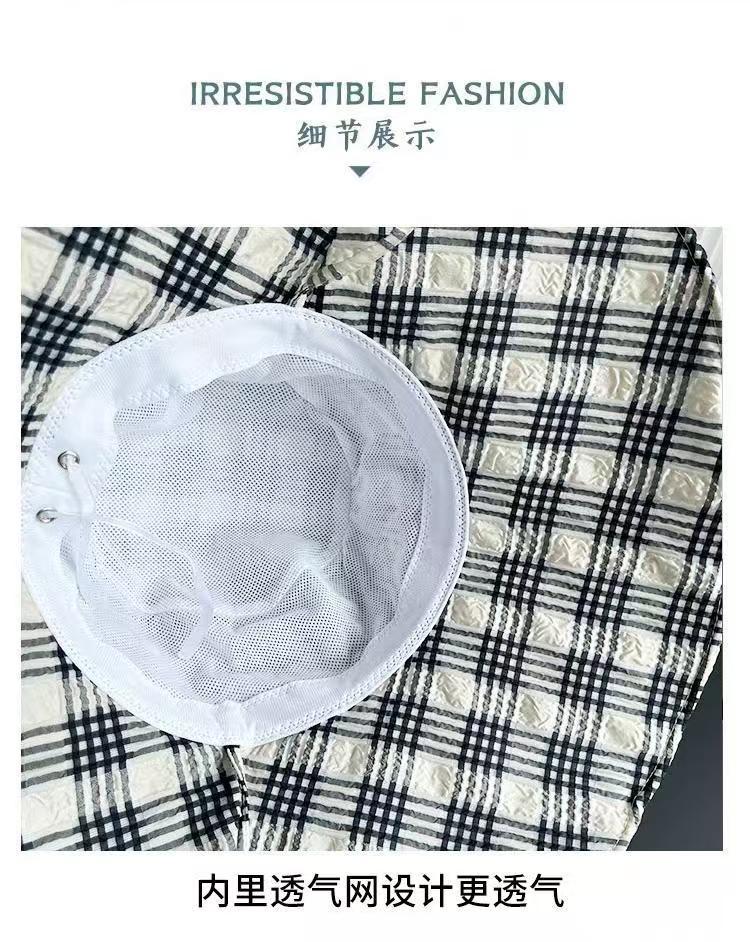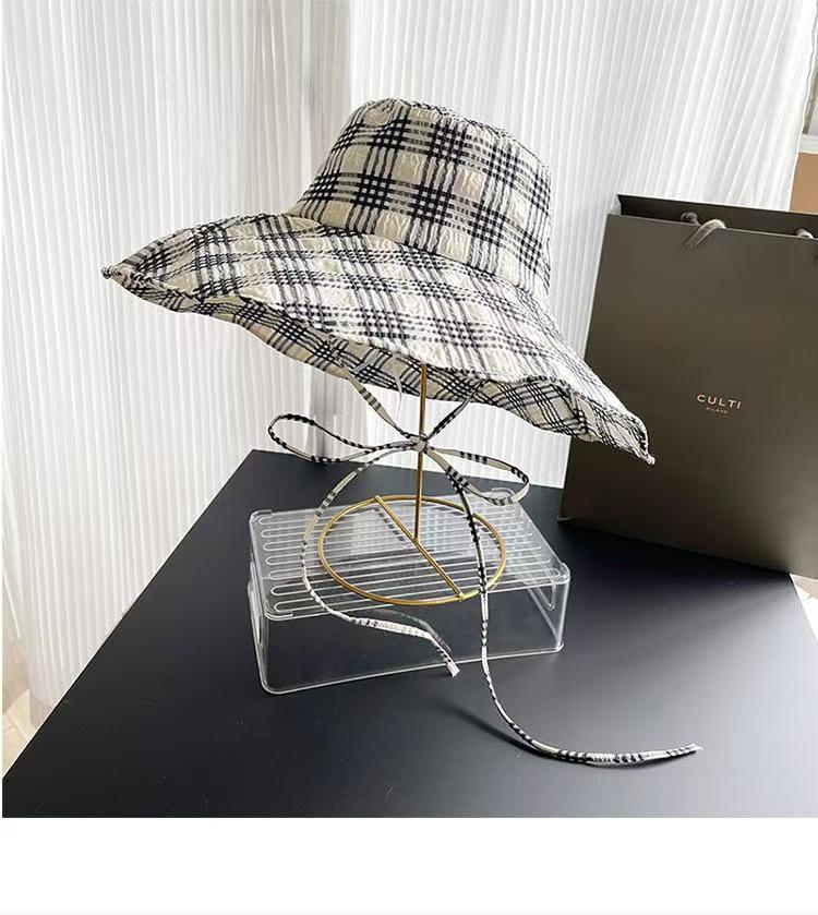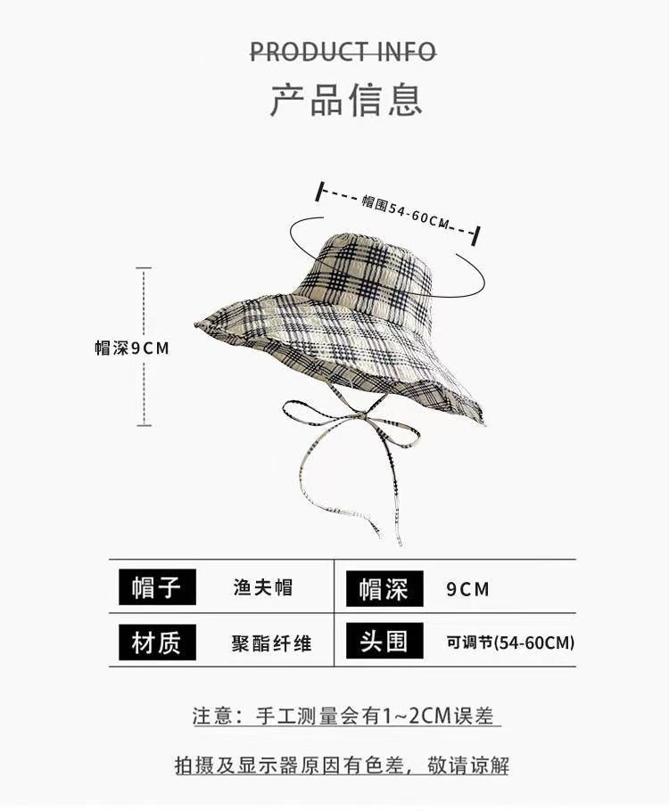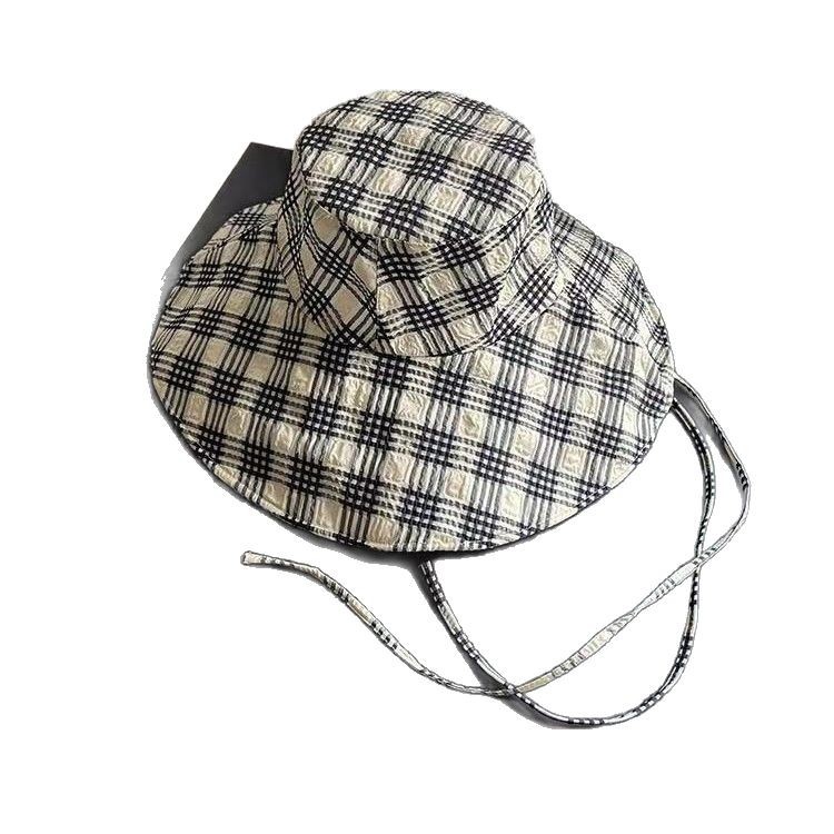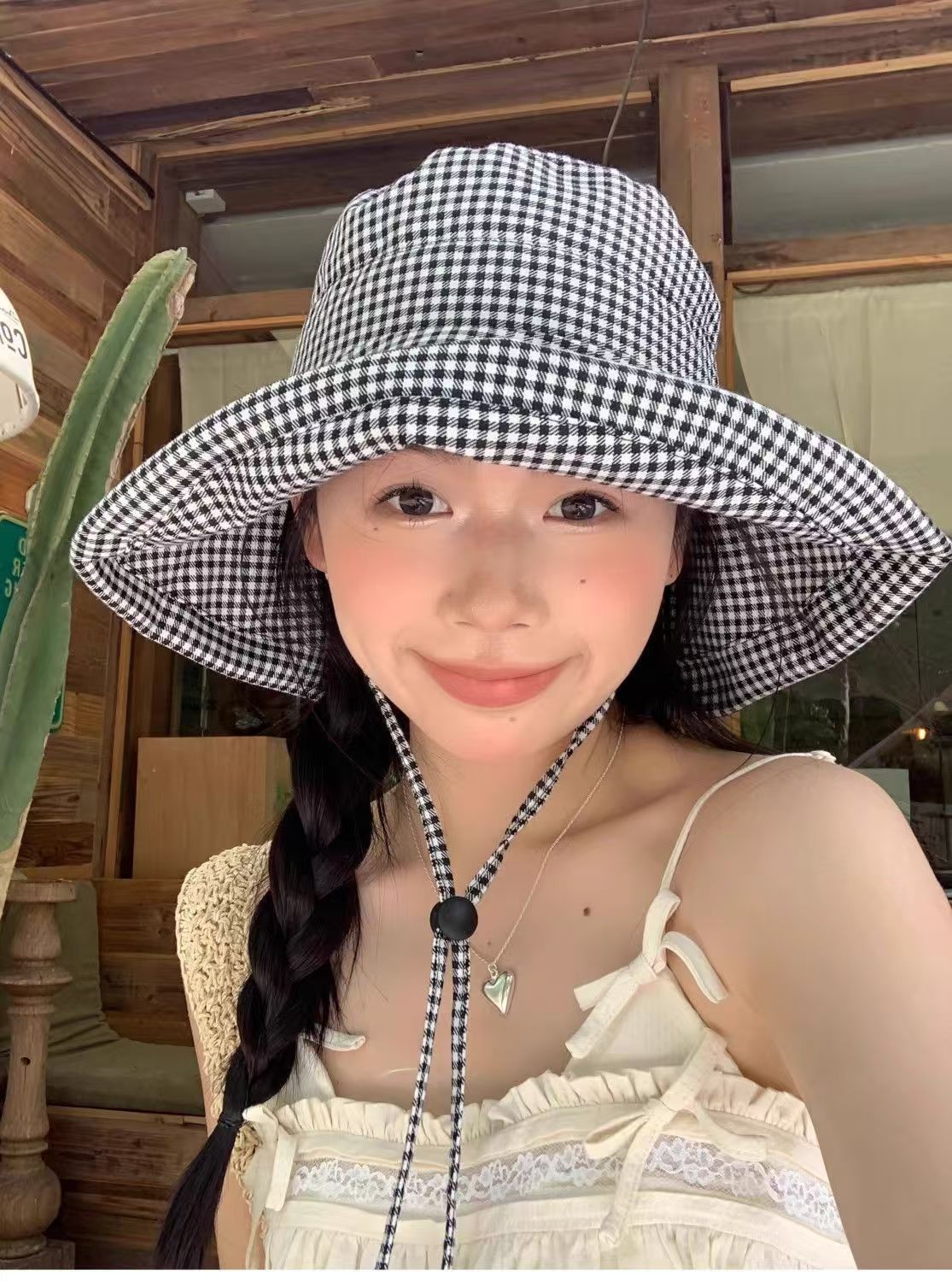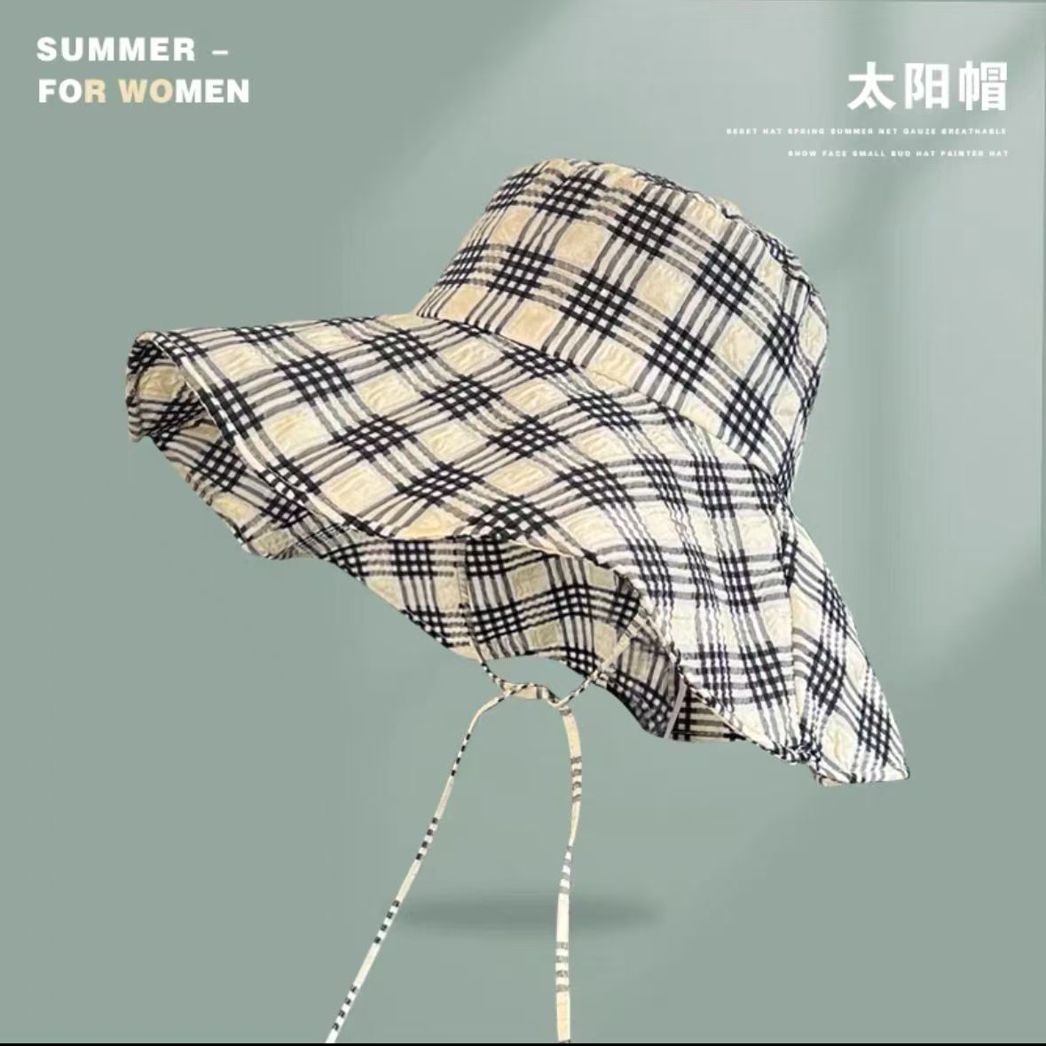 网红同款遮阳帽女2025新款防紫外线大帽檐格子渔夫帽户外防晒帽女