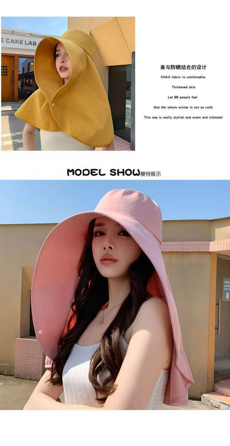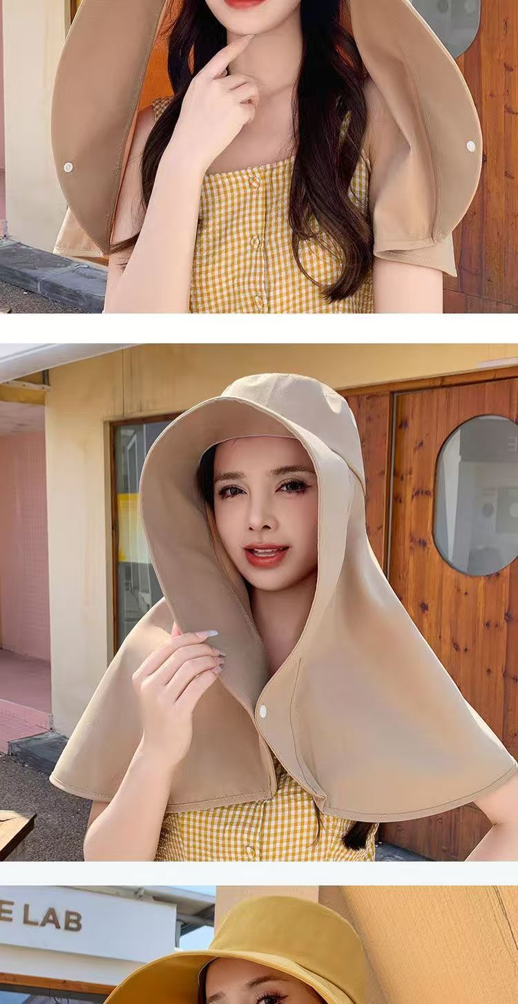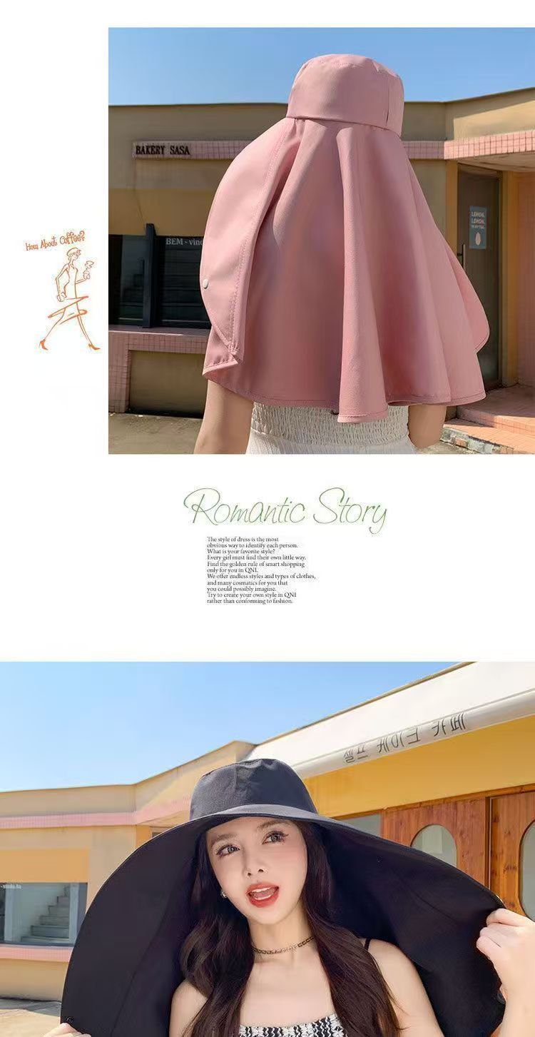 全脸防晒肩颈帽一体女夏季新款超大披肩遮阳渔夫帽骑车户外太阳帽