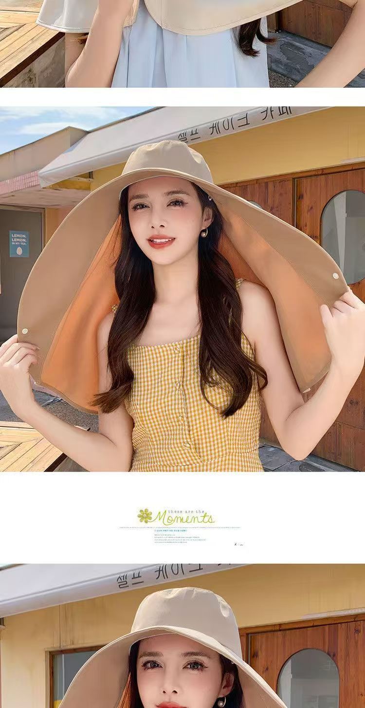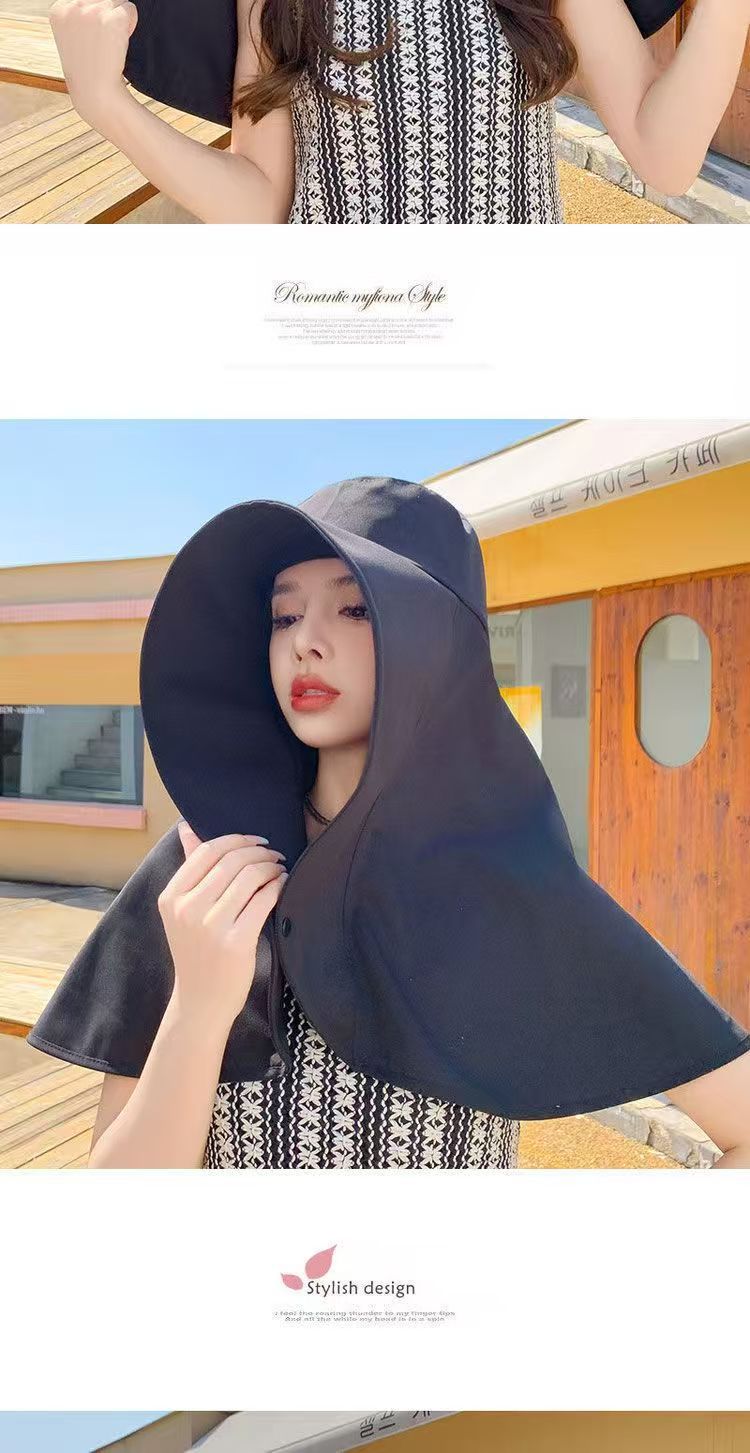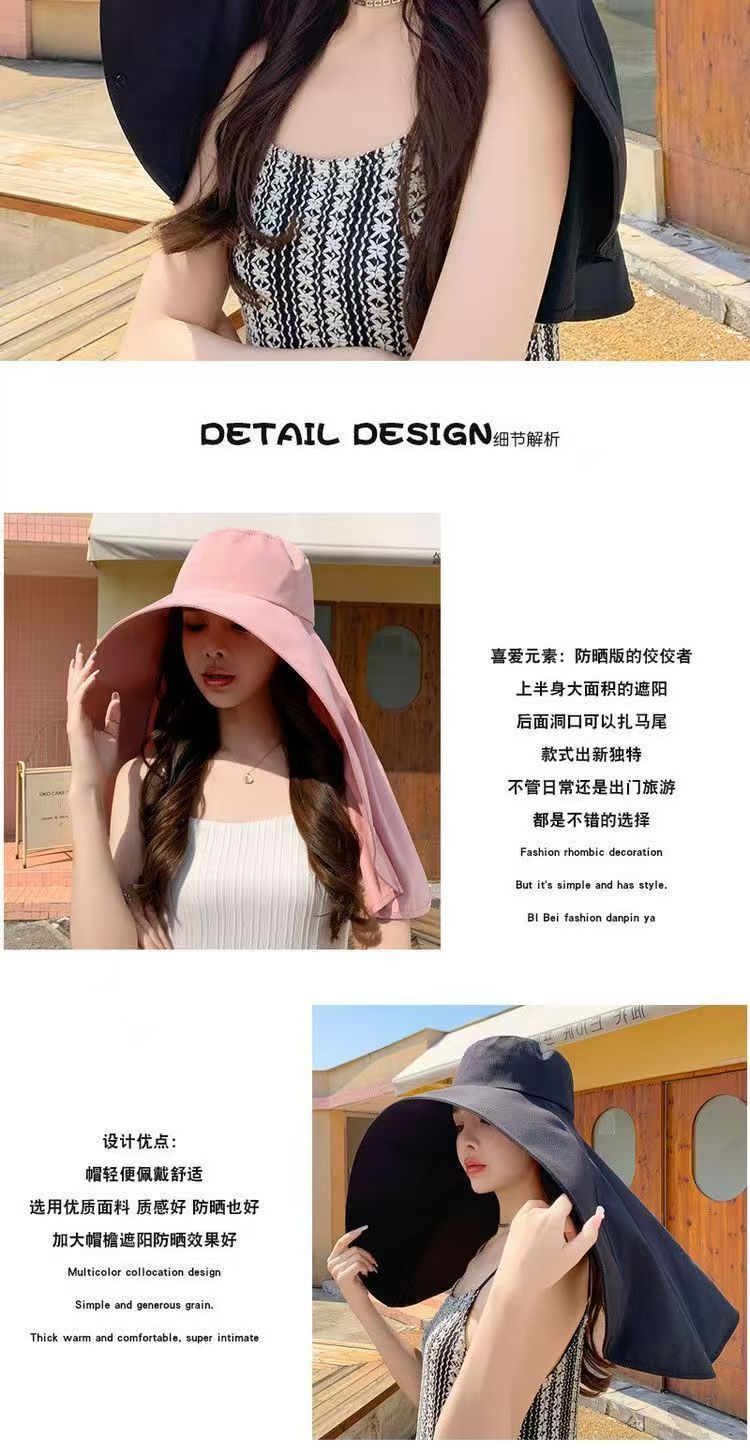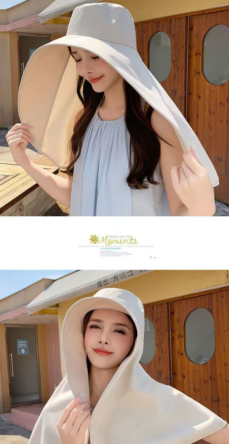 全脸防晒肩颈帽一体女夏季新款超大披肩遮阳渔夫帽骑车户外太阳帽
