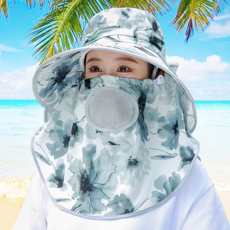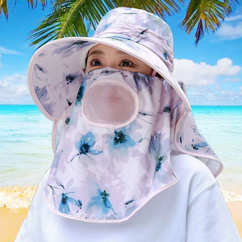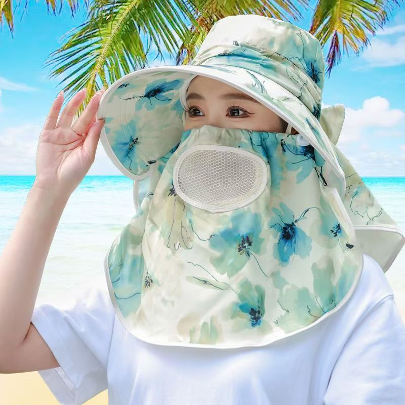 夏日采茶遮阳帽女时尚透气防晒遮脸面罩户外骑车防紫外线太阳帽