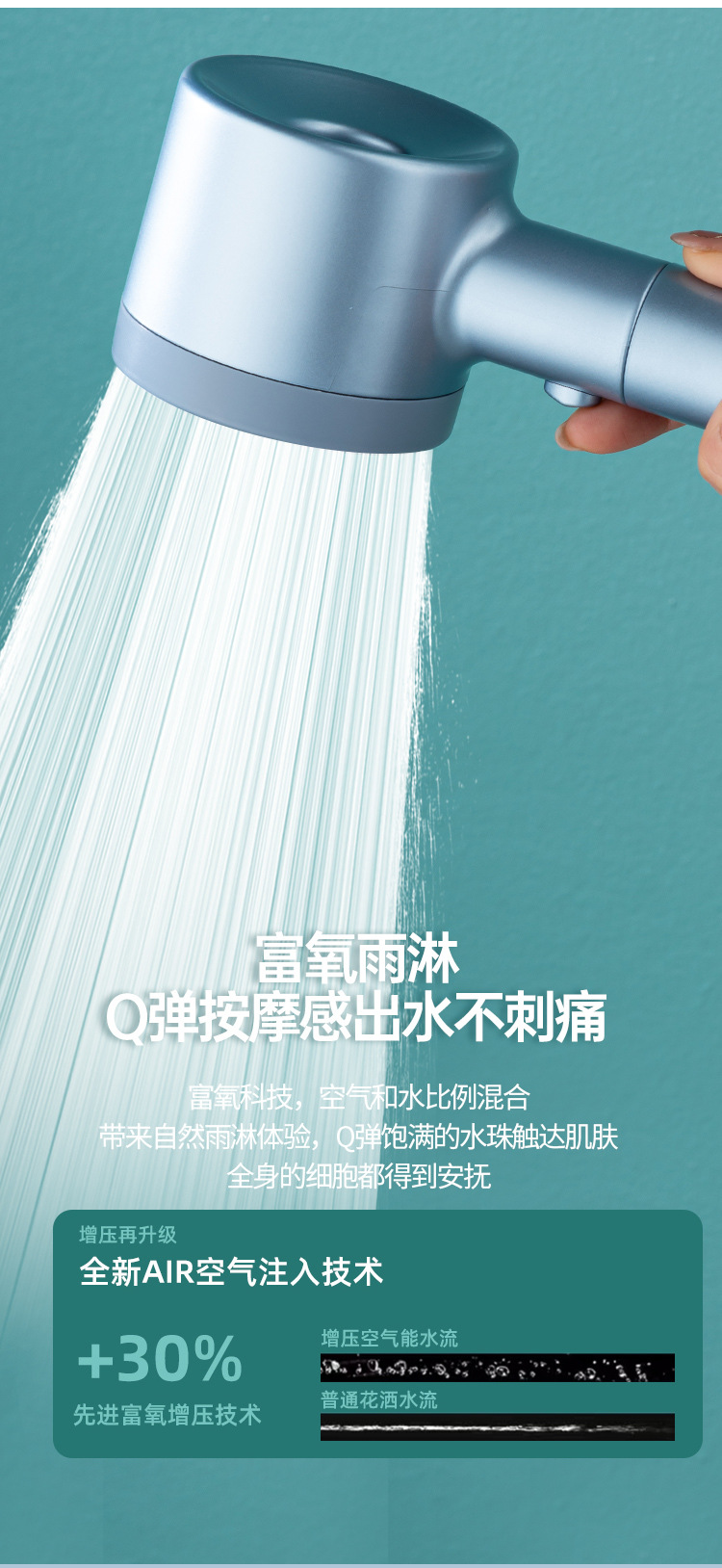 喷雾增压淋浴花洒多功能过滤止水可拆卸莲蓬头镂空洗澡亚马逊喷头