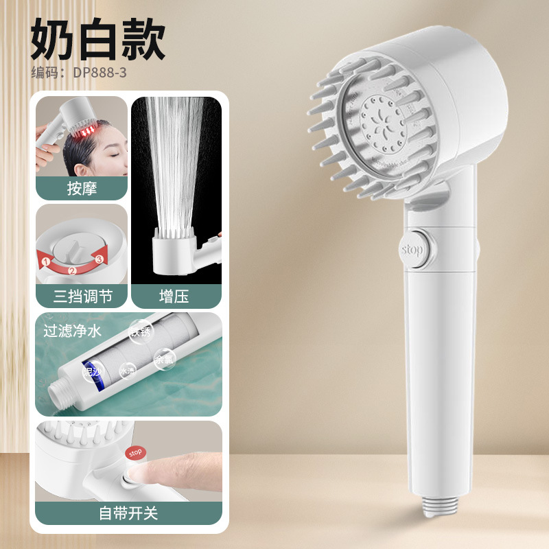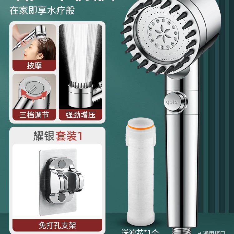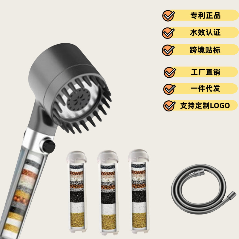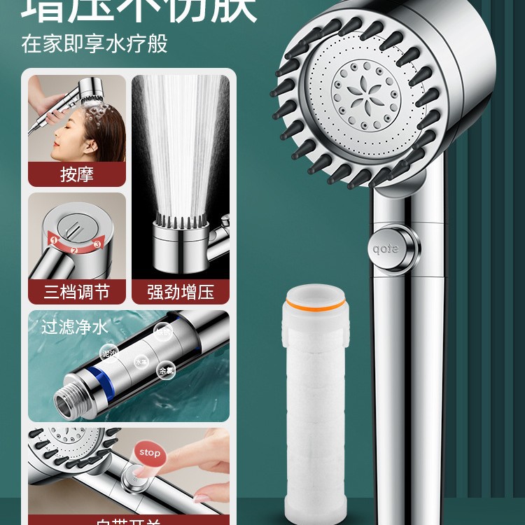 跨境专历雪花戴喷过滤净化水增压花洒喷头强劲按摩淋浴头家用花洒
