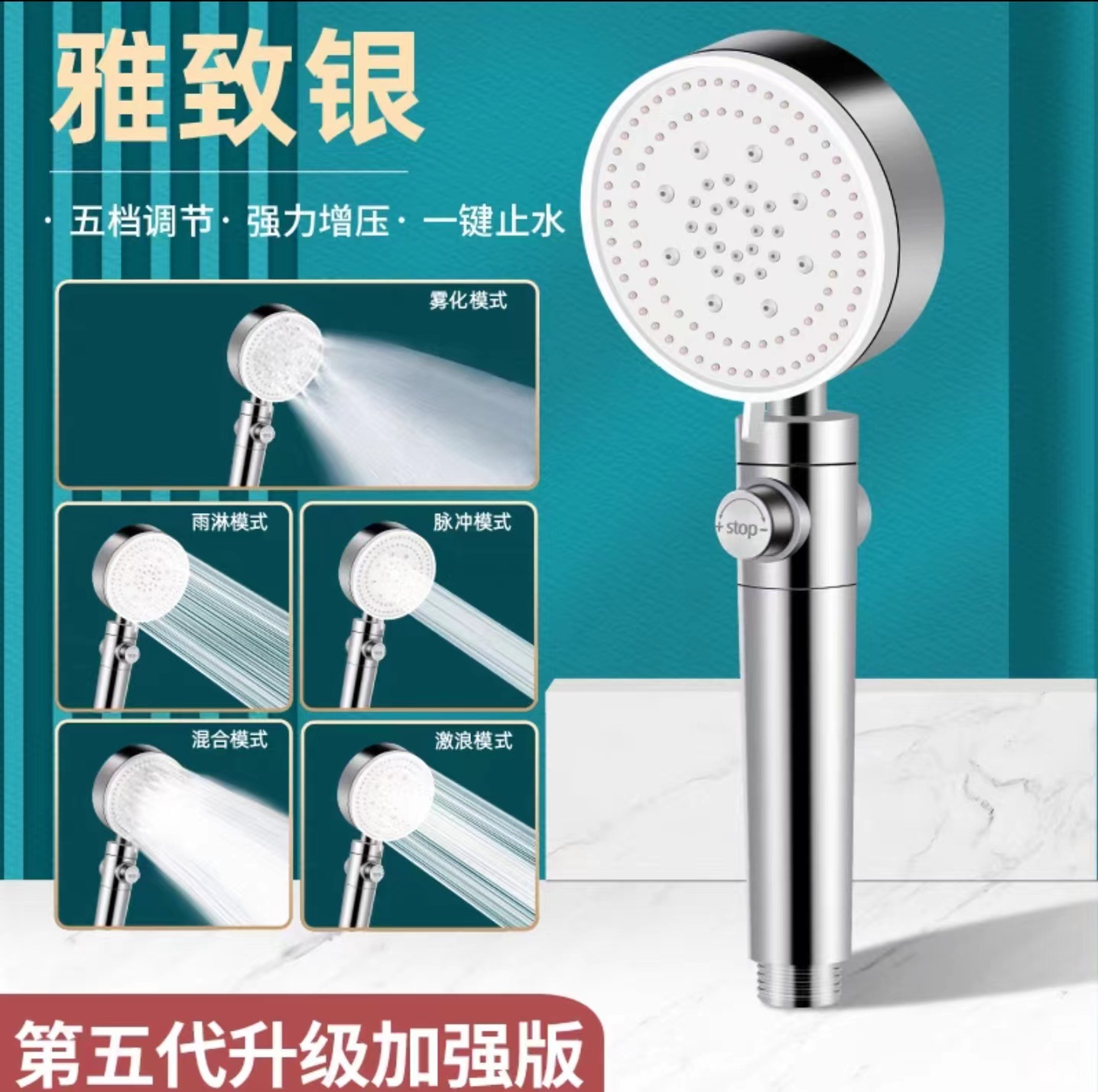 黑武士花洒增压花洒黑五档花洒黑色五档调节带增压喷雾黑五档花洒