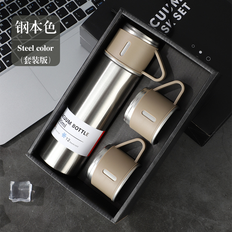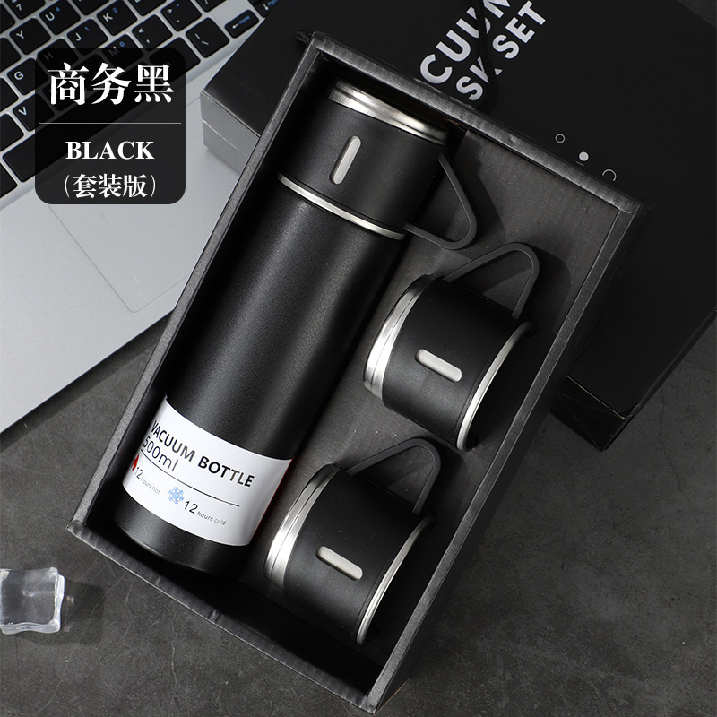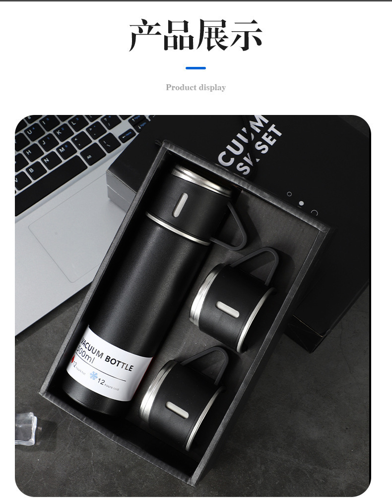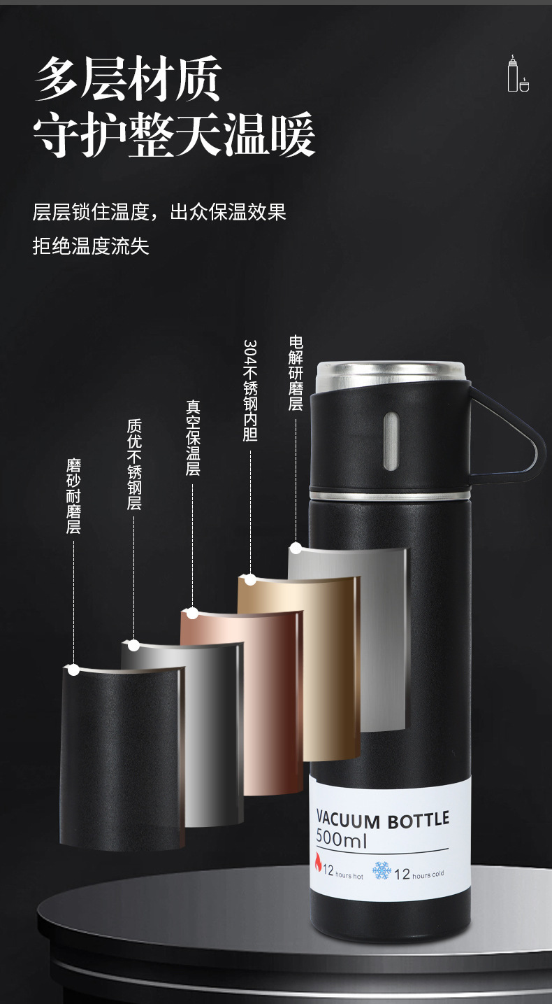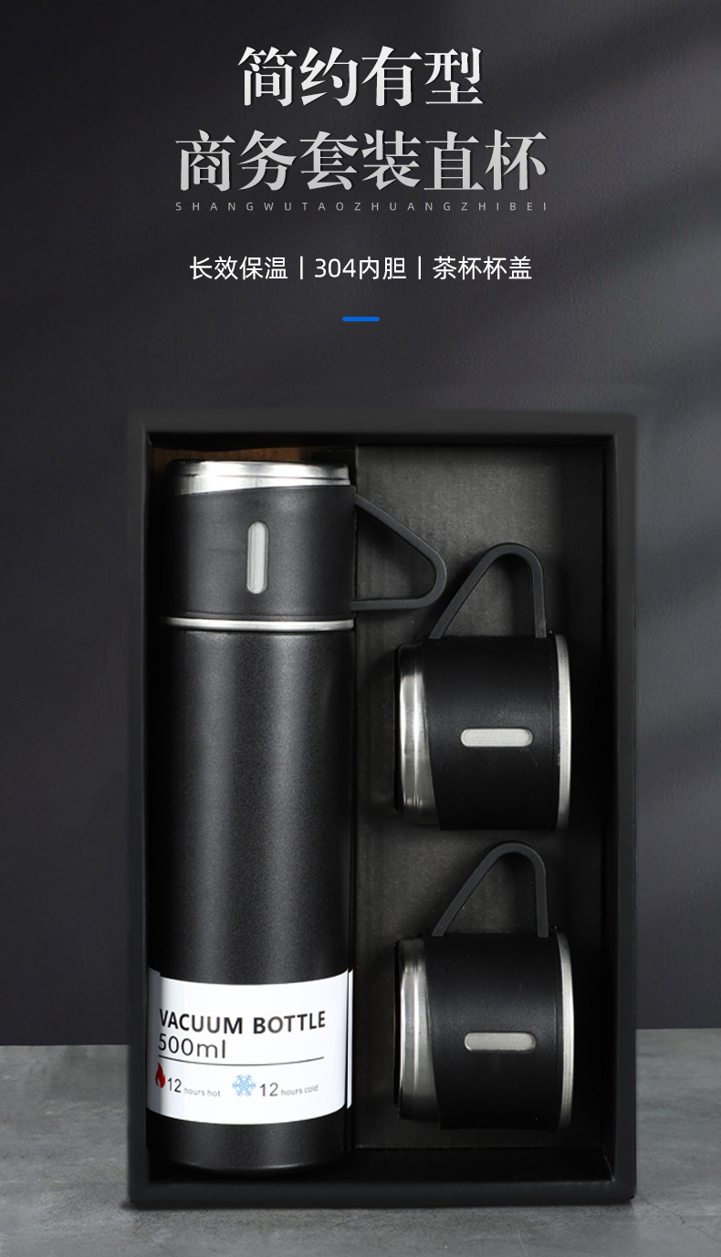 一杯三盖304不锈钢真空保温杯直身杯便携高档商务礼品套装批发