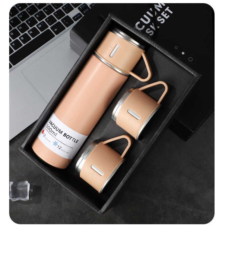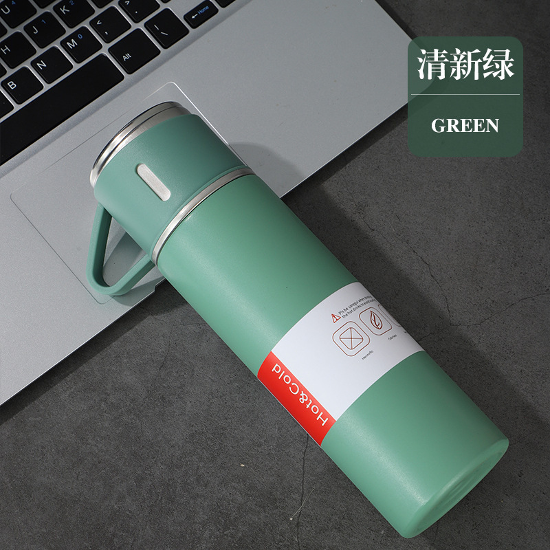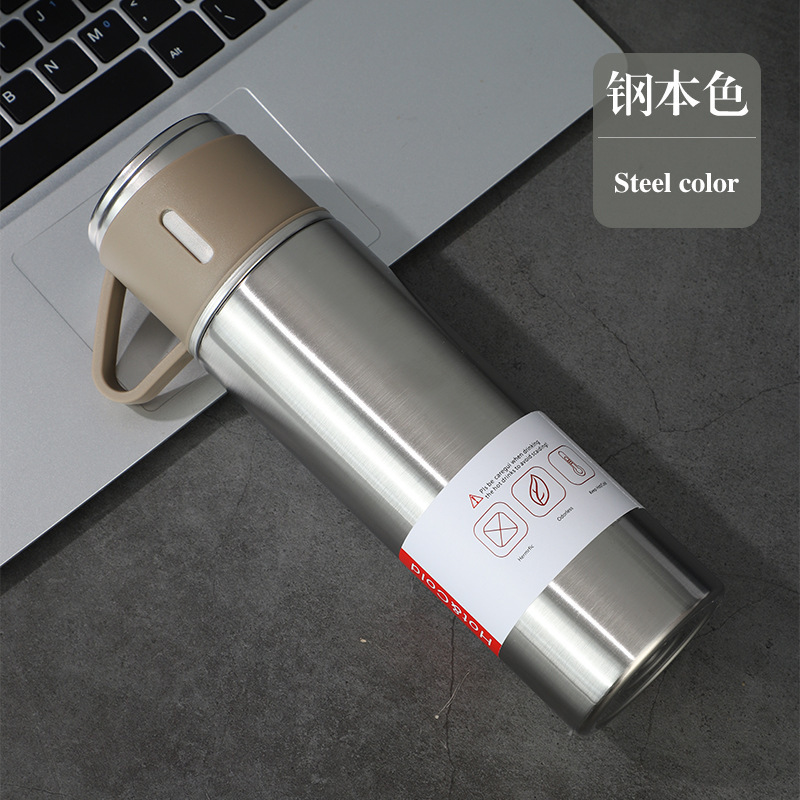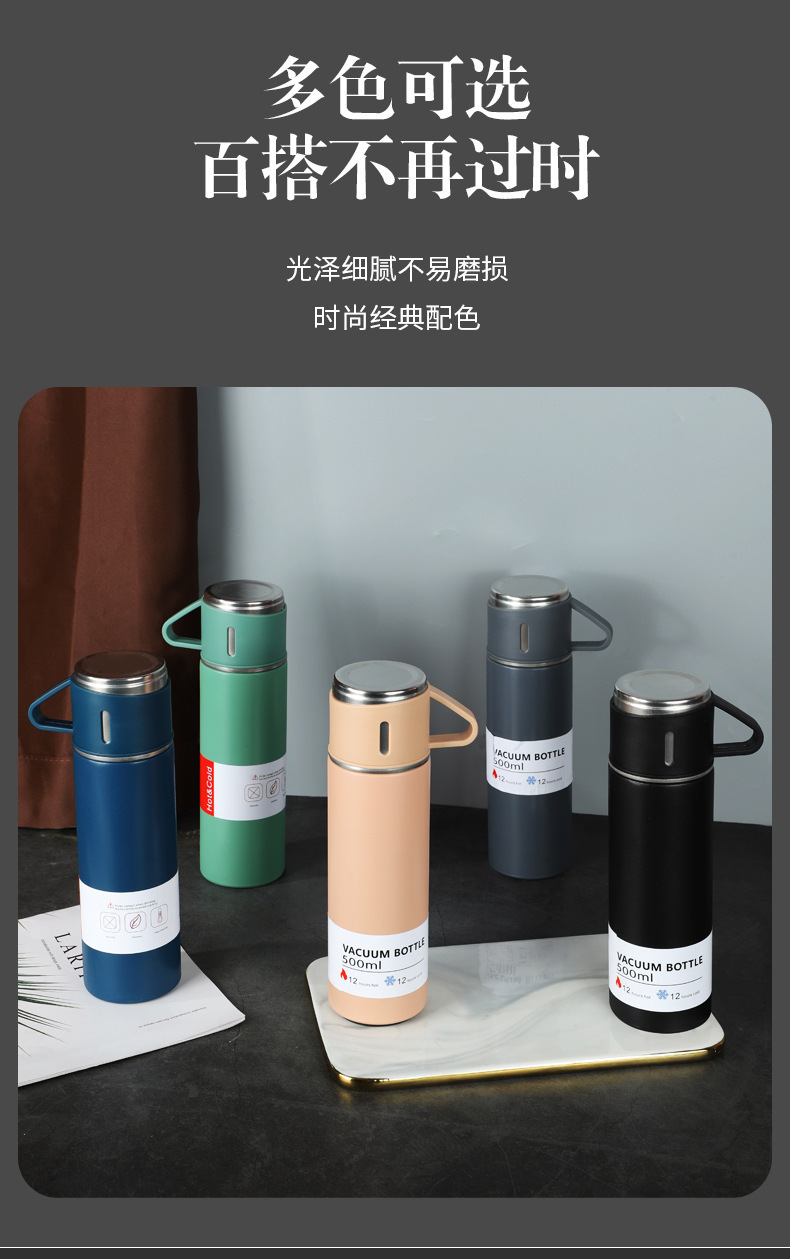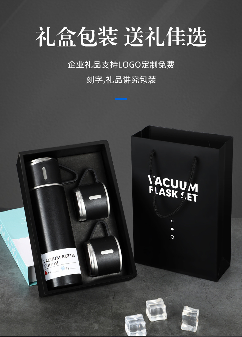 一杯三盖304不锈钢真空保温杯直身杯便携高档商务礼品套装批发