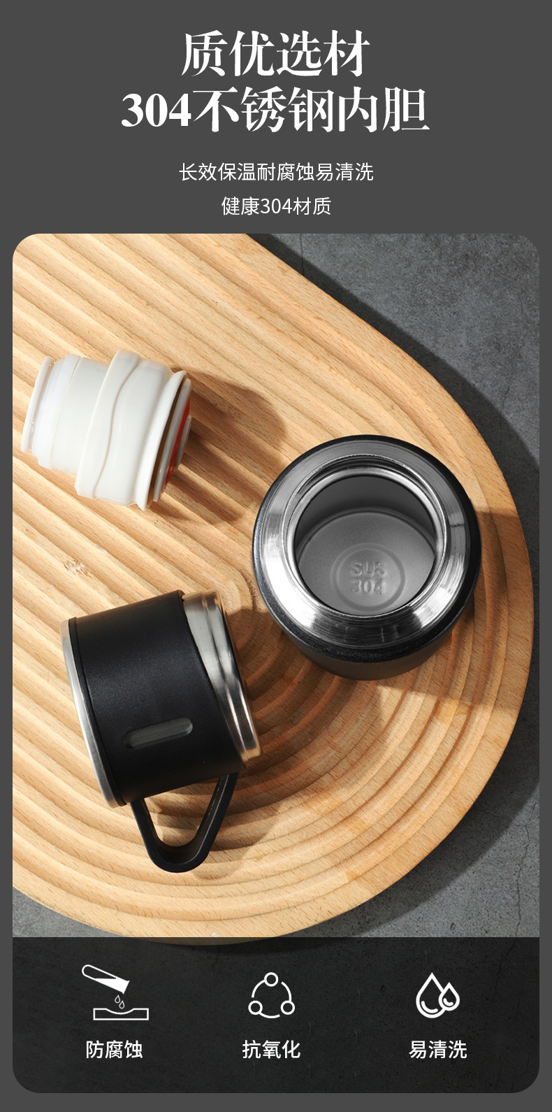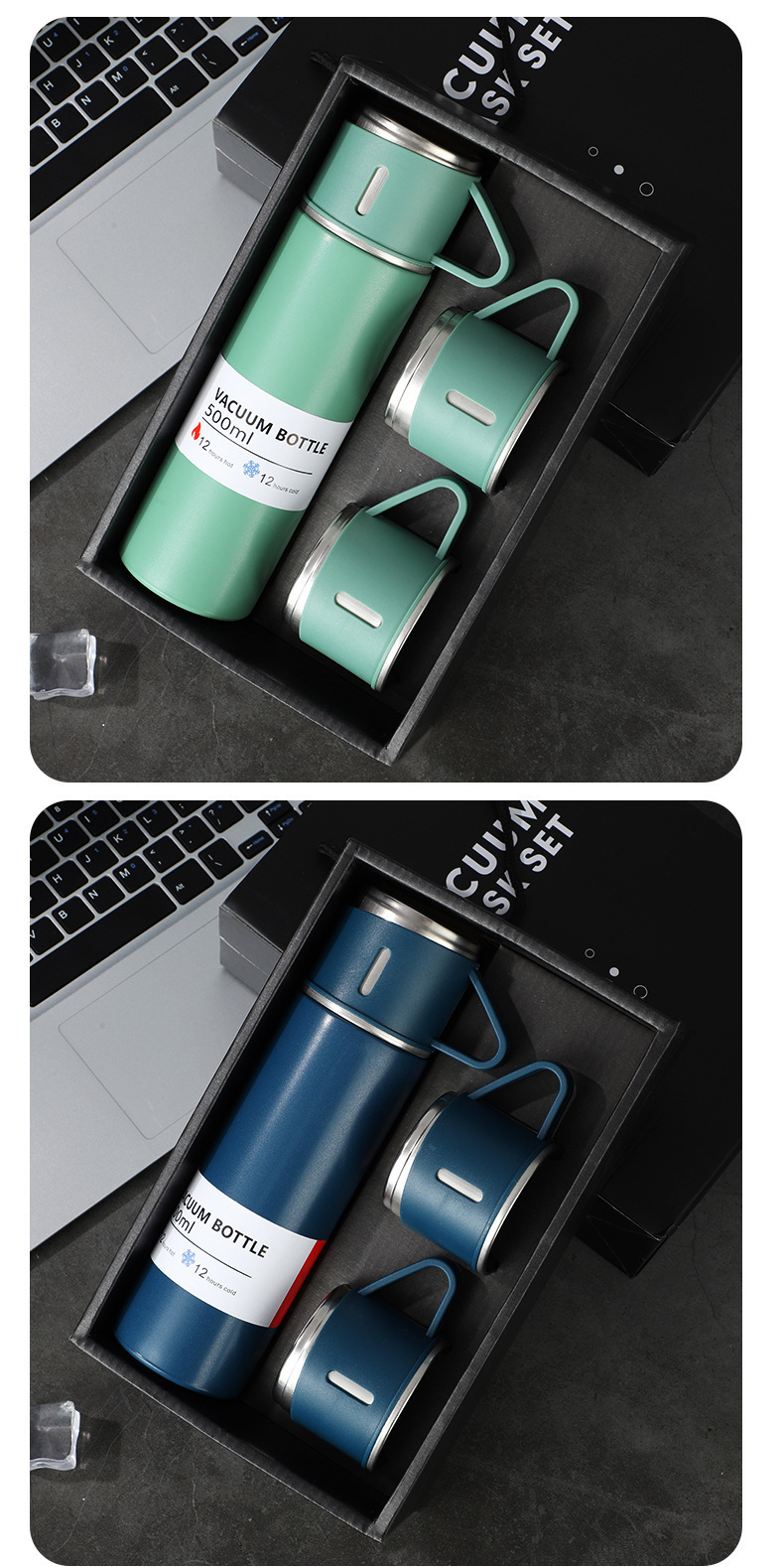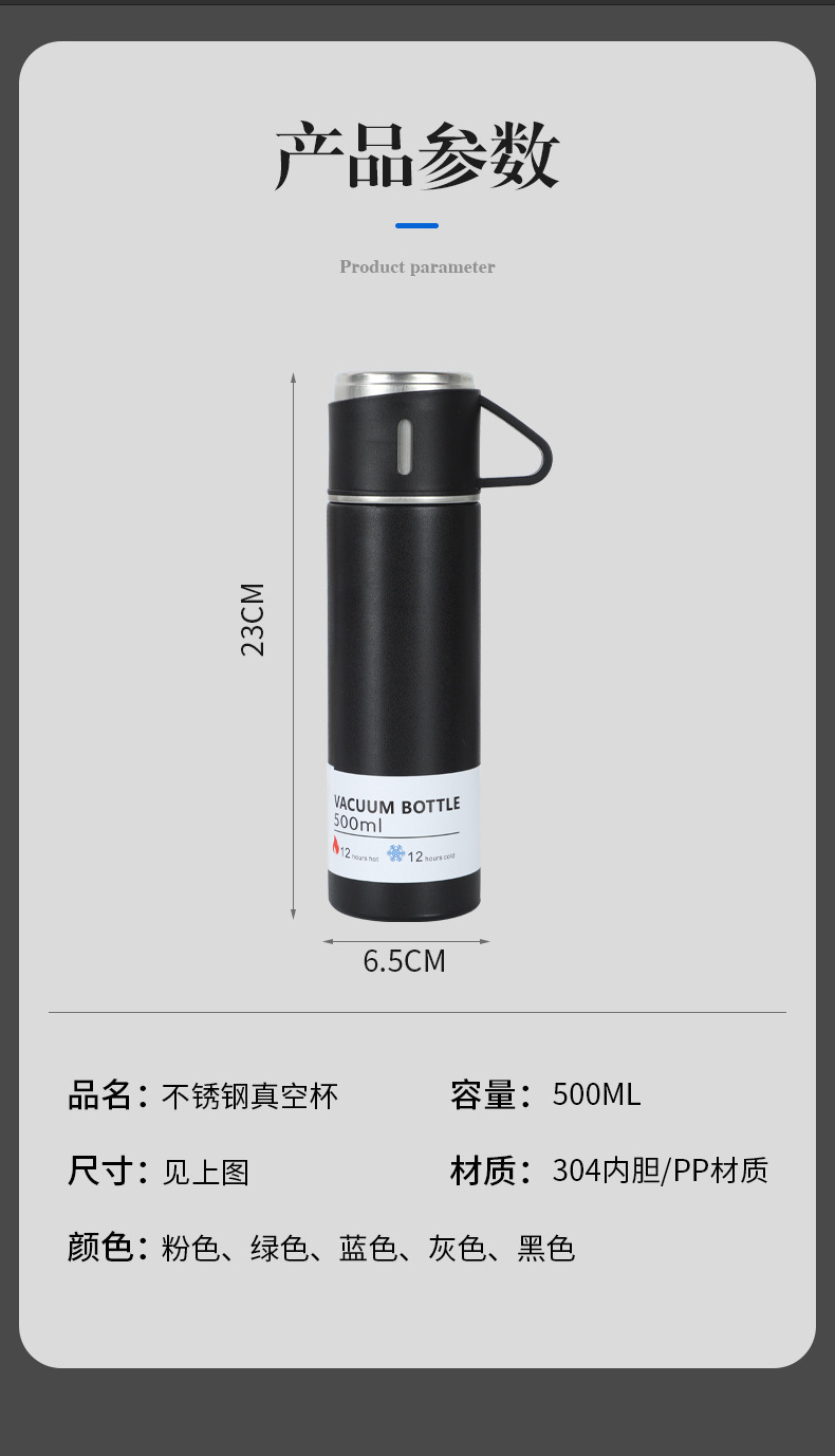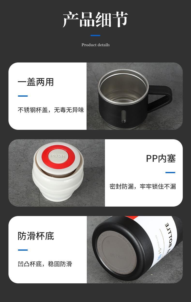 一杯三盖304不锈钢真空保温杯直身杯便携高档商务礼品套装批发