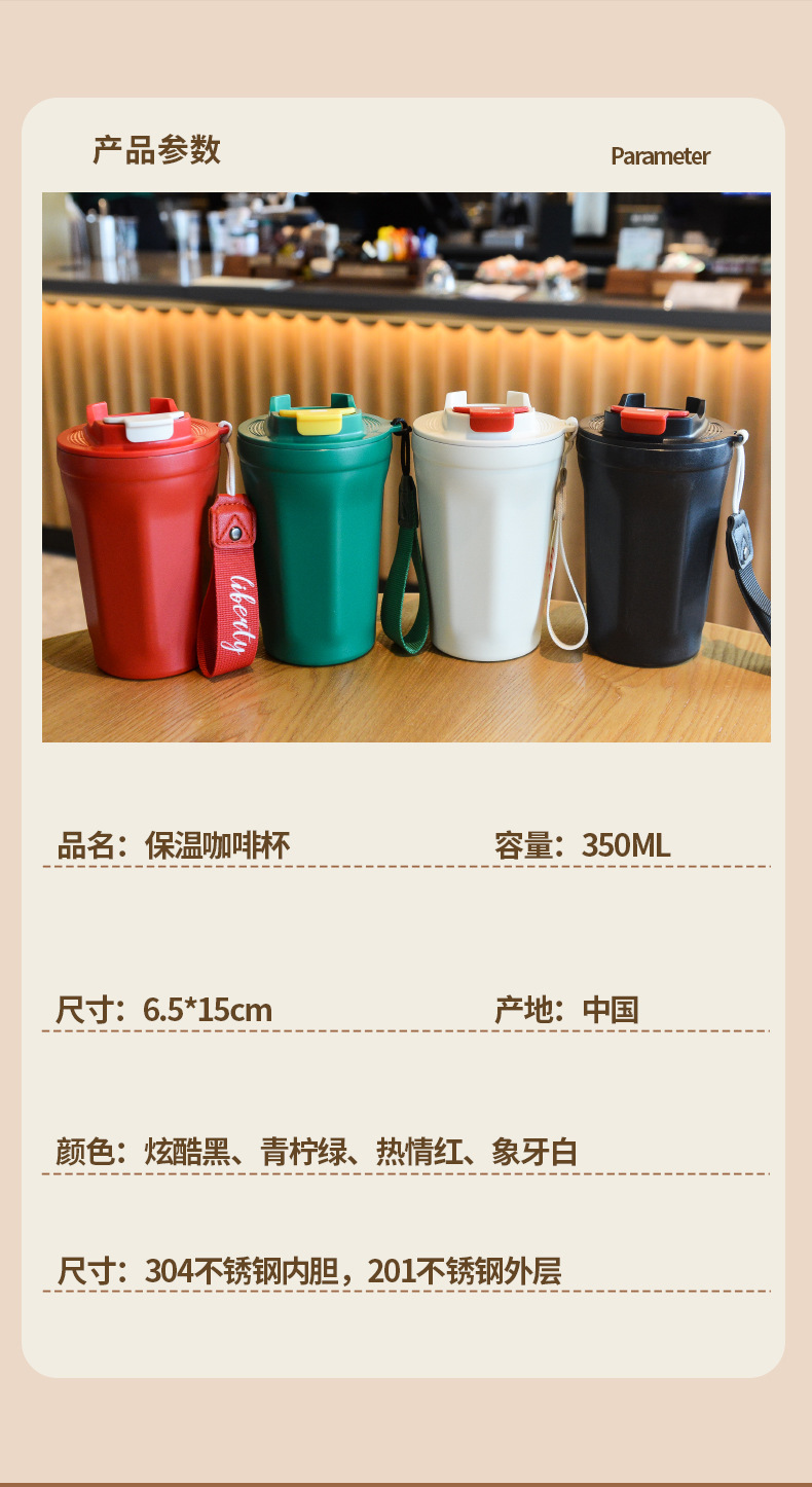 咖啡杯保温杯不锈钢高颜值户外便携男女学生车载水杯礼品杯子批发