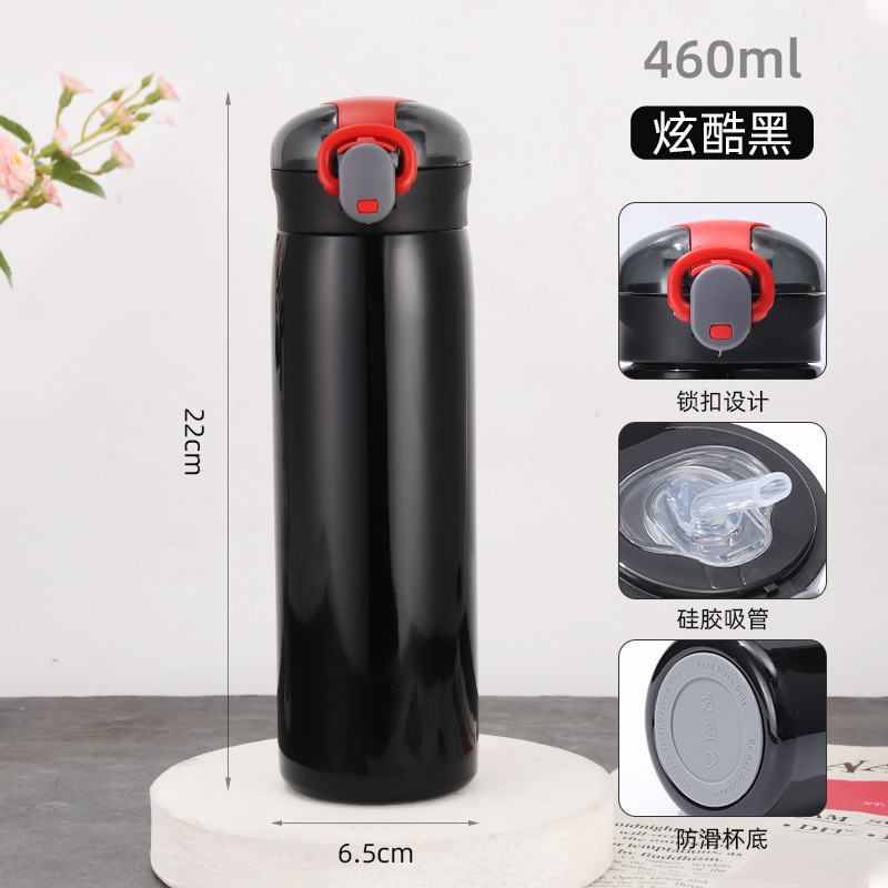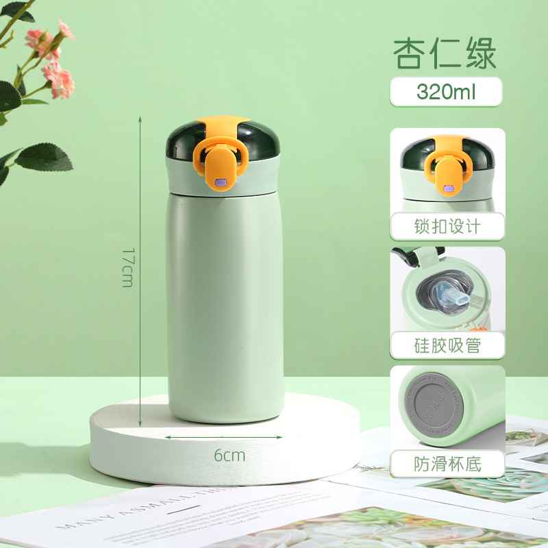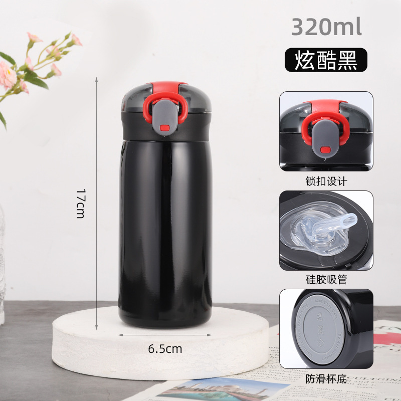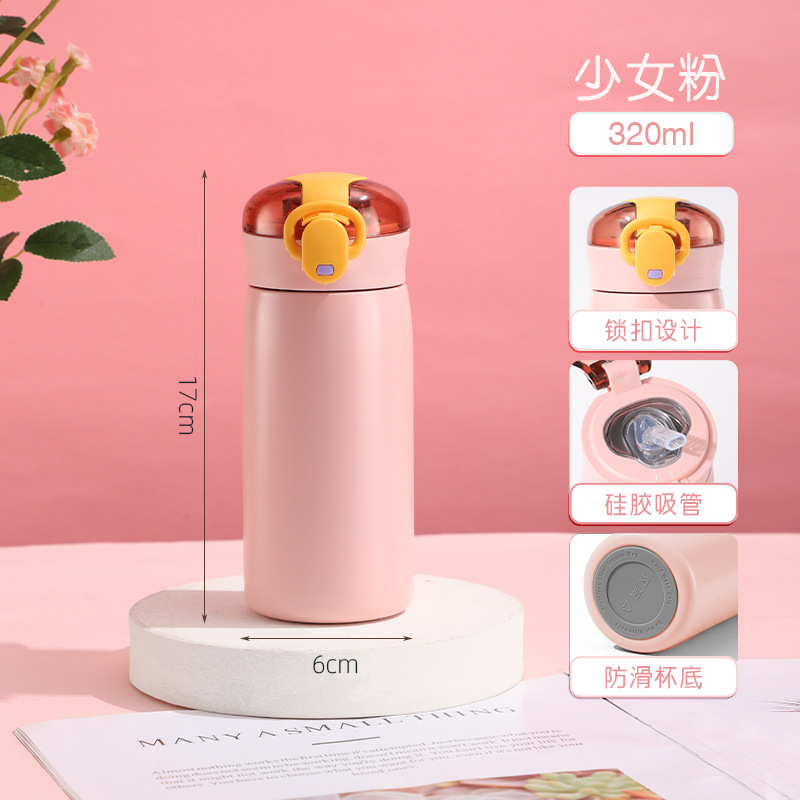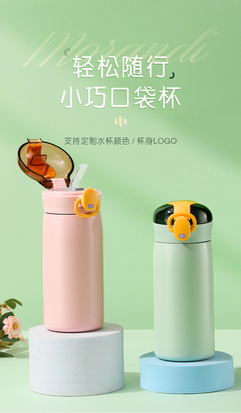 新款304不锈钢简约弹跳盖保温杯学生小清新迷你便携吸管杯批发