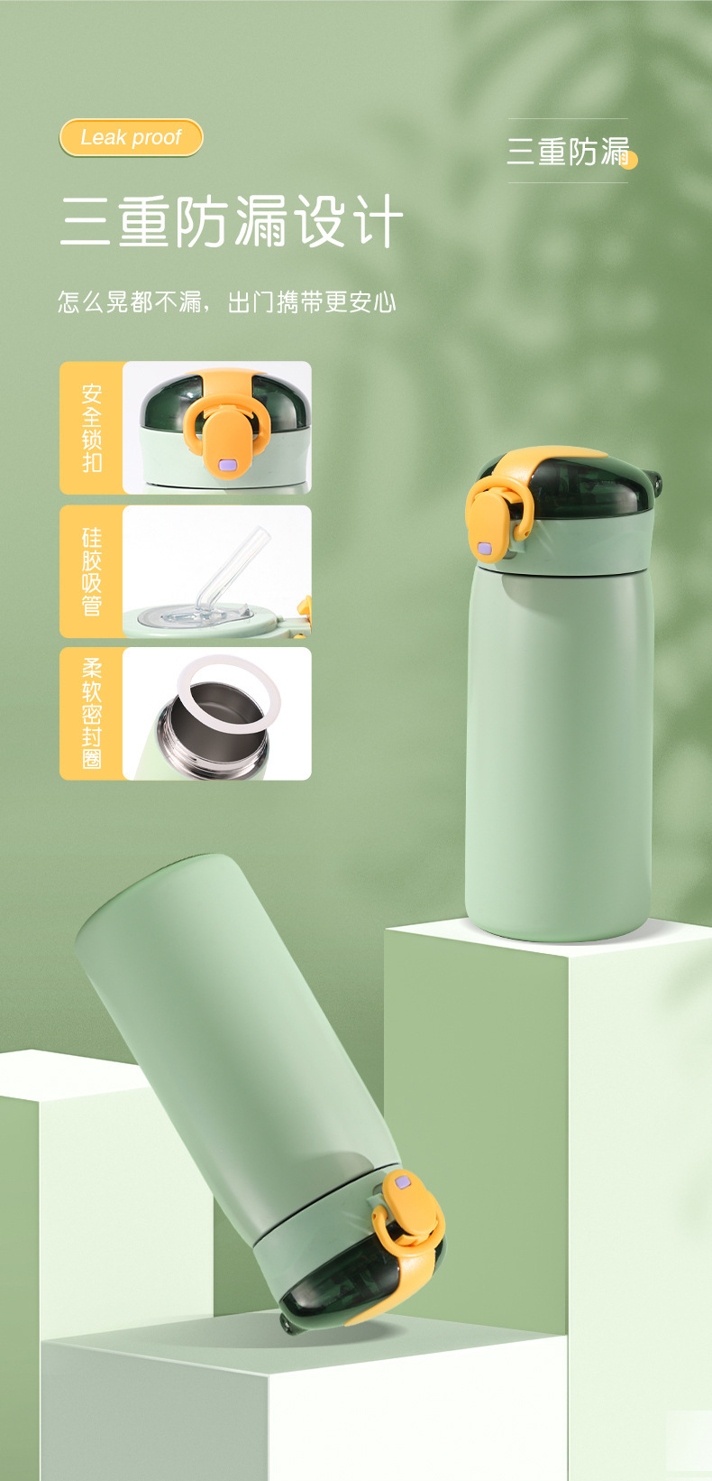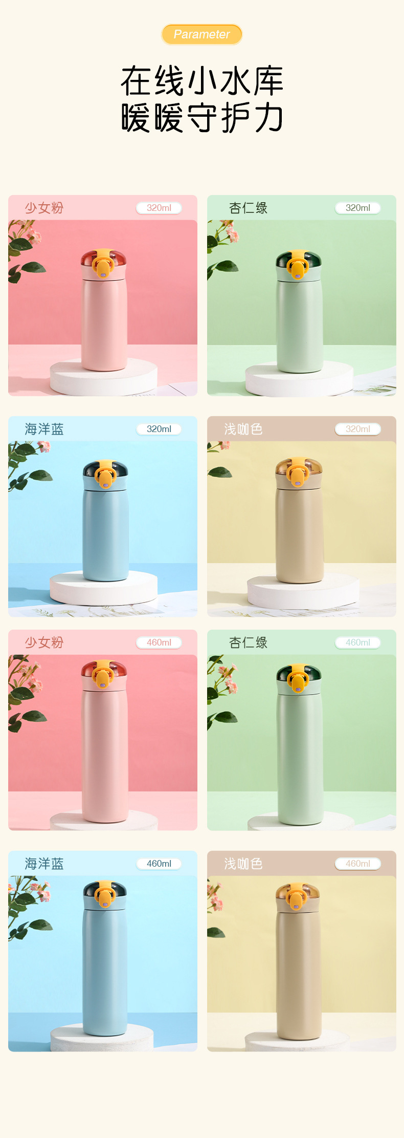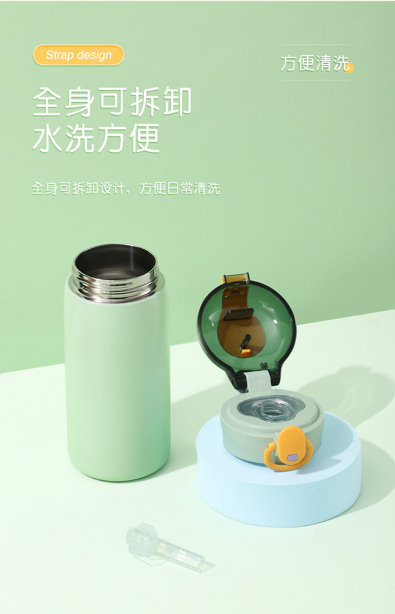 新款304不锈钢简约弹跳盖保温杯学生小清新迷你便携吸管杯批发