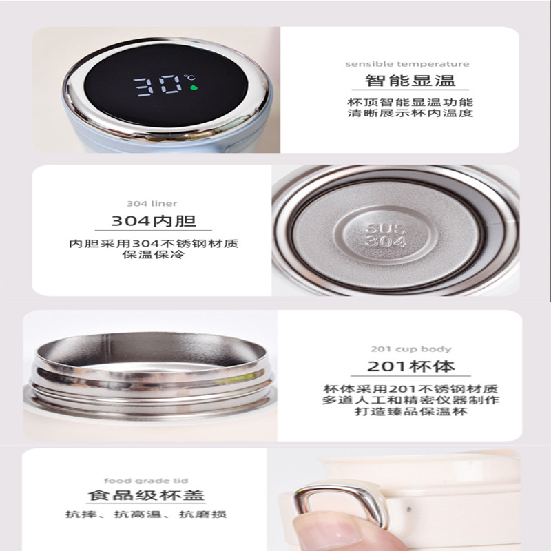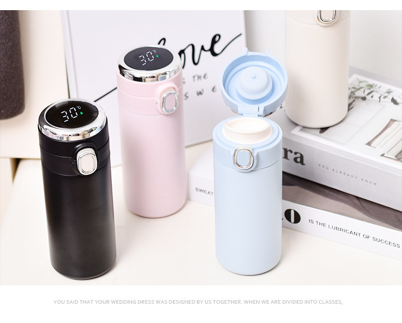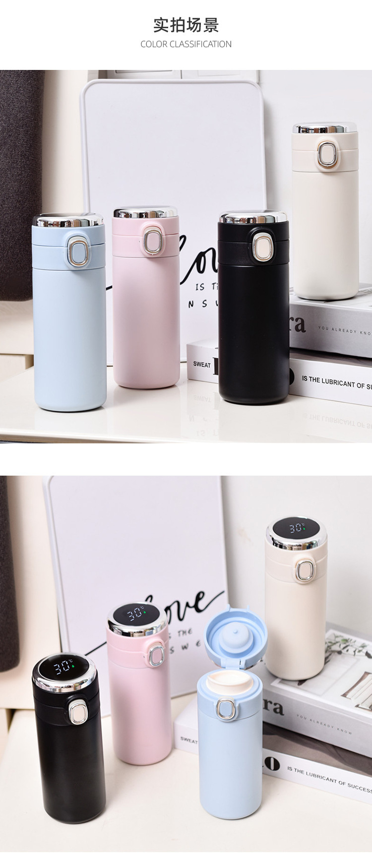 豌豆杯不锈钢弹跳保温杯批发新款双层真空智能显温礼品杯印制logo