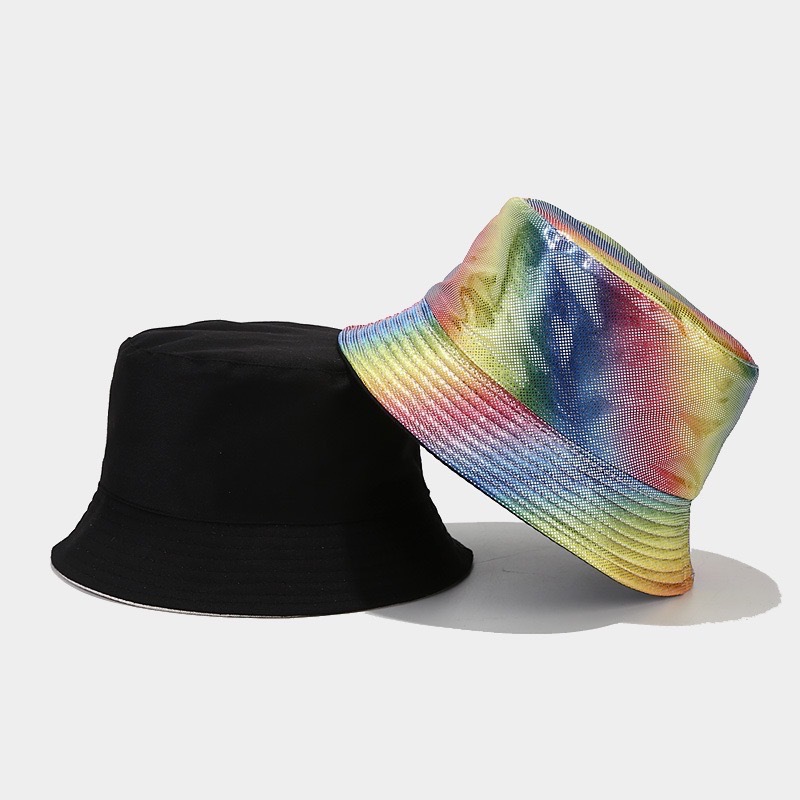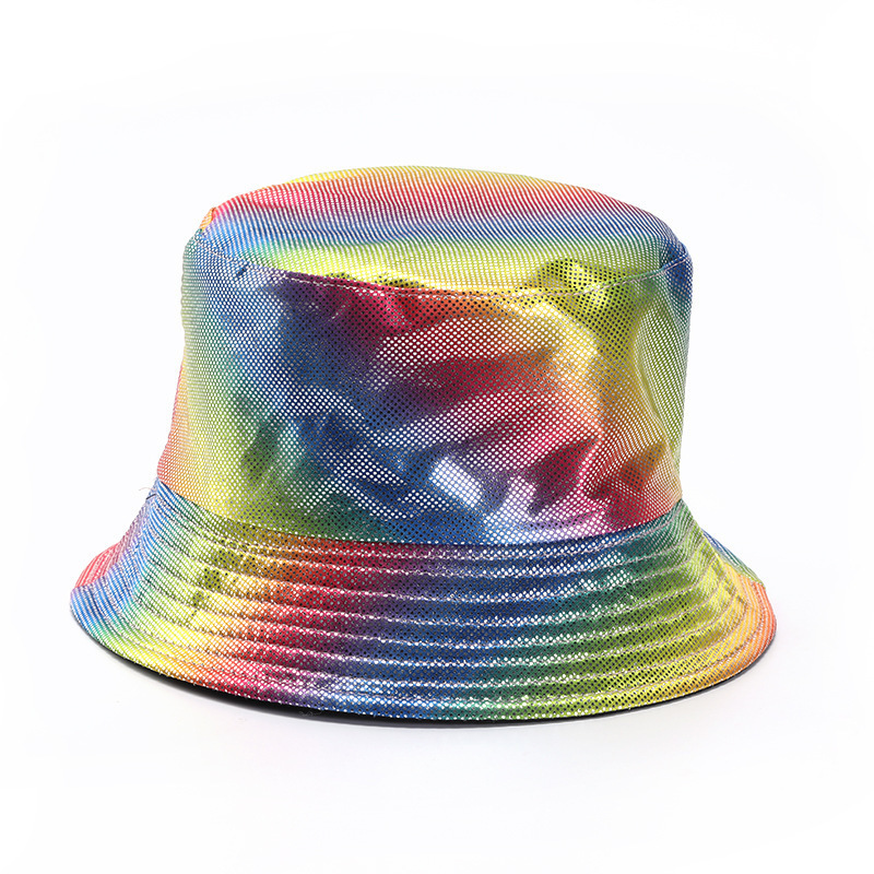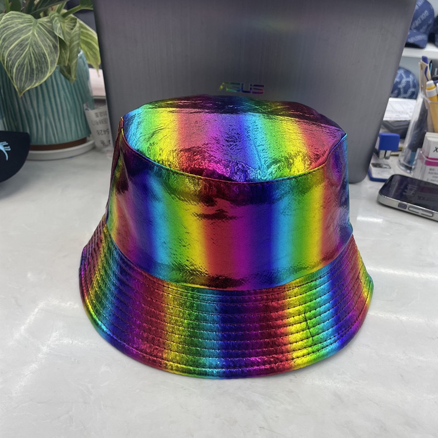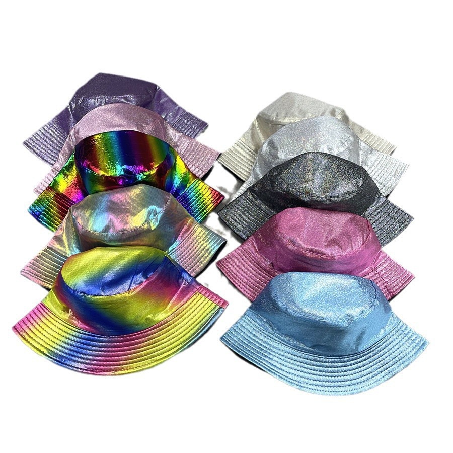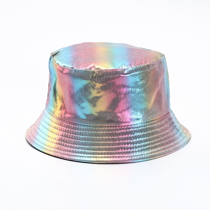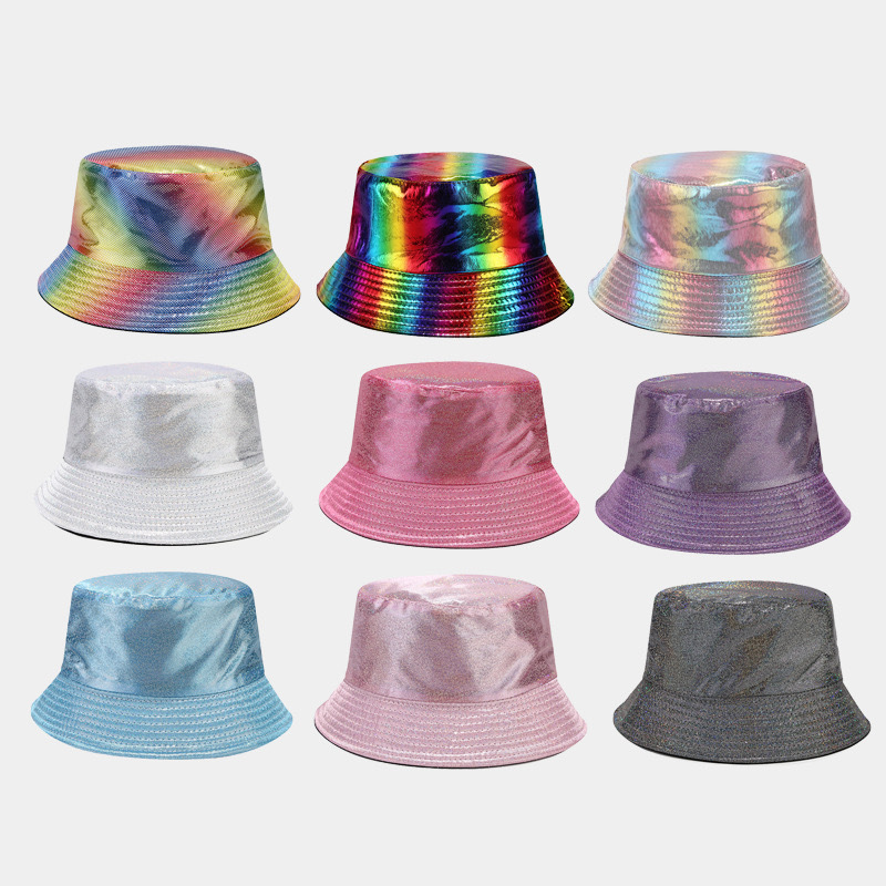 亚马逊跨境热销镭射幻彩PU漆面渔夫帽双面戴欧美户外休闲遮阳帽潮