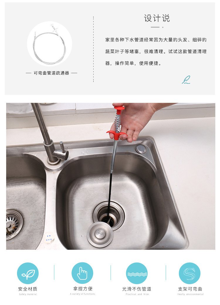 通厕所神器管道疏通器马桶地漏下水道异物夹子多功能四爪工具家用