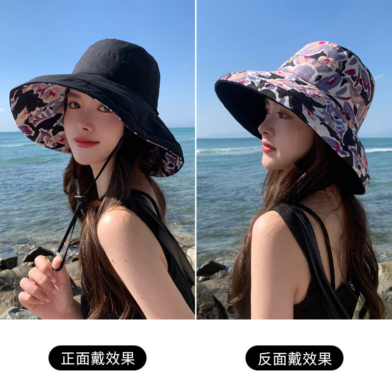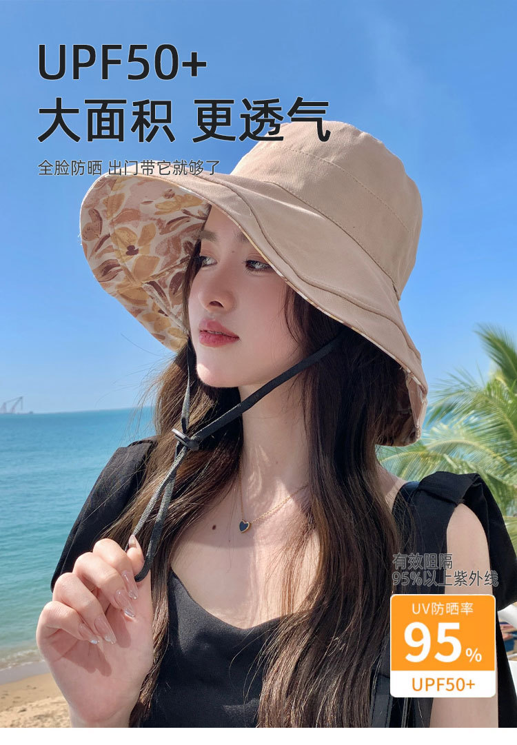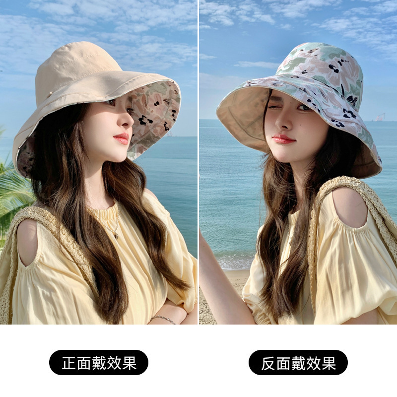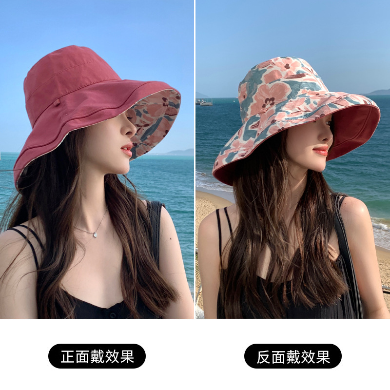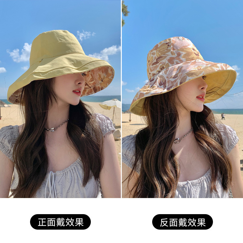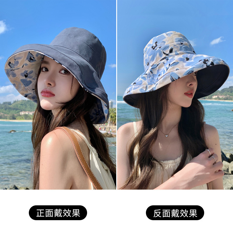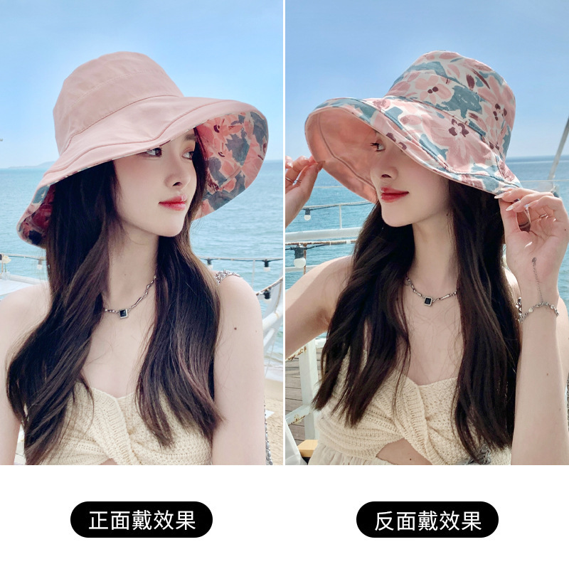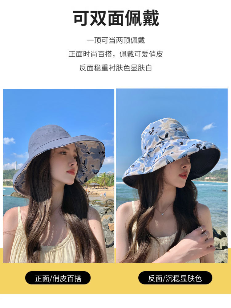 花朵双面渔夫帽女春夏户外防晒遮阳帽防紫外线休闲大檐遮脸大头围