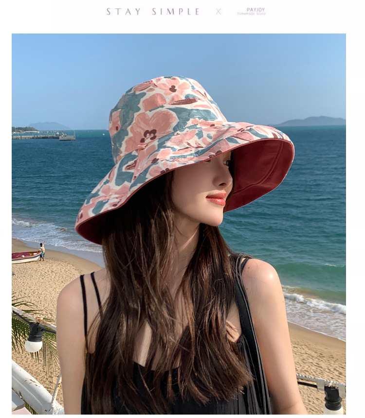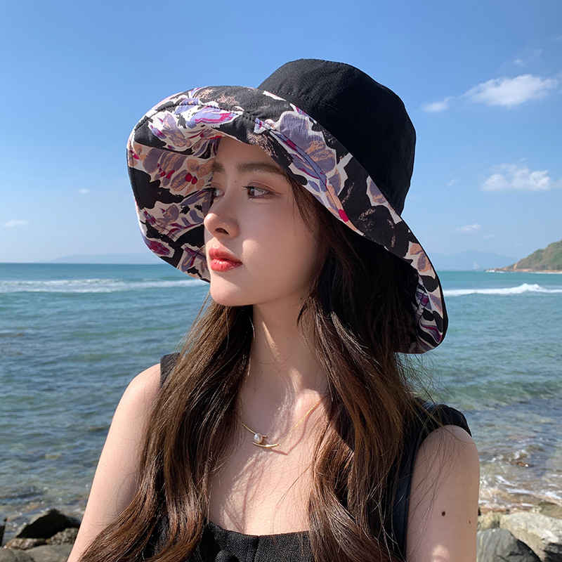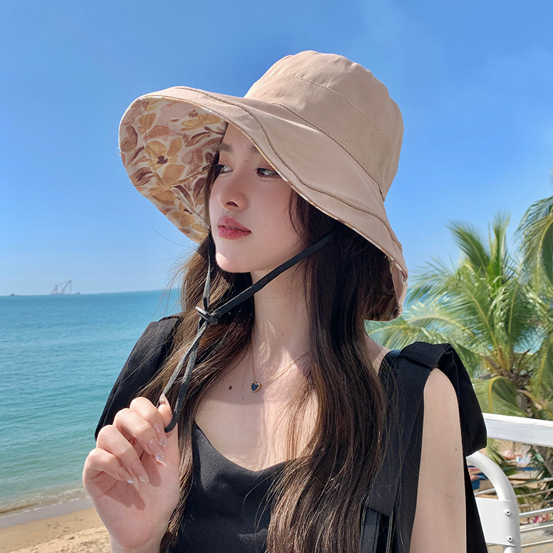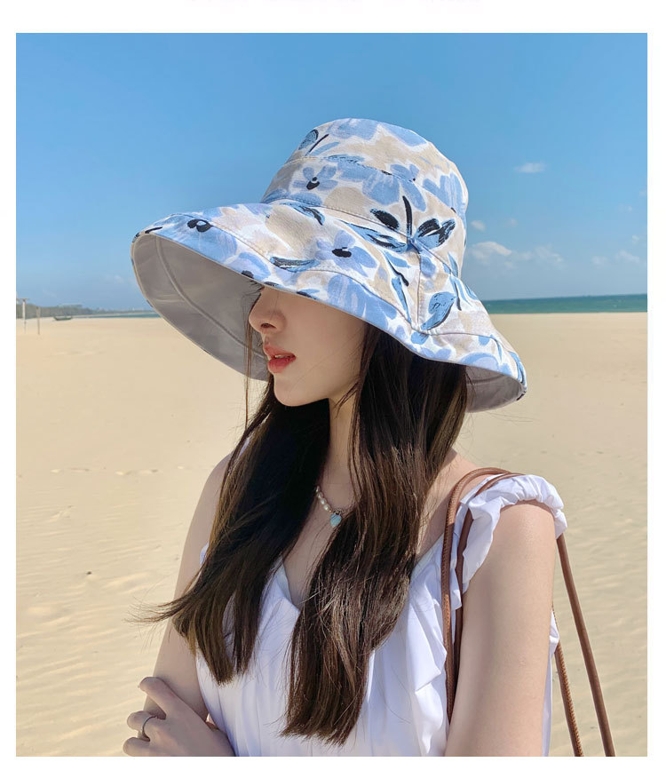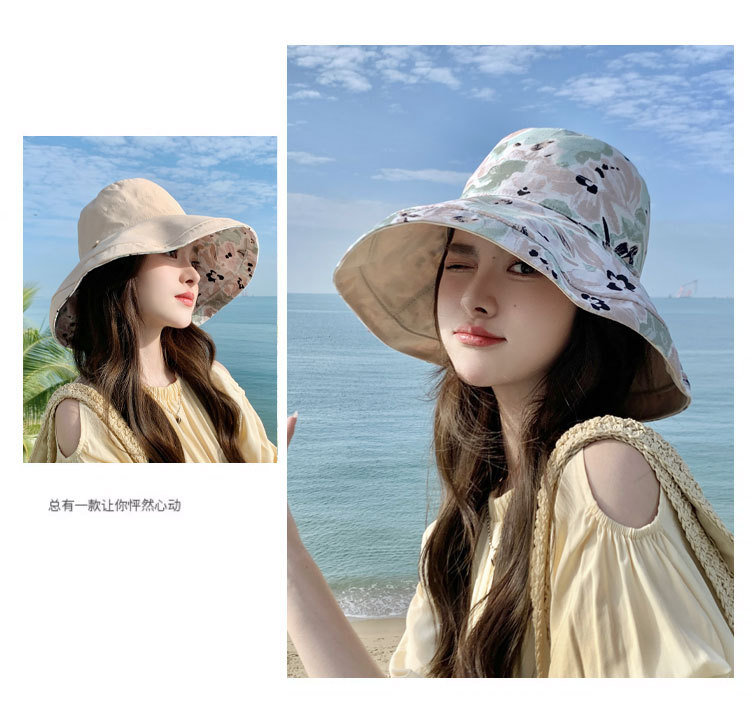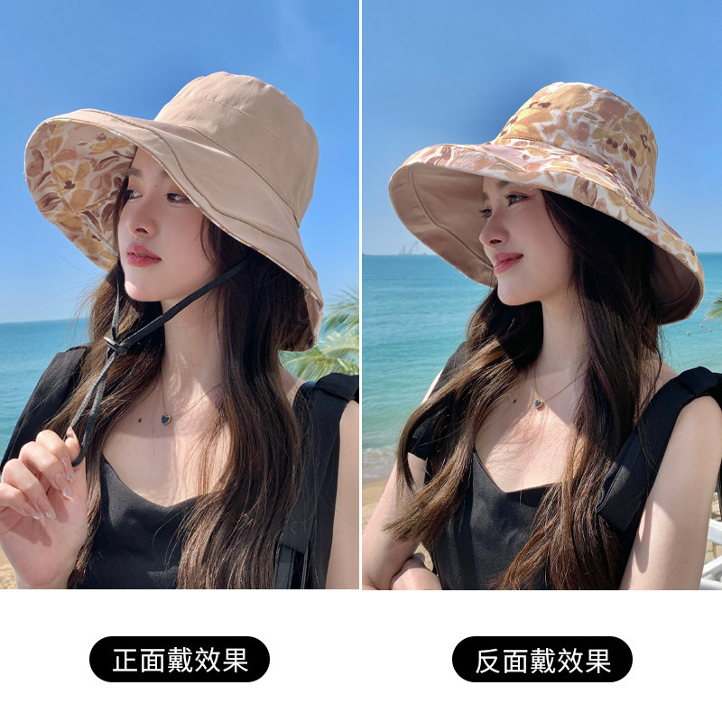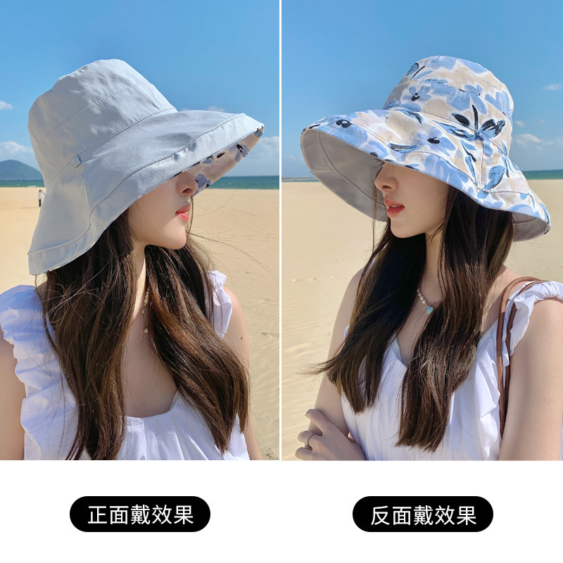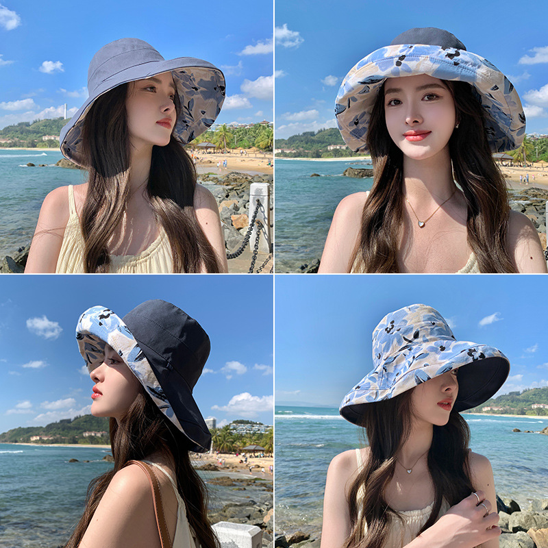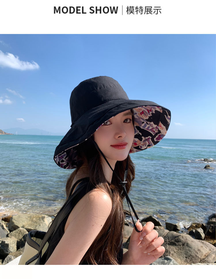 花朵双面渔夫帽女春夏户外防晒遮阳帽防紫外线休闲大檐遮脸大头围