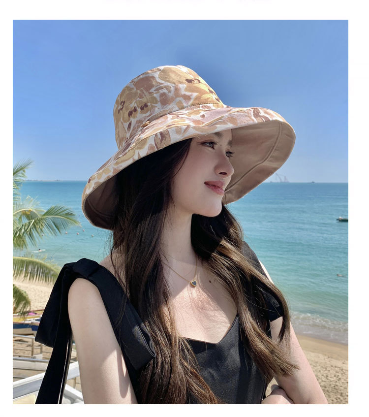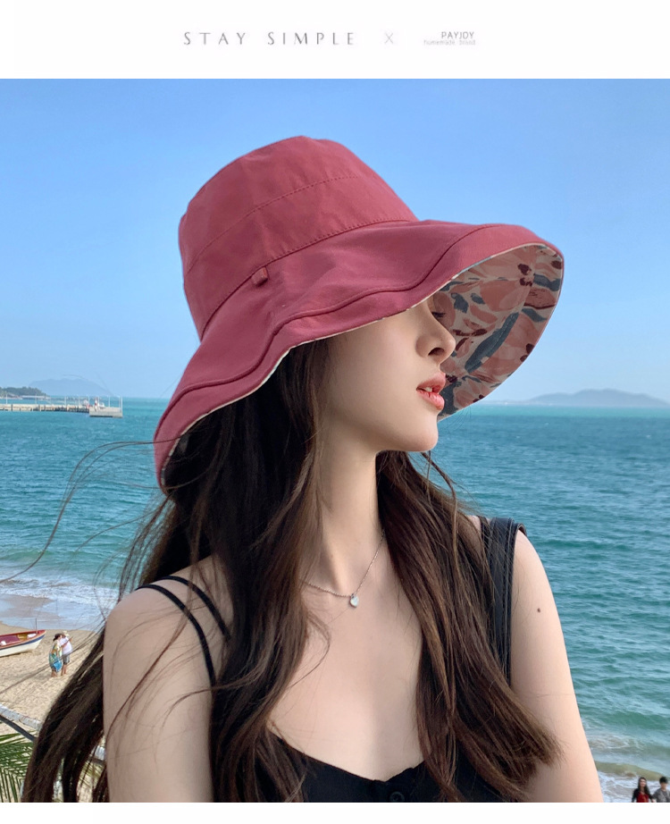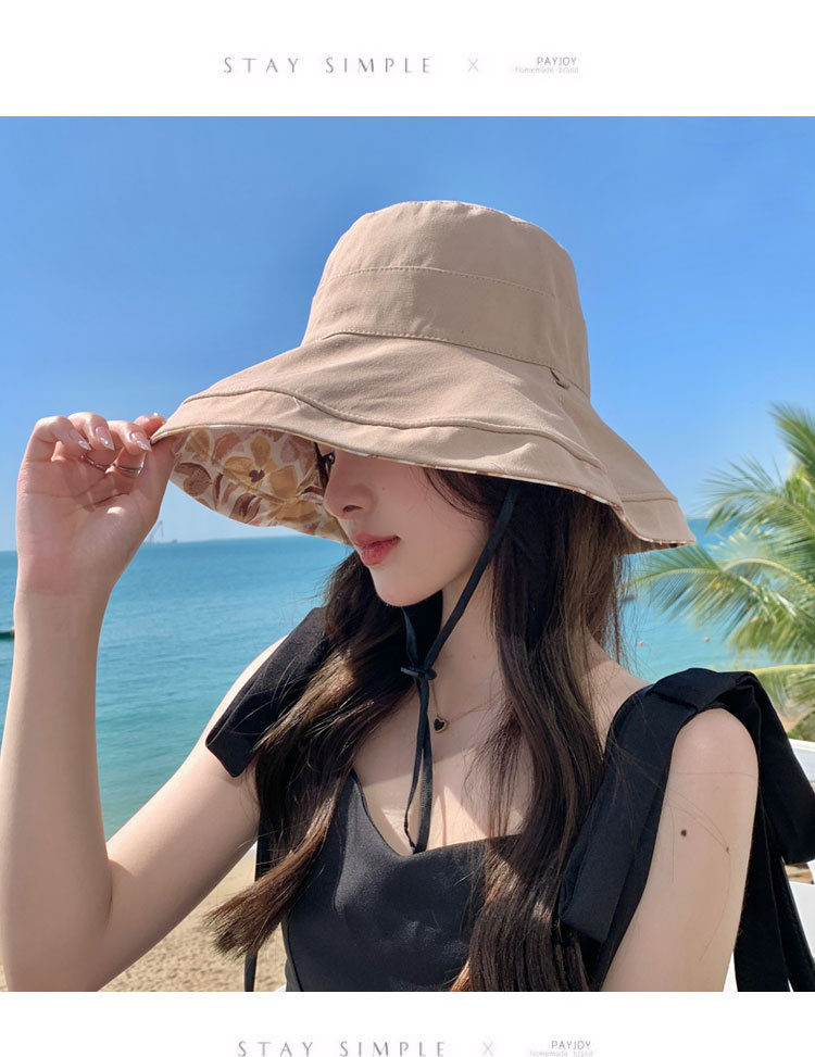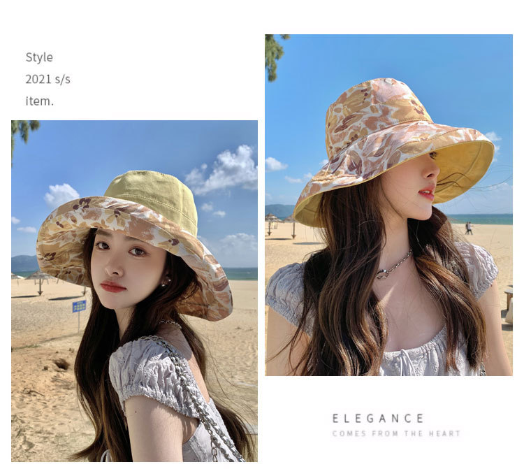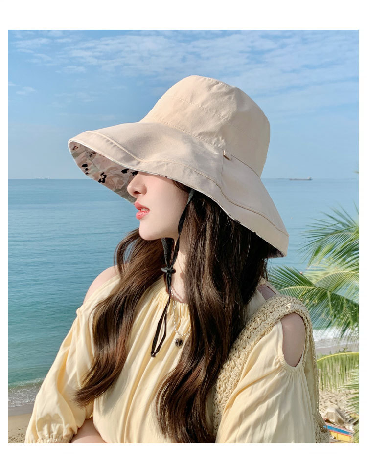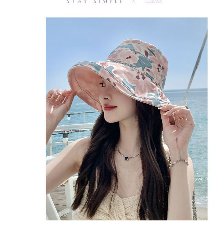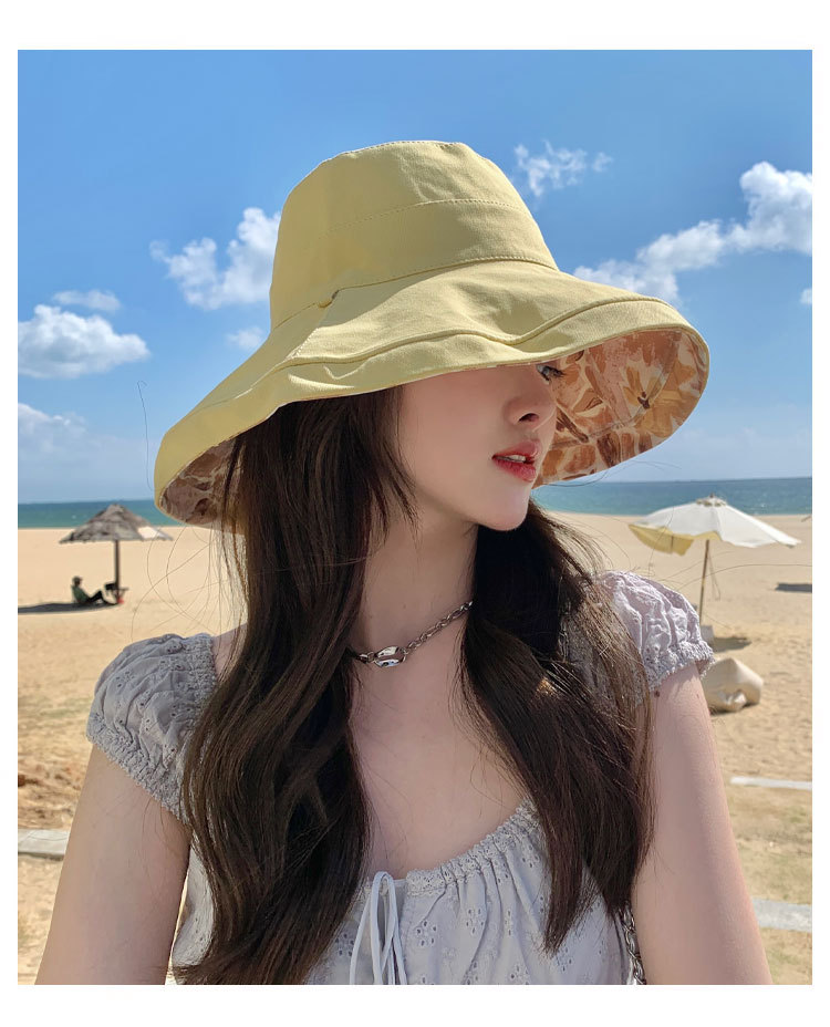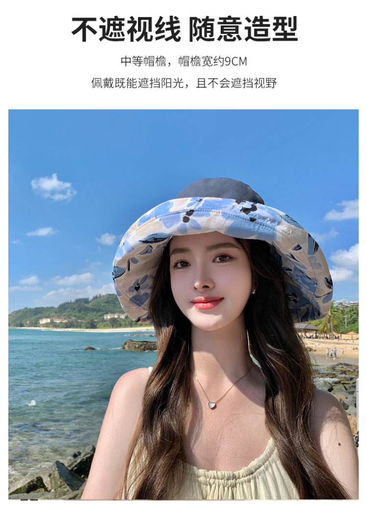 花朵双面渔夫帽女春夏户外防晒遮阳帽防紫外线休闲大檐遮脸大头围