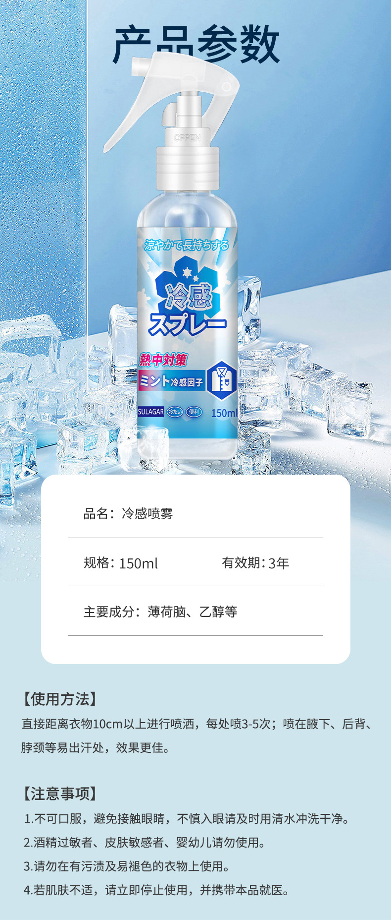 冰凉喷雾降温神器夏日学生随身降温解暑衣物人体清凉喷雾剂