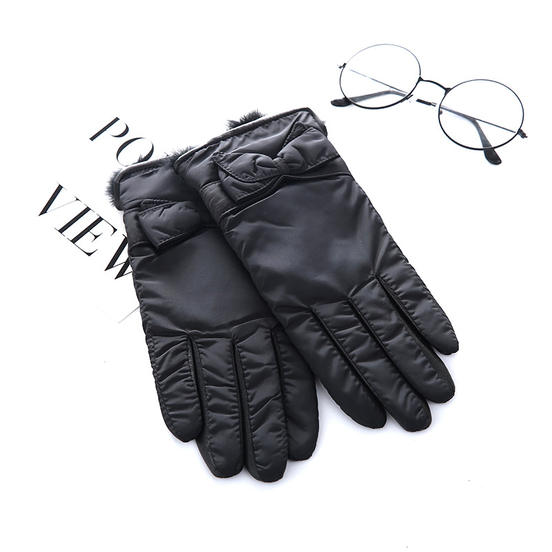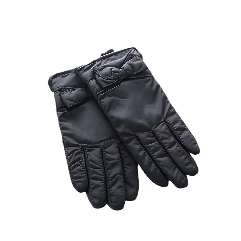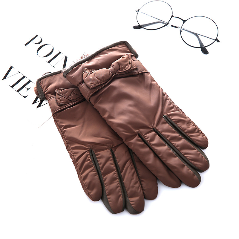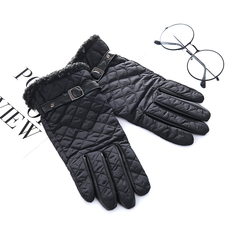 厂家直供纯色缝格女式羊皮保暖手套柔软雪纺布内加绒分指真皮手套