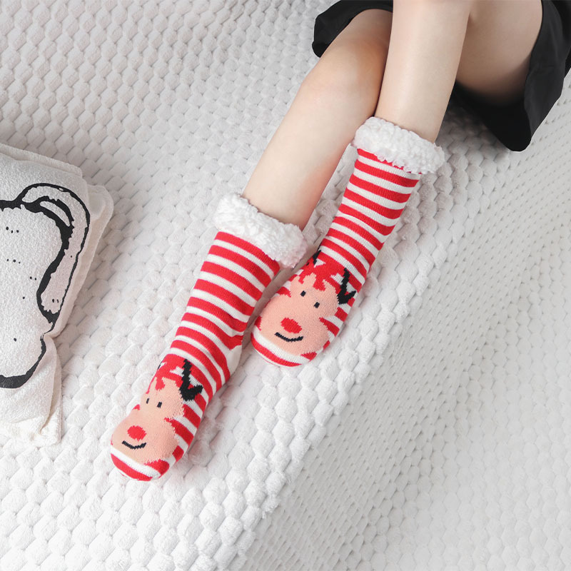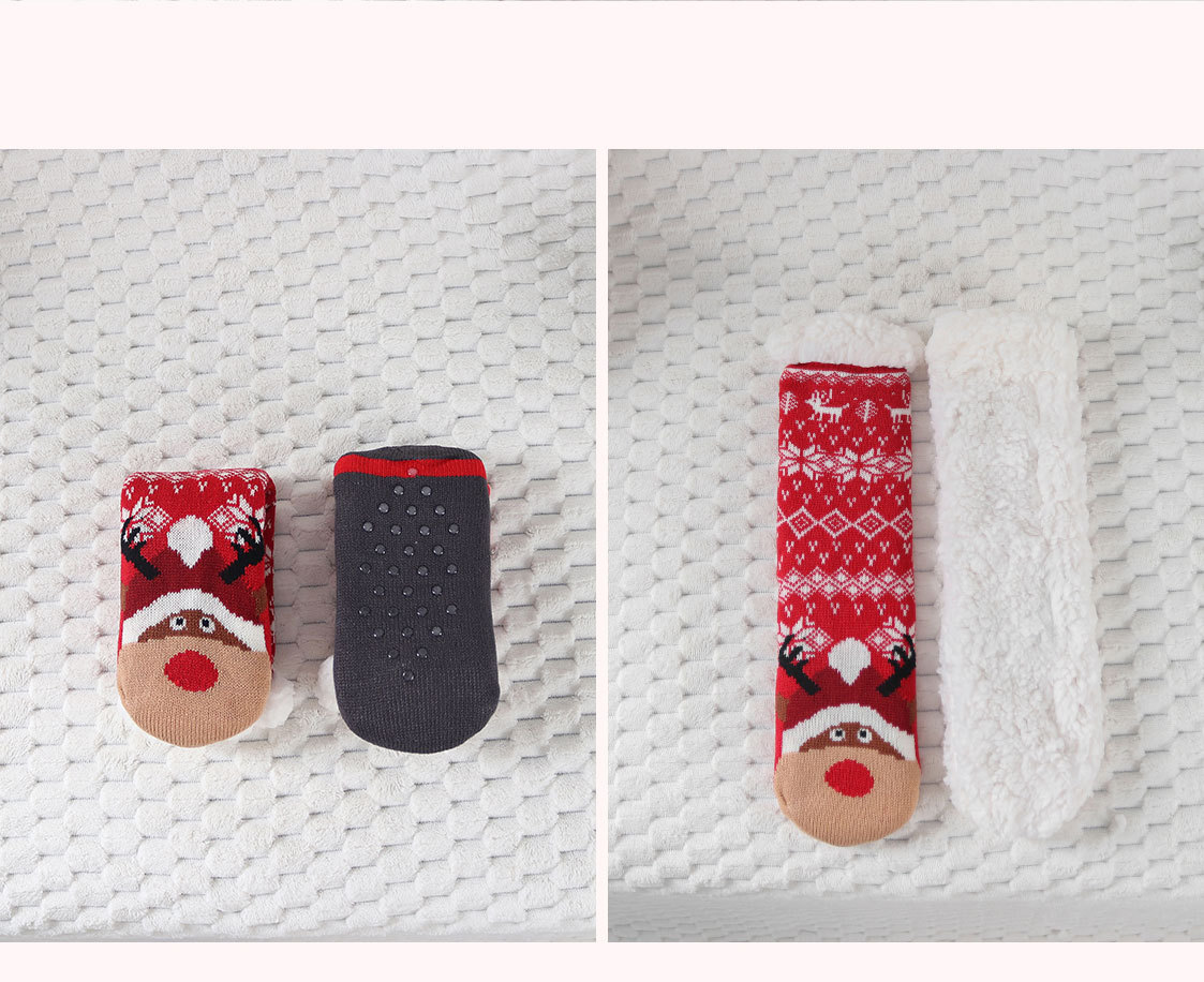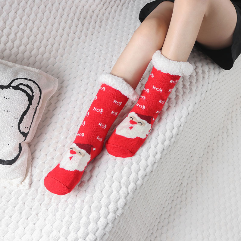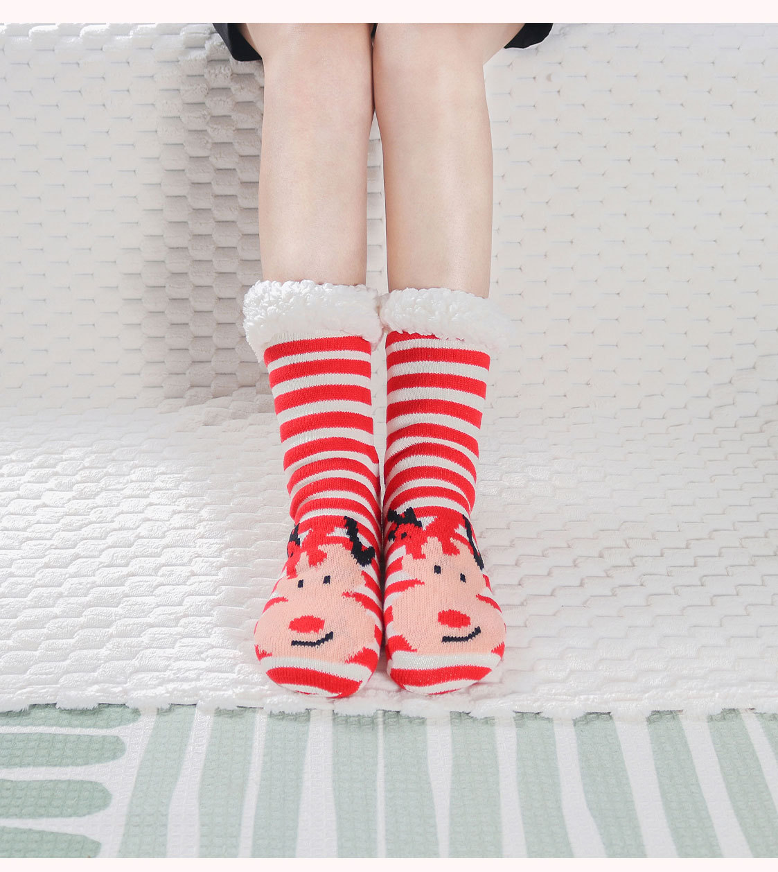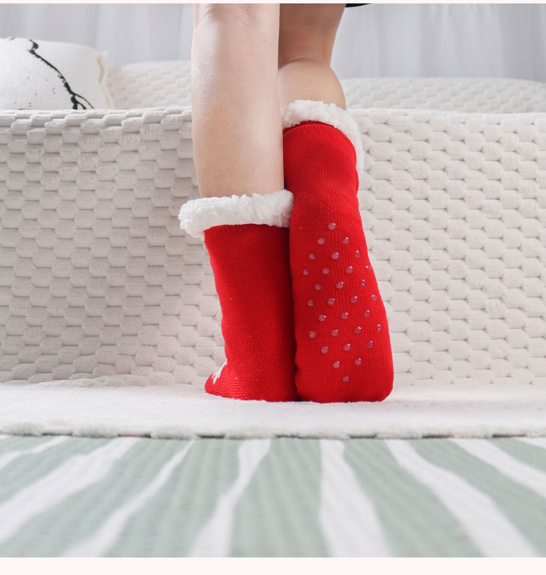 秋冬地板袜圣诞款加绒加厚室内睡眠袜珊瑚绒中筒女袜拖鞋袜防滑