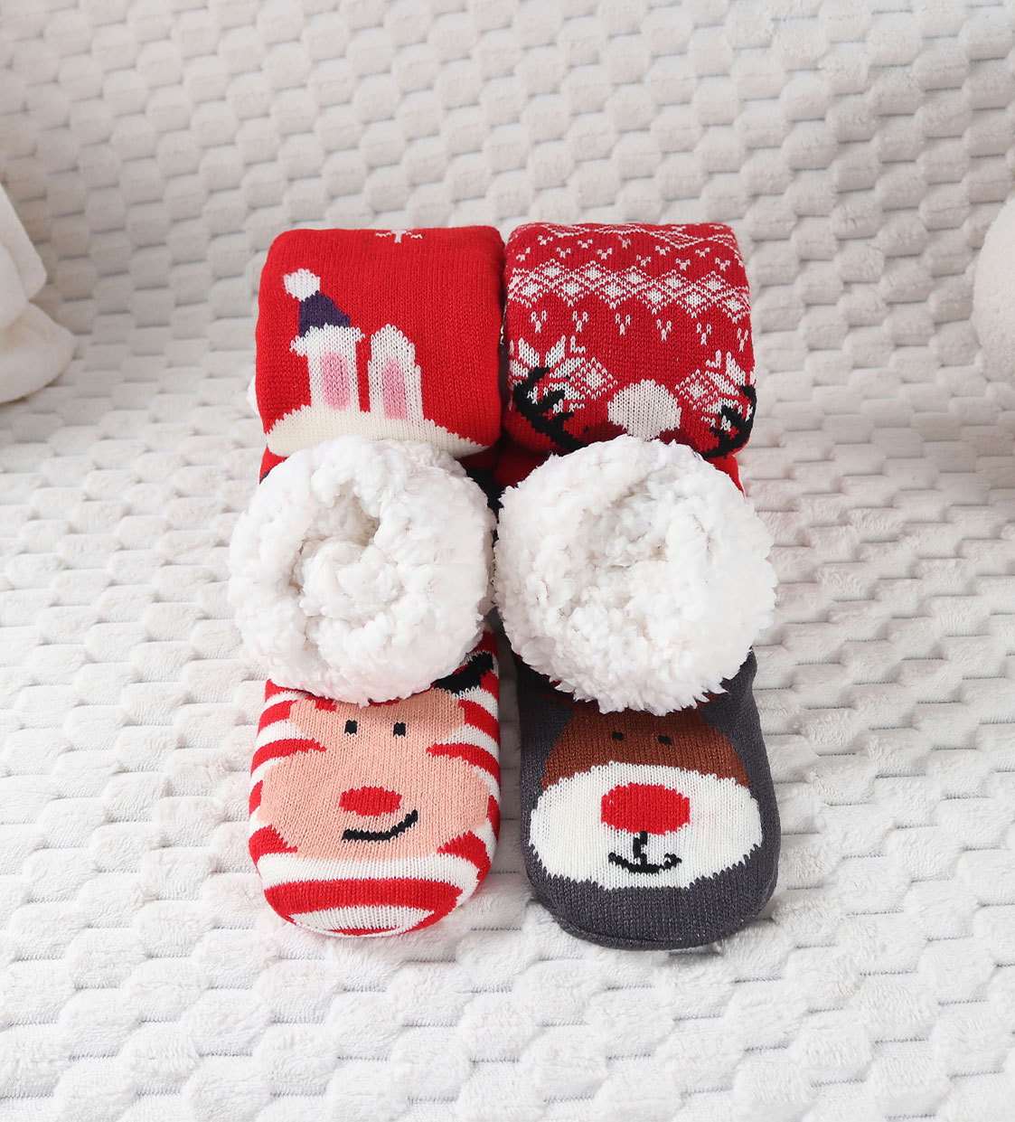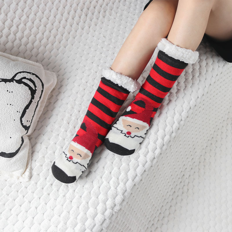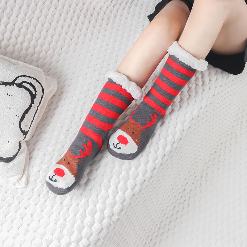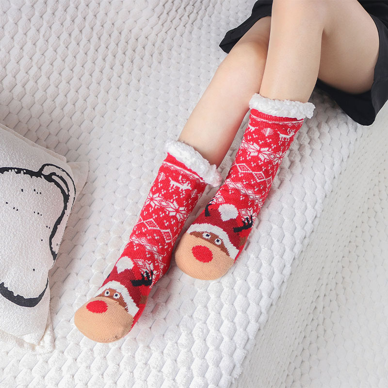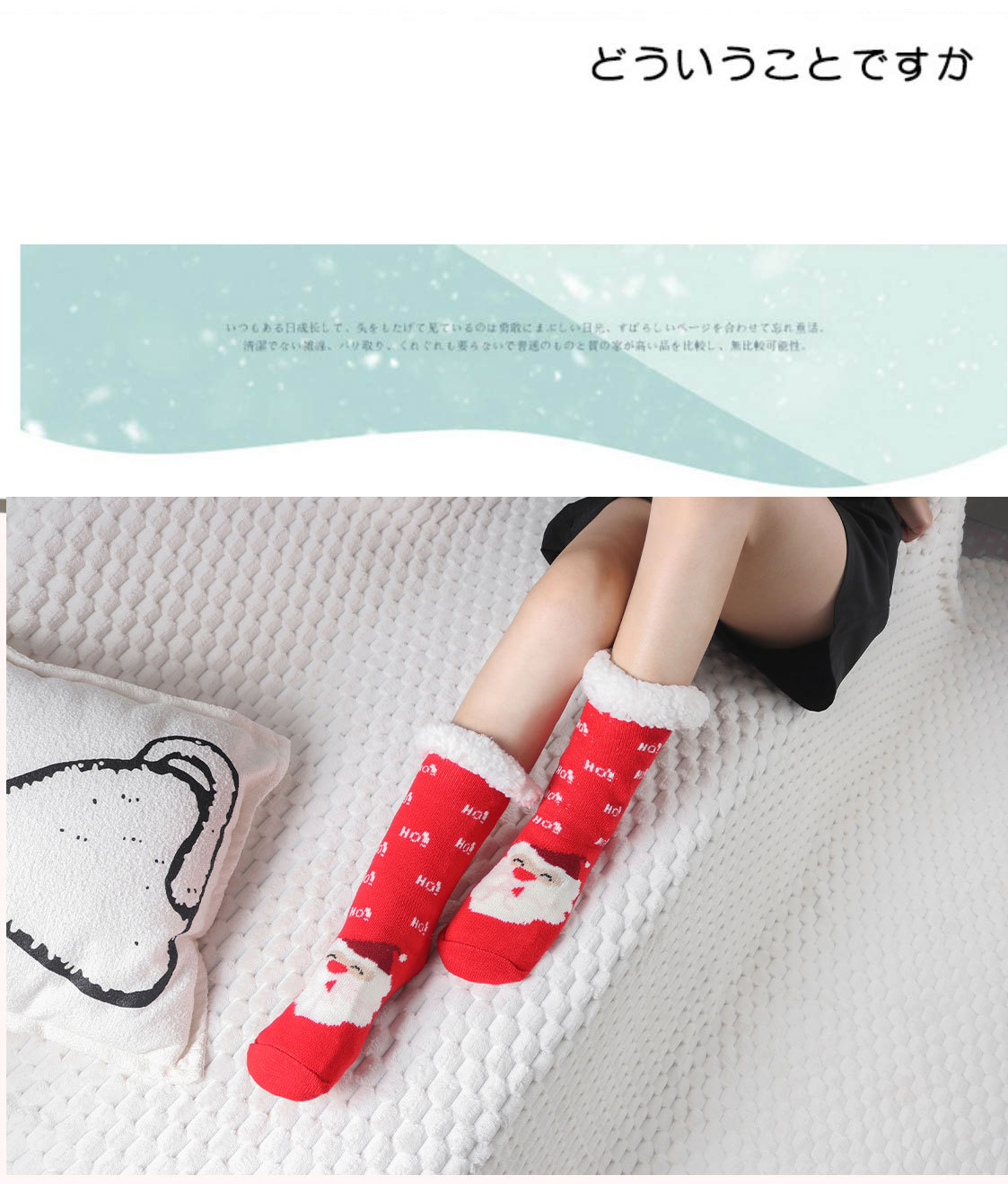 秋冬地板袜圣诞款加绒加厚室内睡眠袜珊瑚绒中筒女袜拖鞋袜防滑
