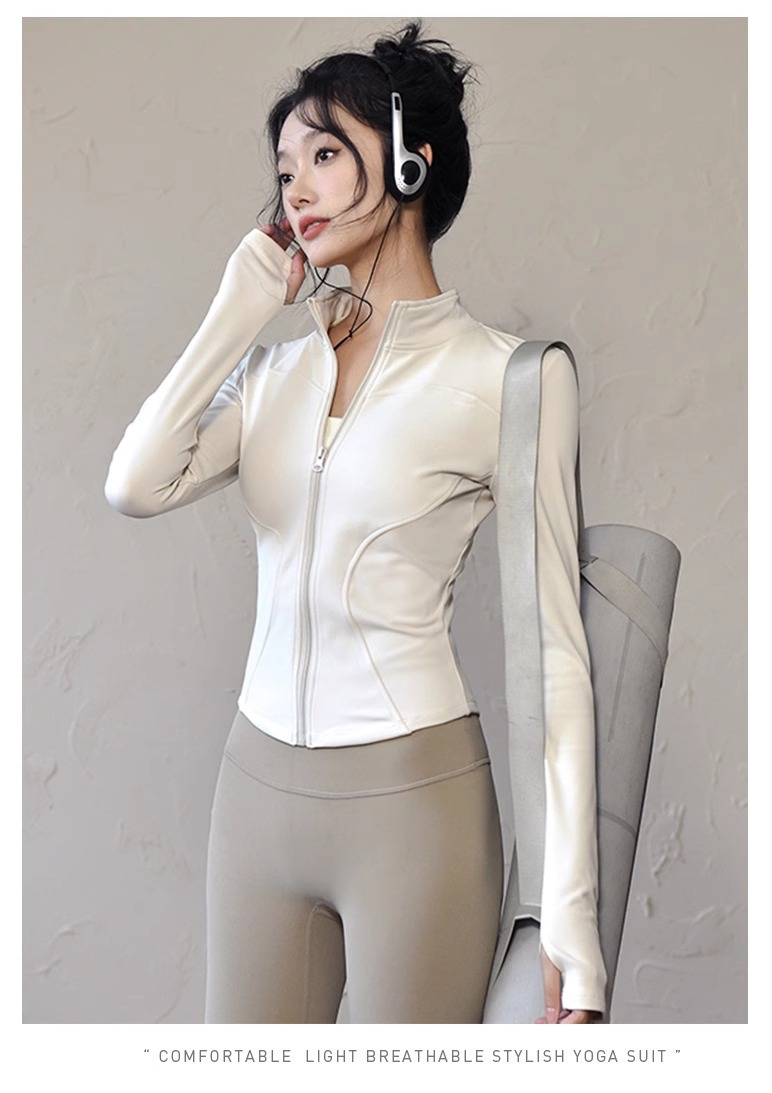 防晒速干瑜伽服修身跑步健身运动外套透气高弹显瘦运动上衣