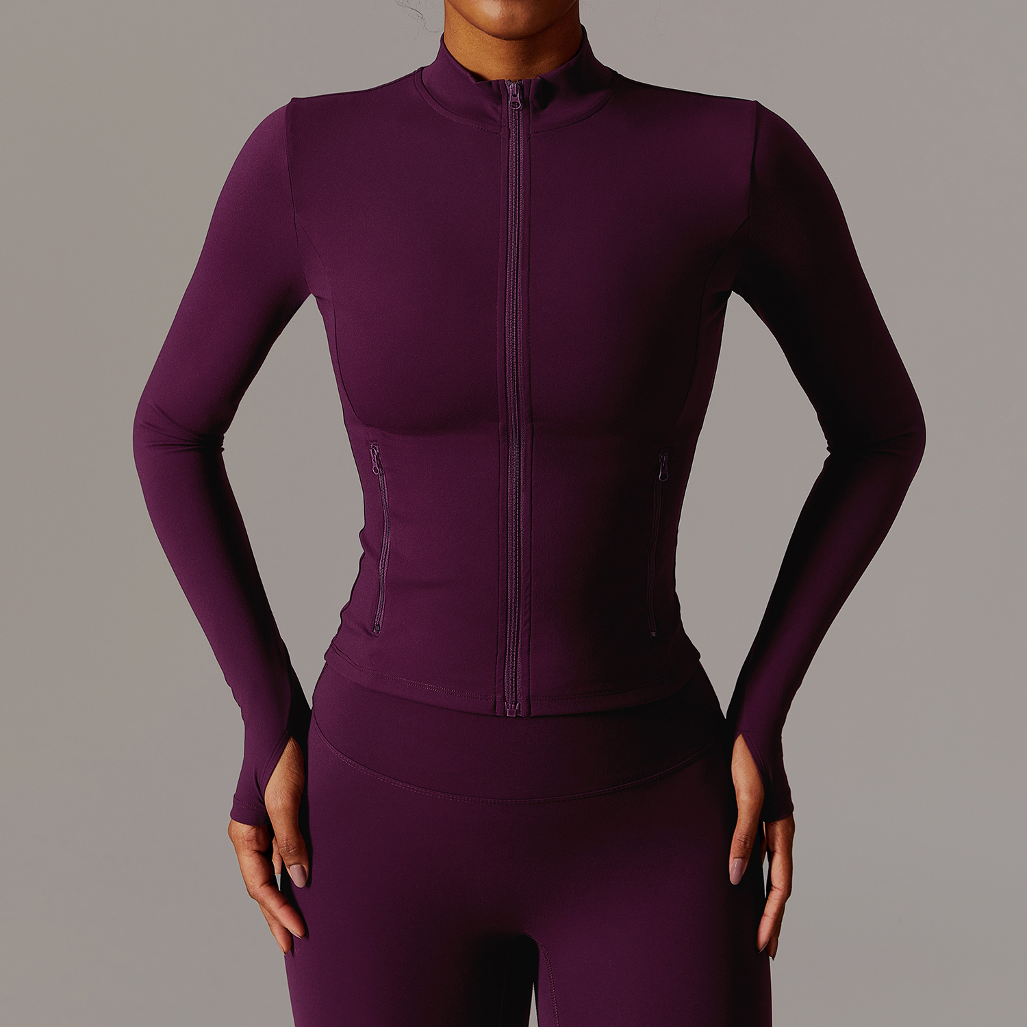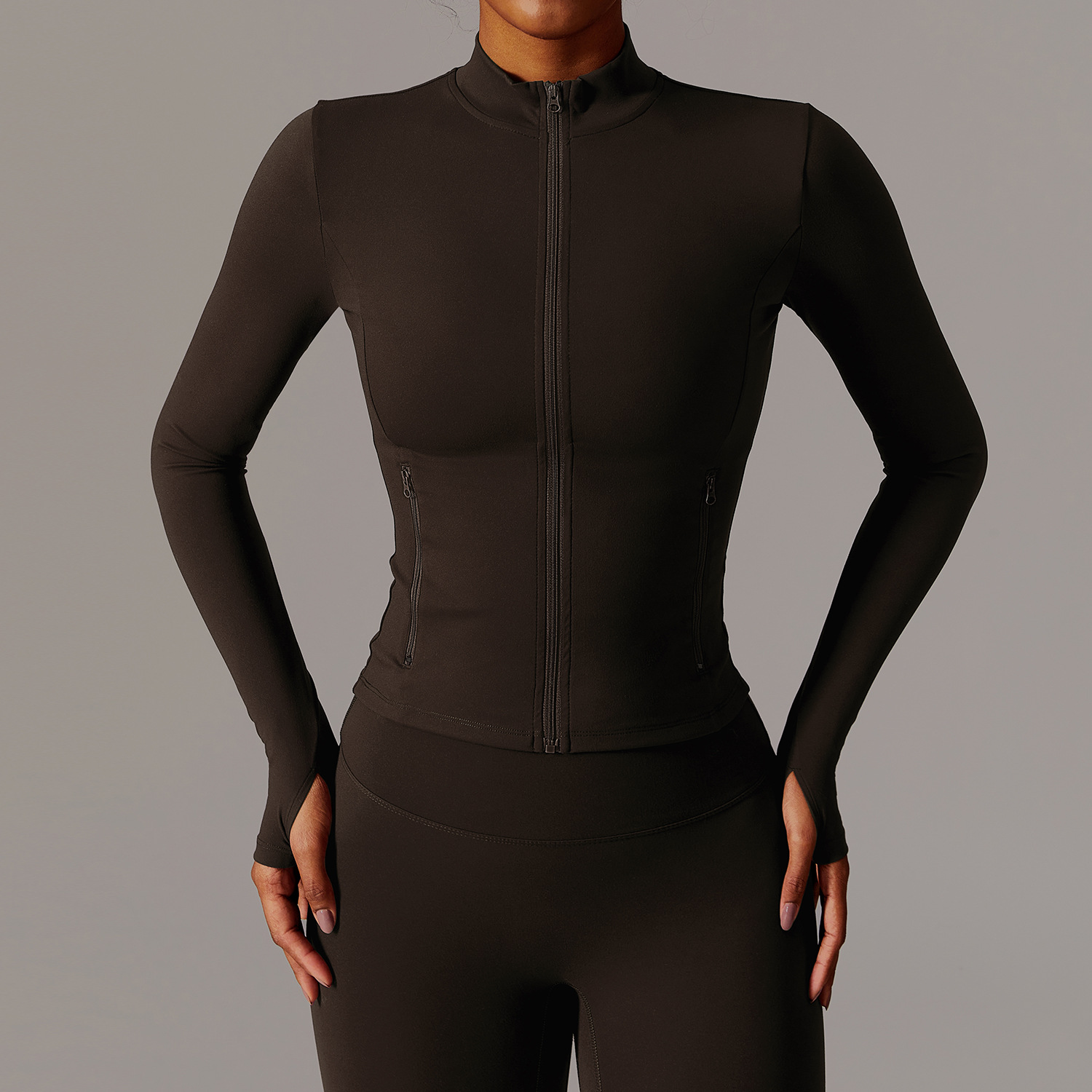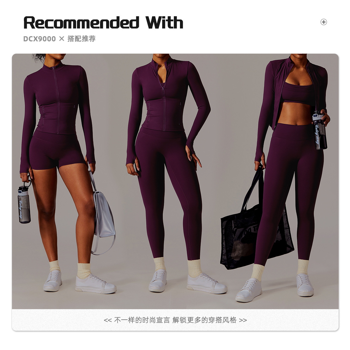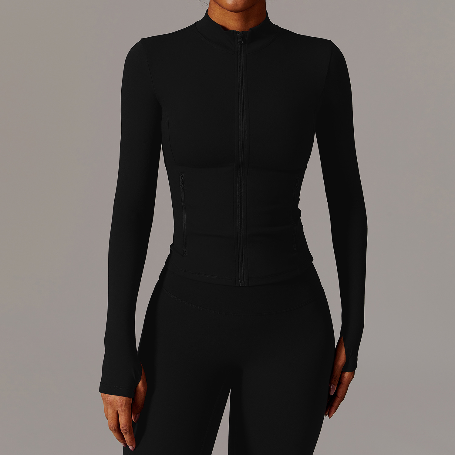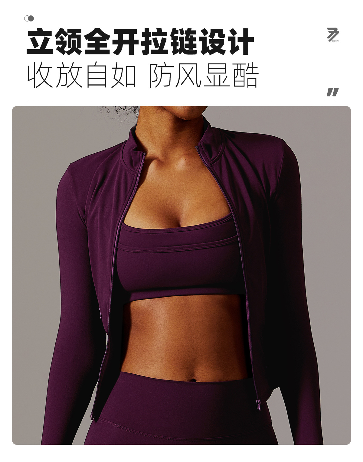 秋冬跨境拉链长袖速干瑜伽服户外休闲上衣训练跑步运动健身服9000