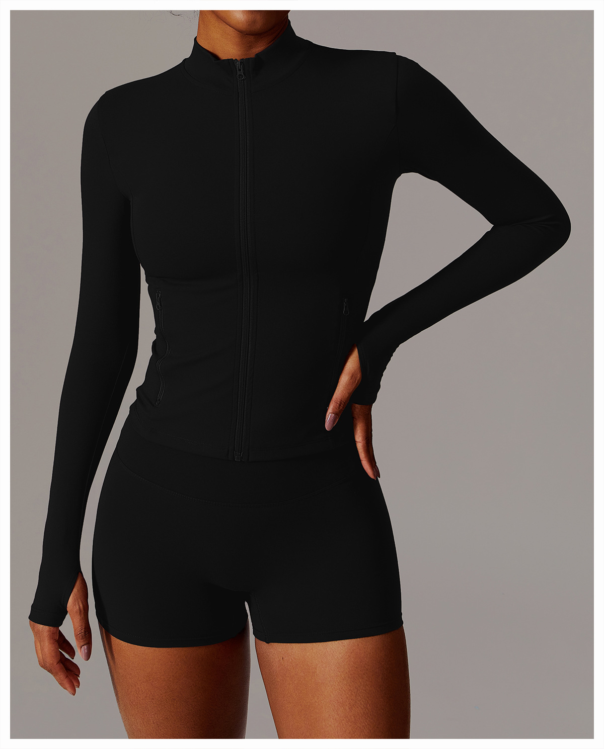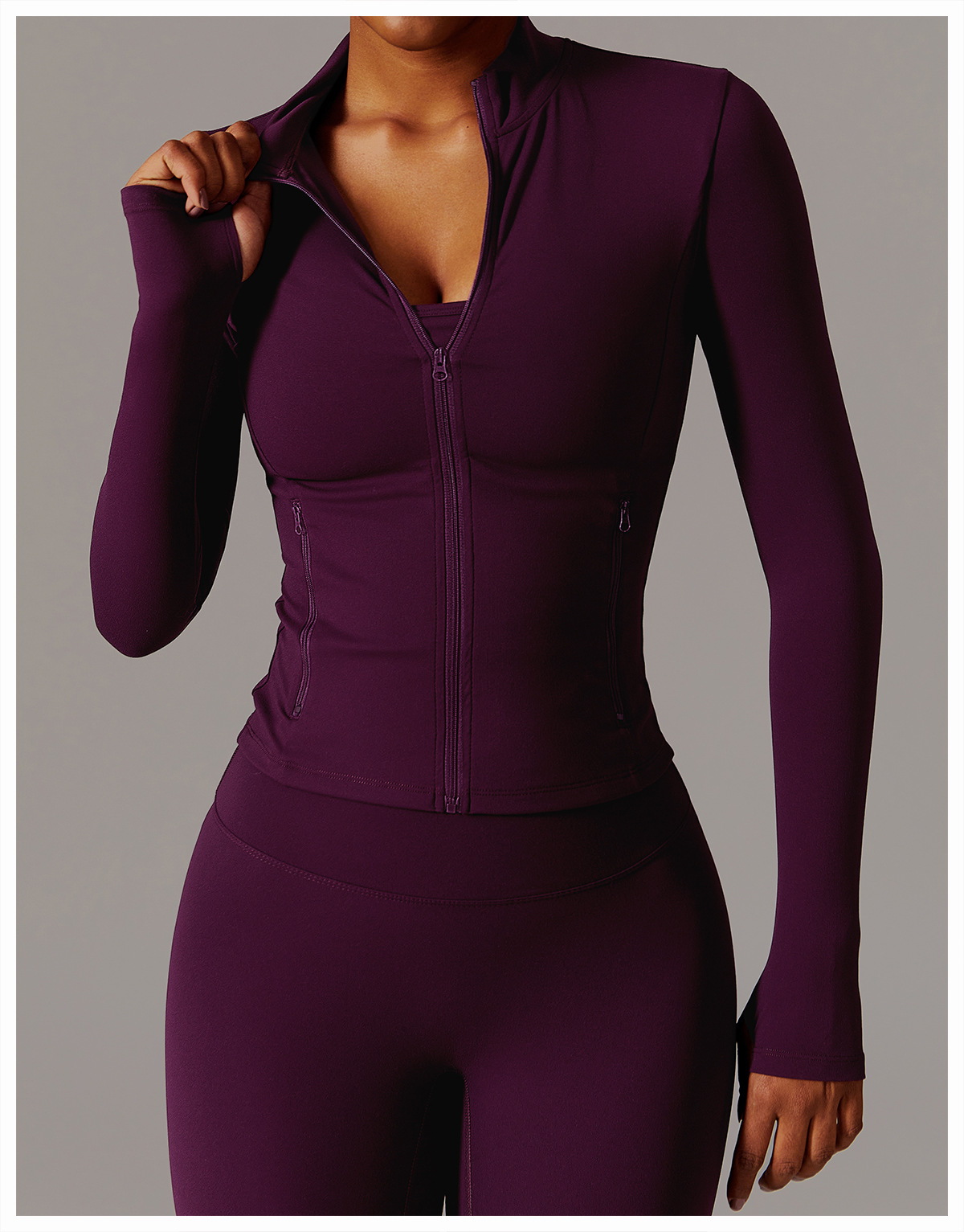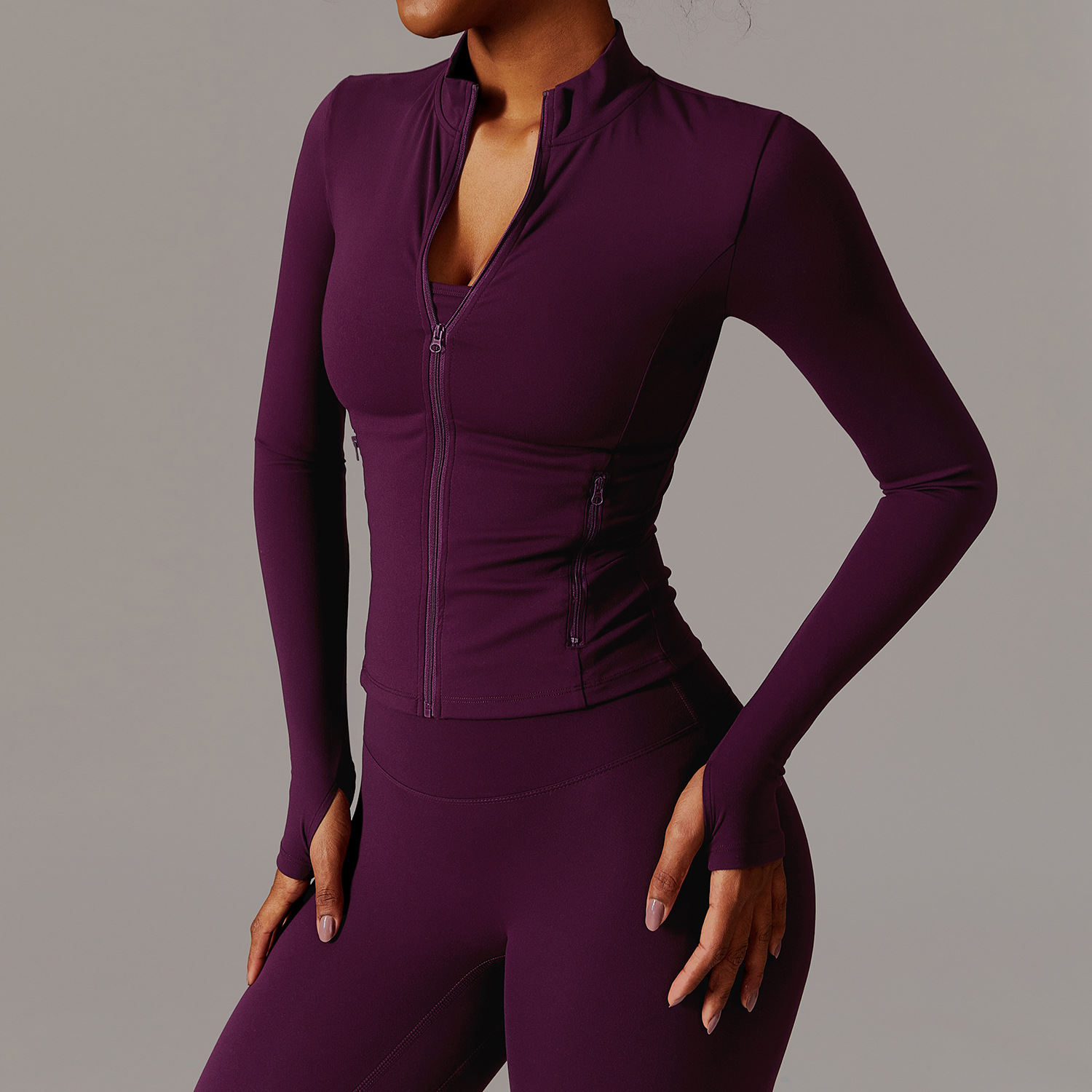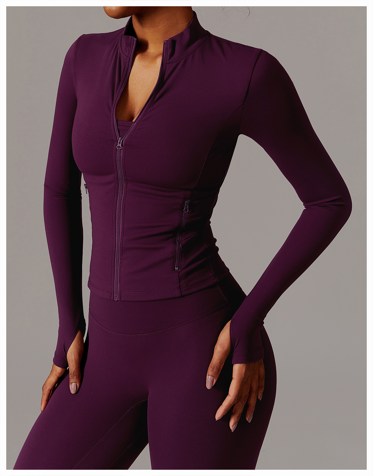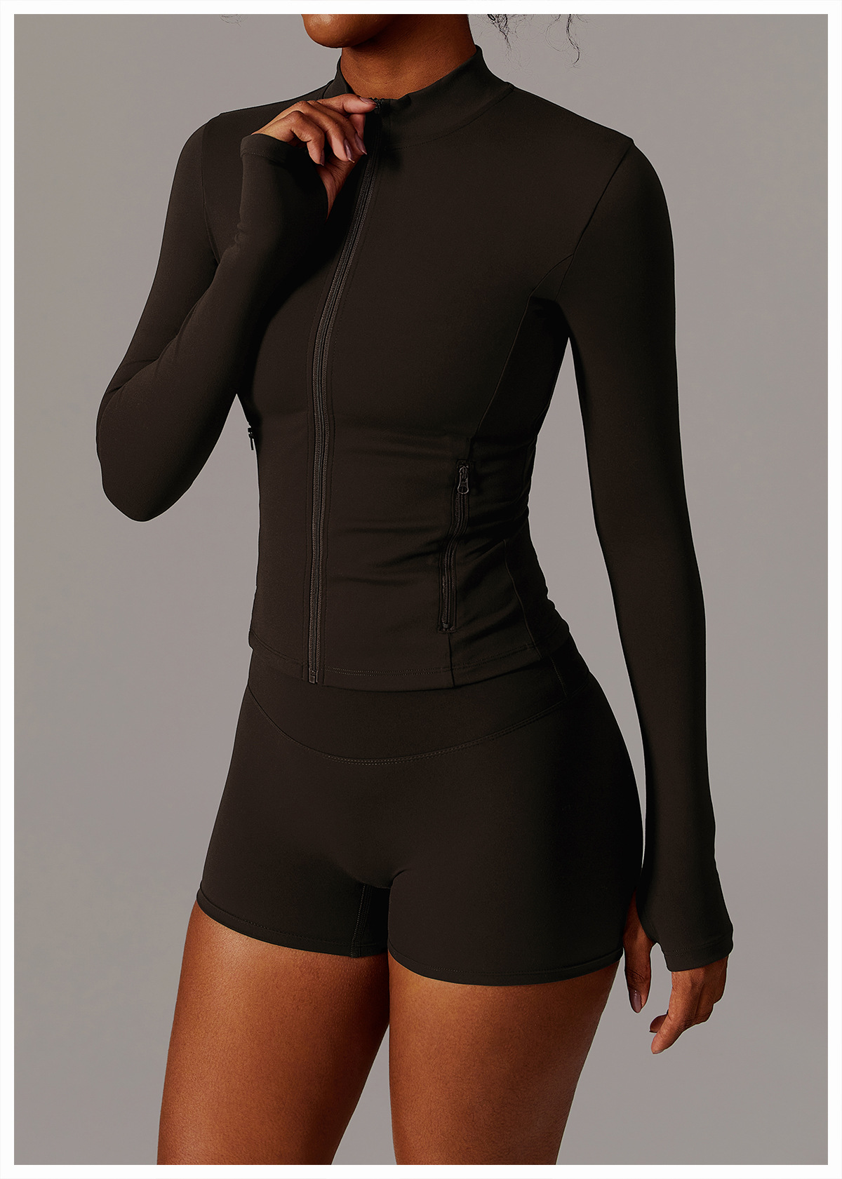 秋冬跨境拉链长袖速干瑜伽服户外休闲上衣训练跑步运动健身服9000
