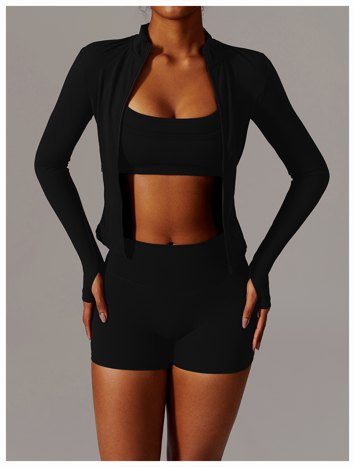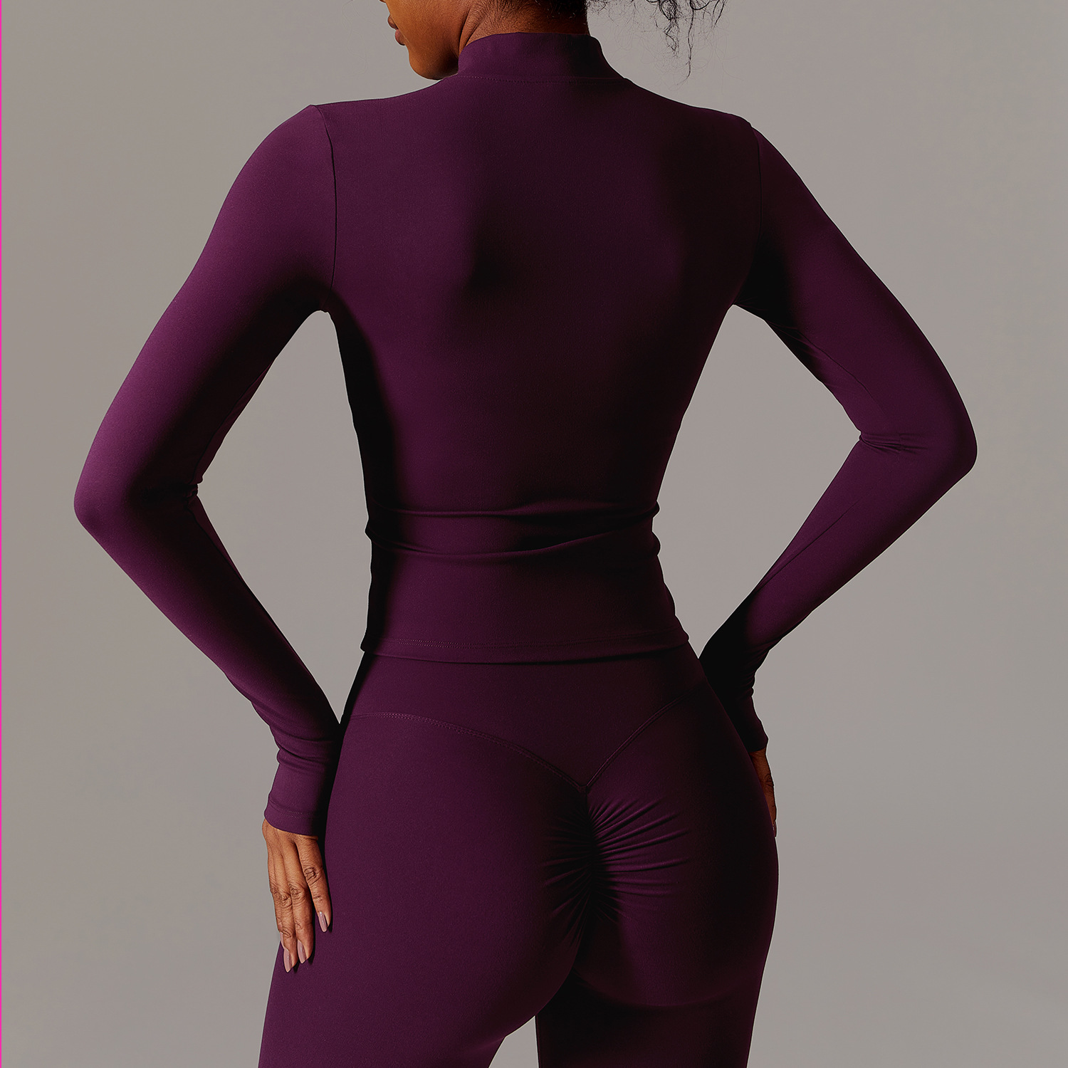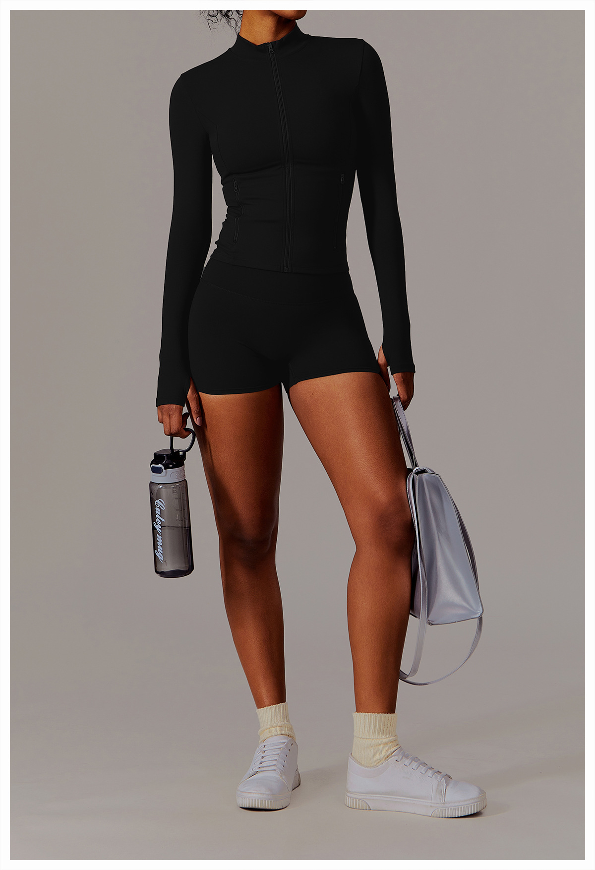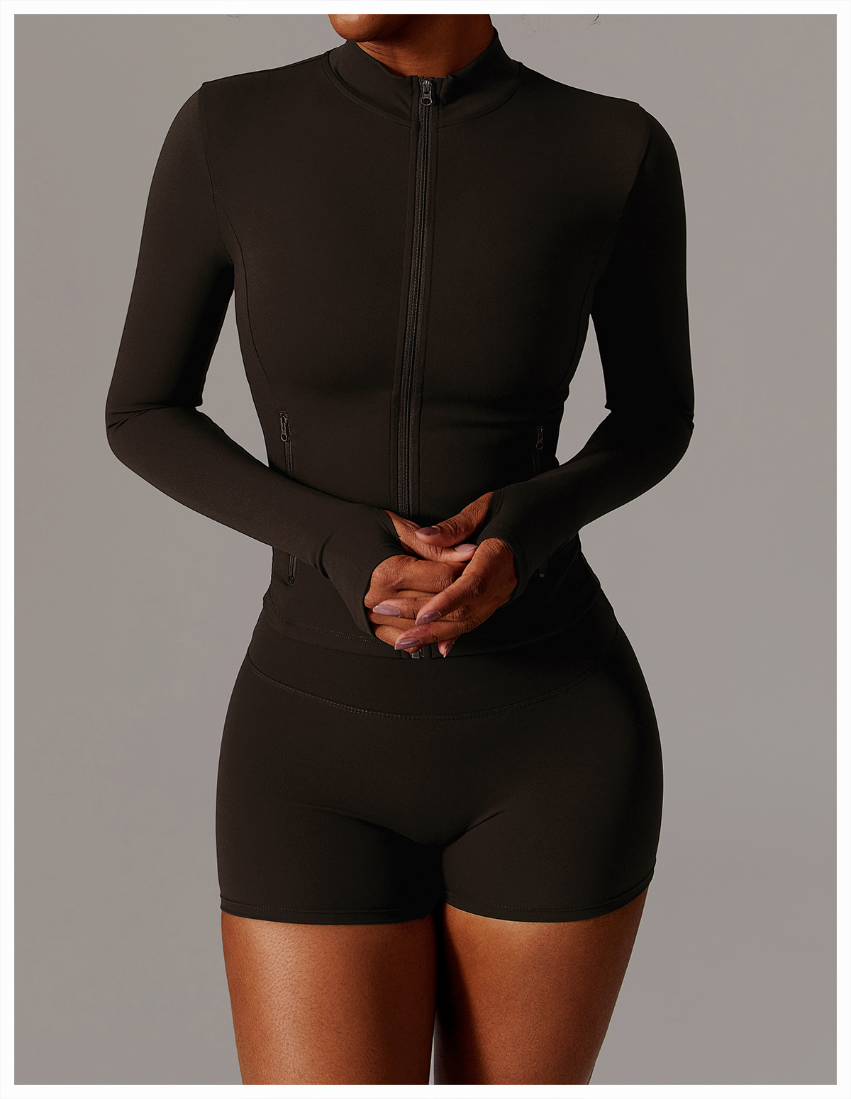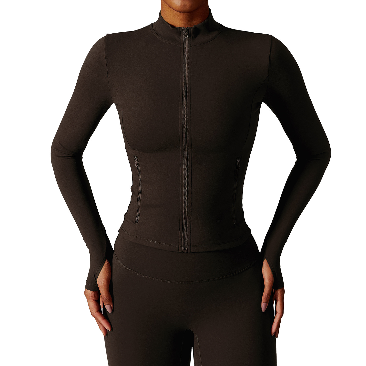 秋冬跨境拉链长袖速干瑜伽服户外休闲上衣训练跑步运动健身服9000