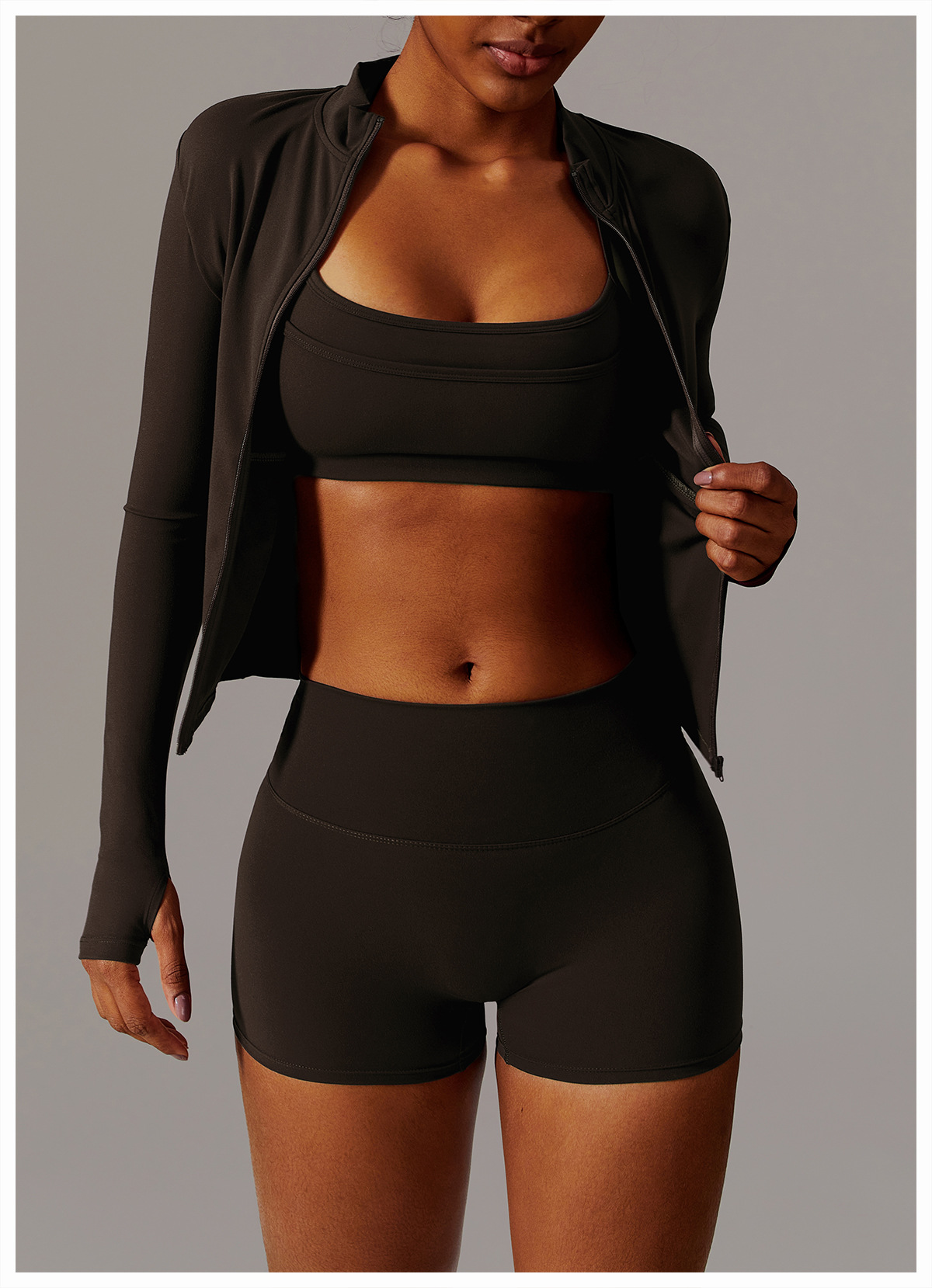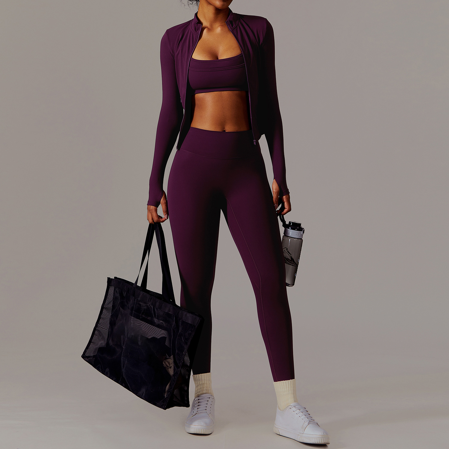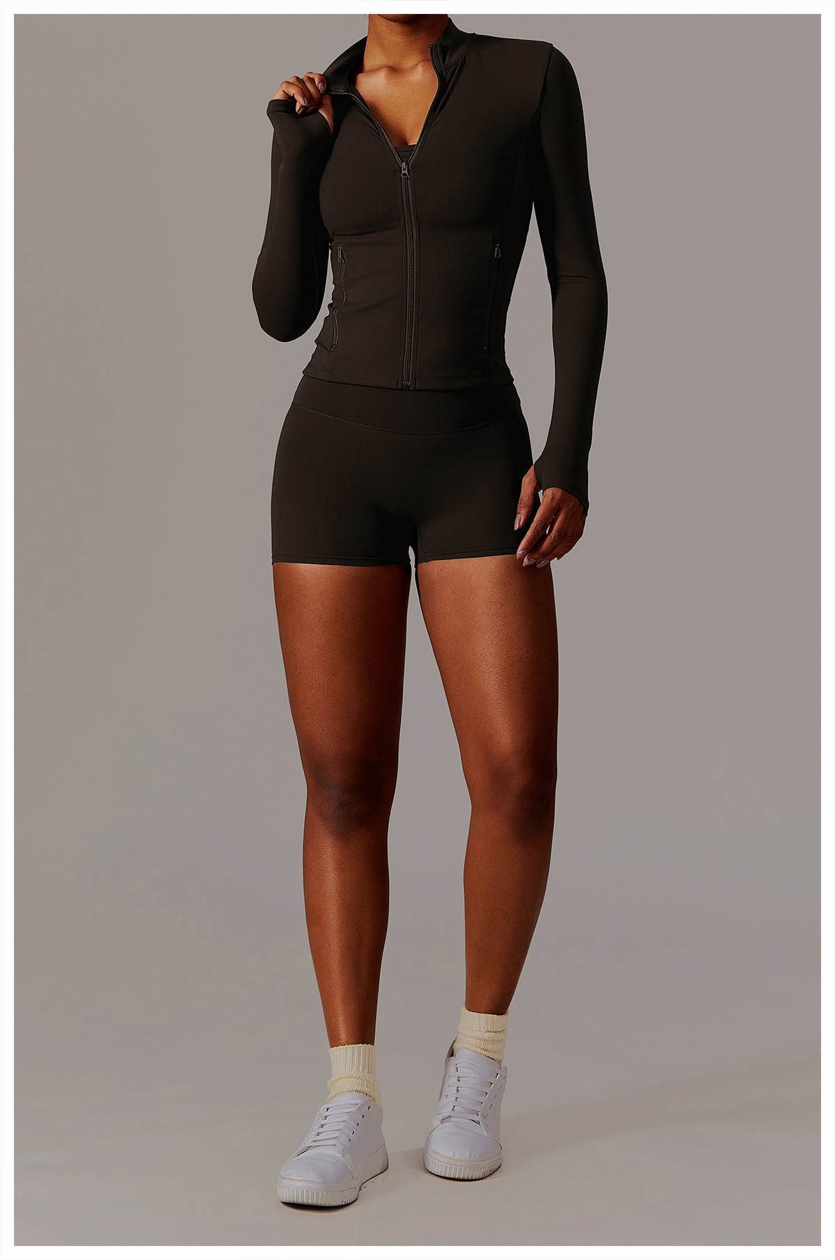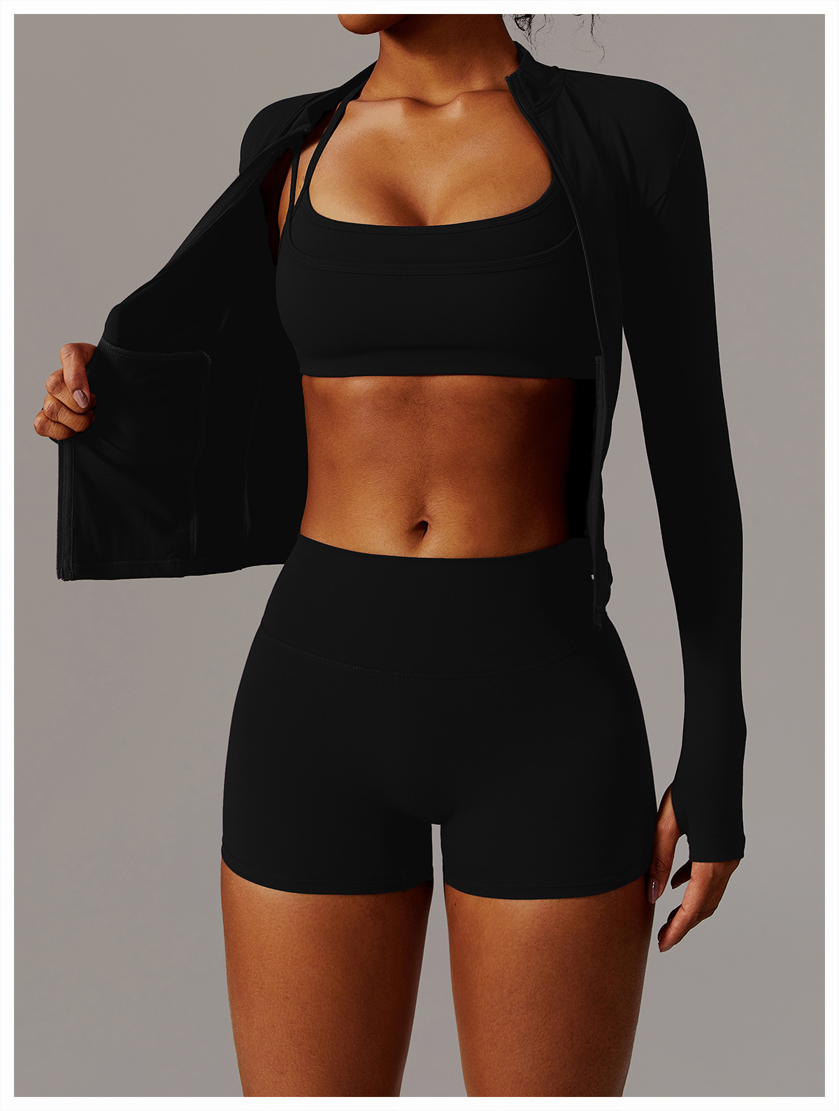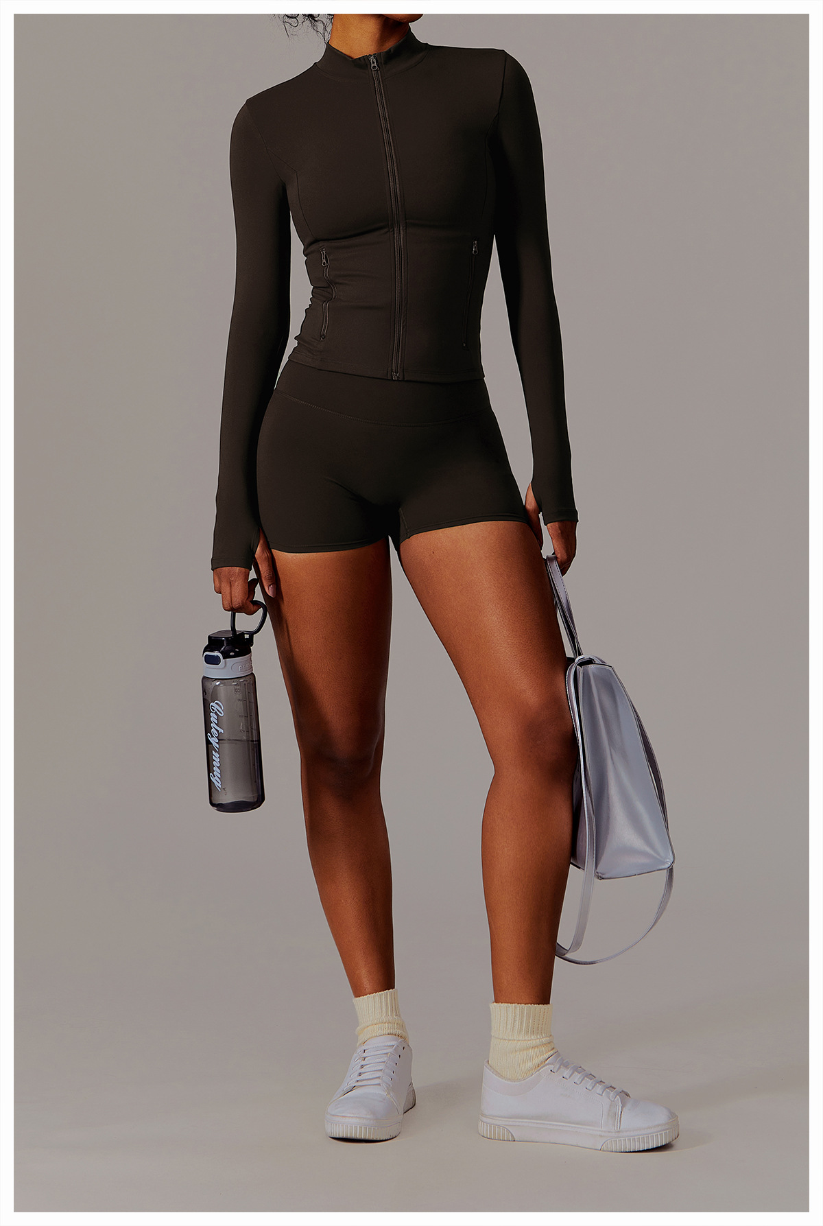 秋冬跨境拉链长袖速干瑜伽服户外休闲上衣训练跑步运动健身服9000