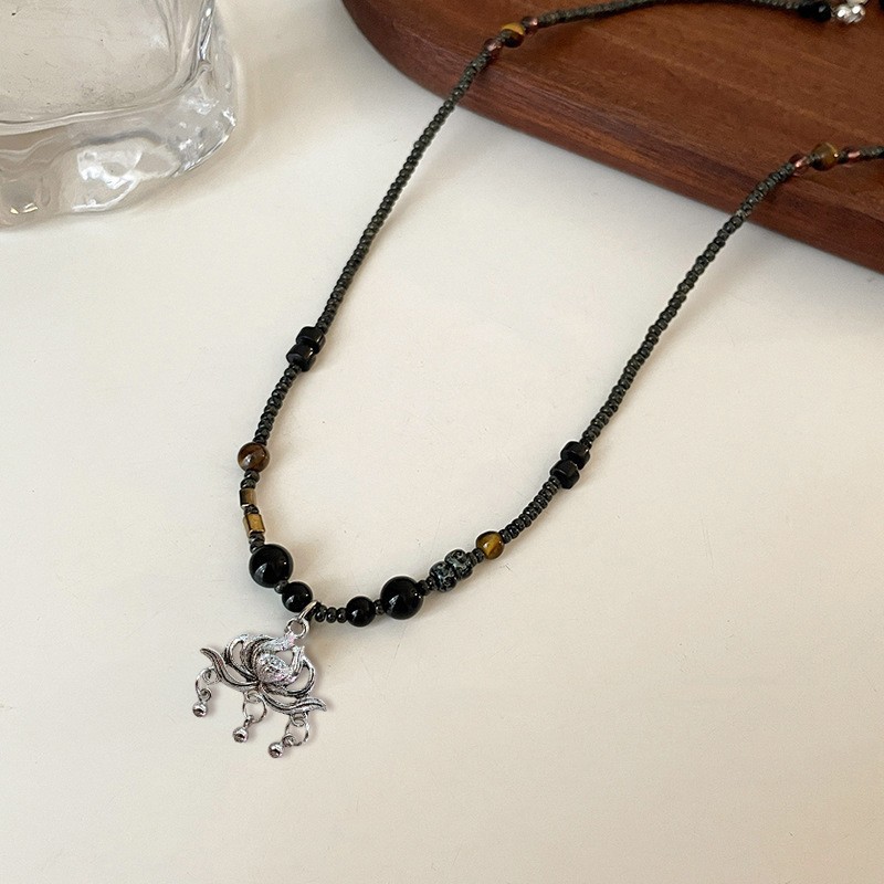 新中式国风禅意复古陶瓷项链女时尚百搭小众设计感手工编织锁骨链