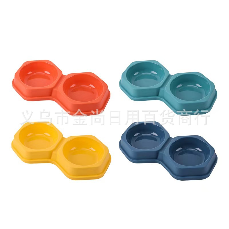 宠物用品猫狗食具糖果色六边形双碗 饮水喂食盆狗碗猫碗跨境新款