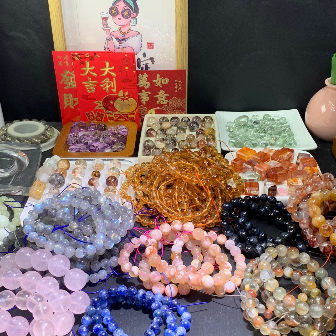 柚米珠宝行 天然水晶秒杀放漏 黄塔晶 紫水晶灰月光 粉晶等批发