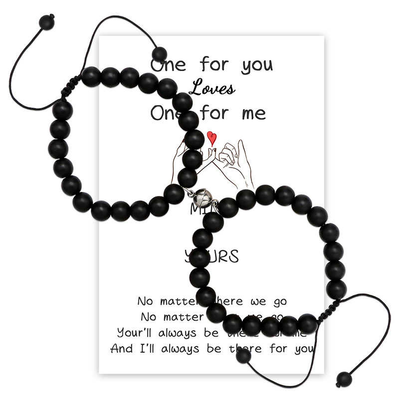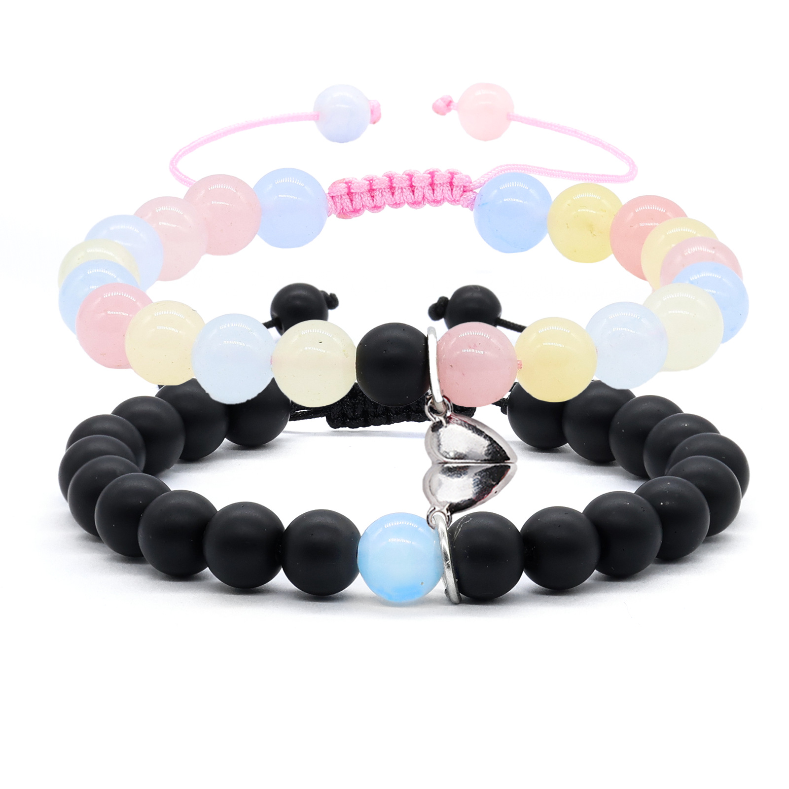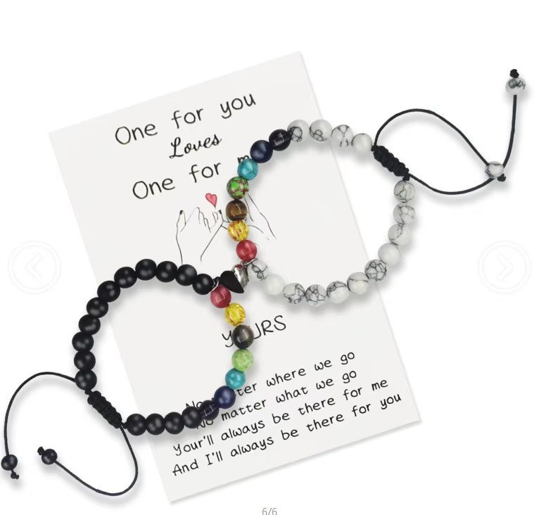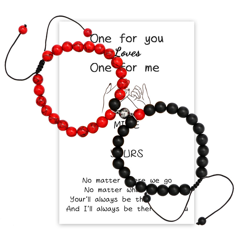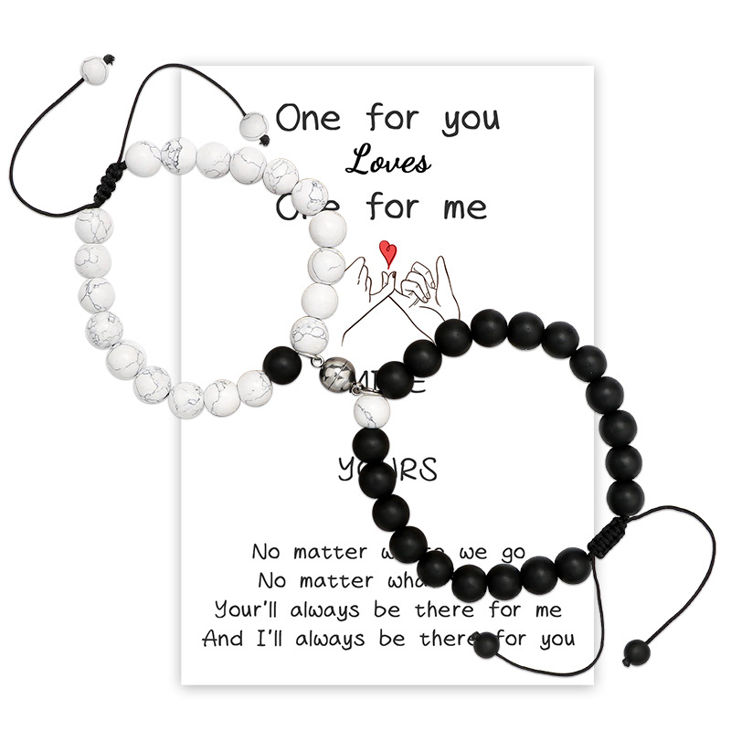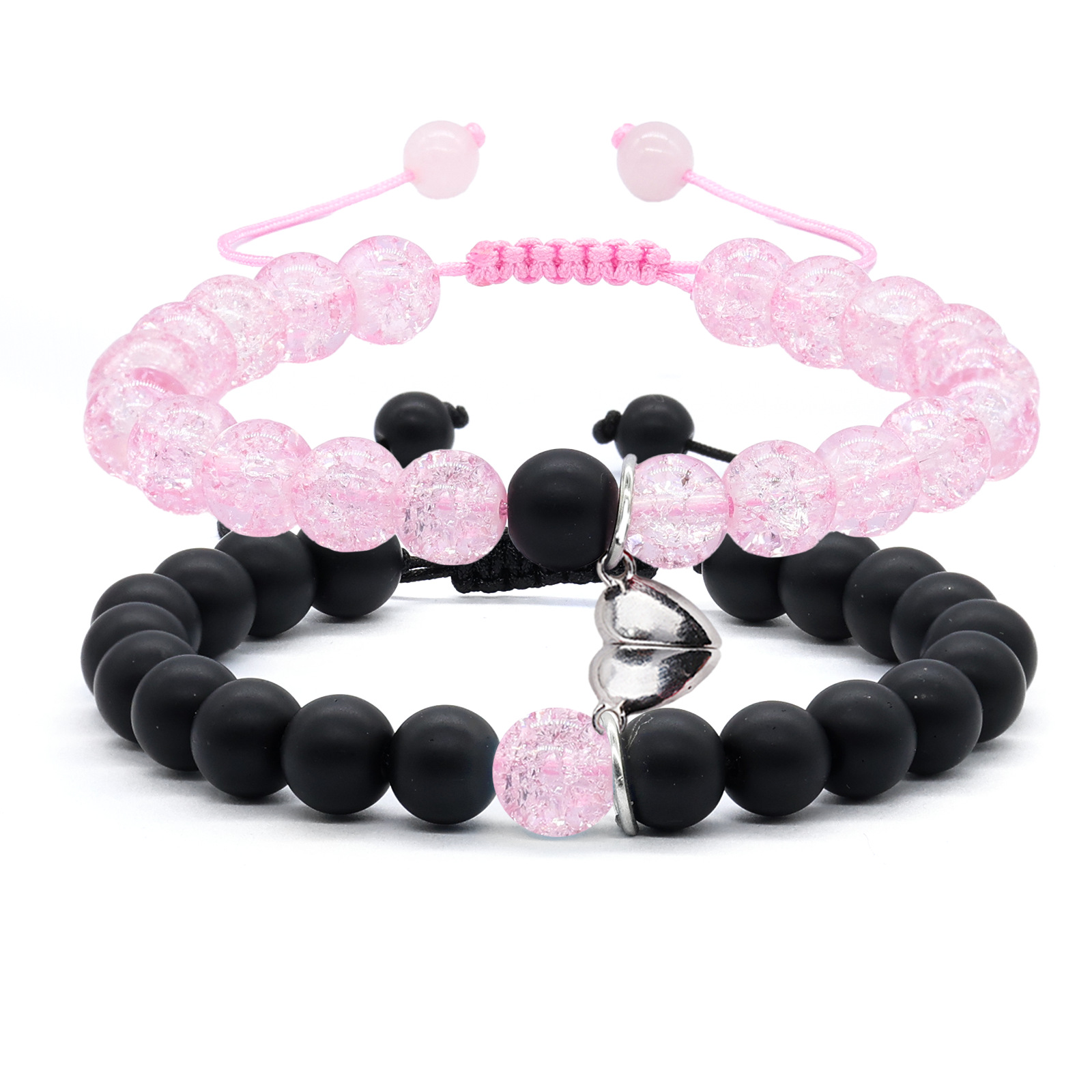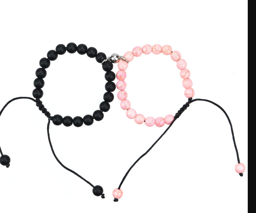 亚马逊新款情侣卡片手链粉晶火山石白松爱心磁铁粉晶情侣手链