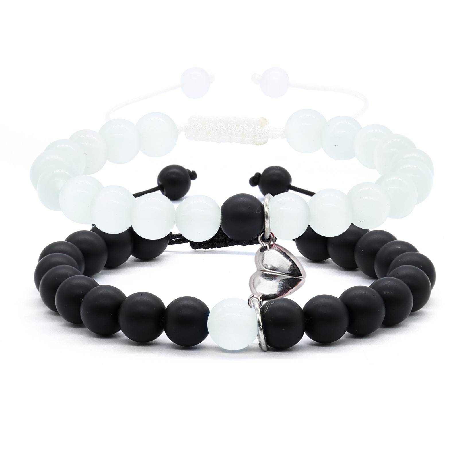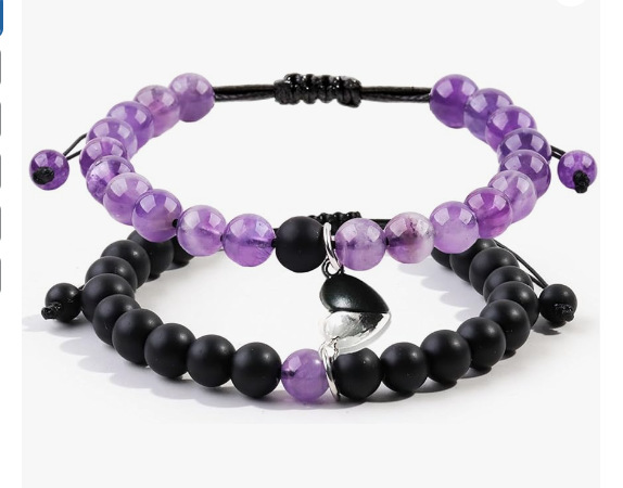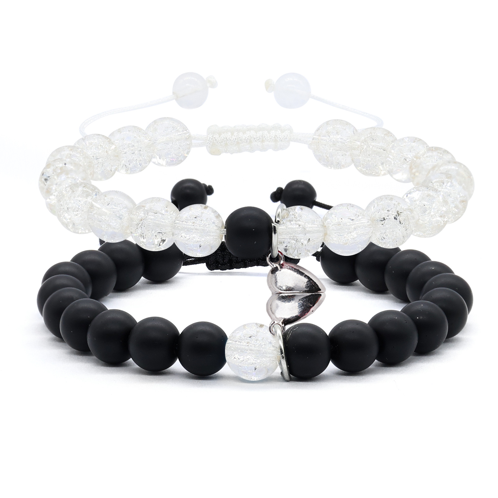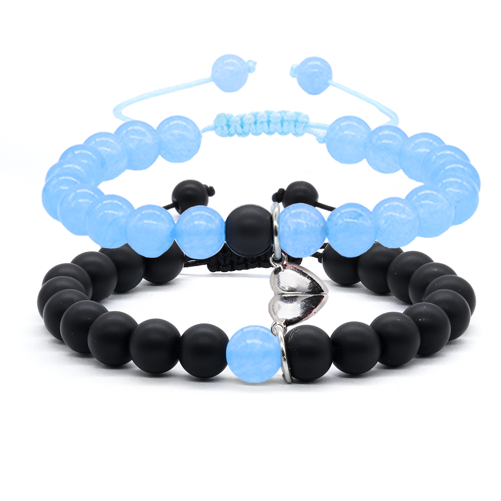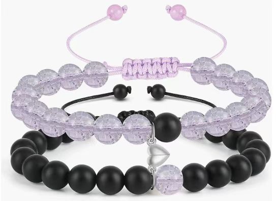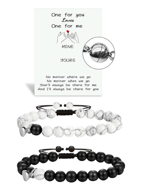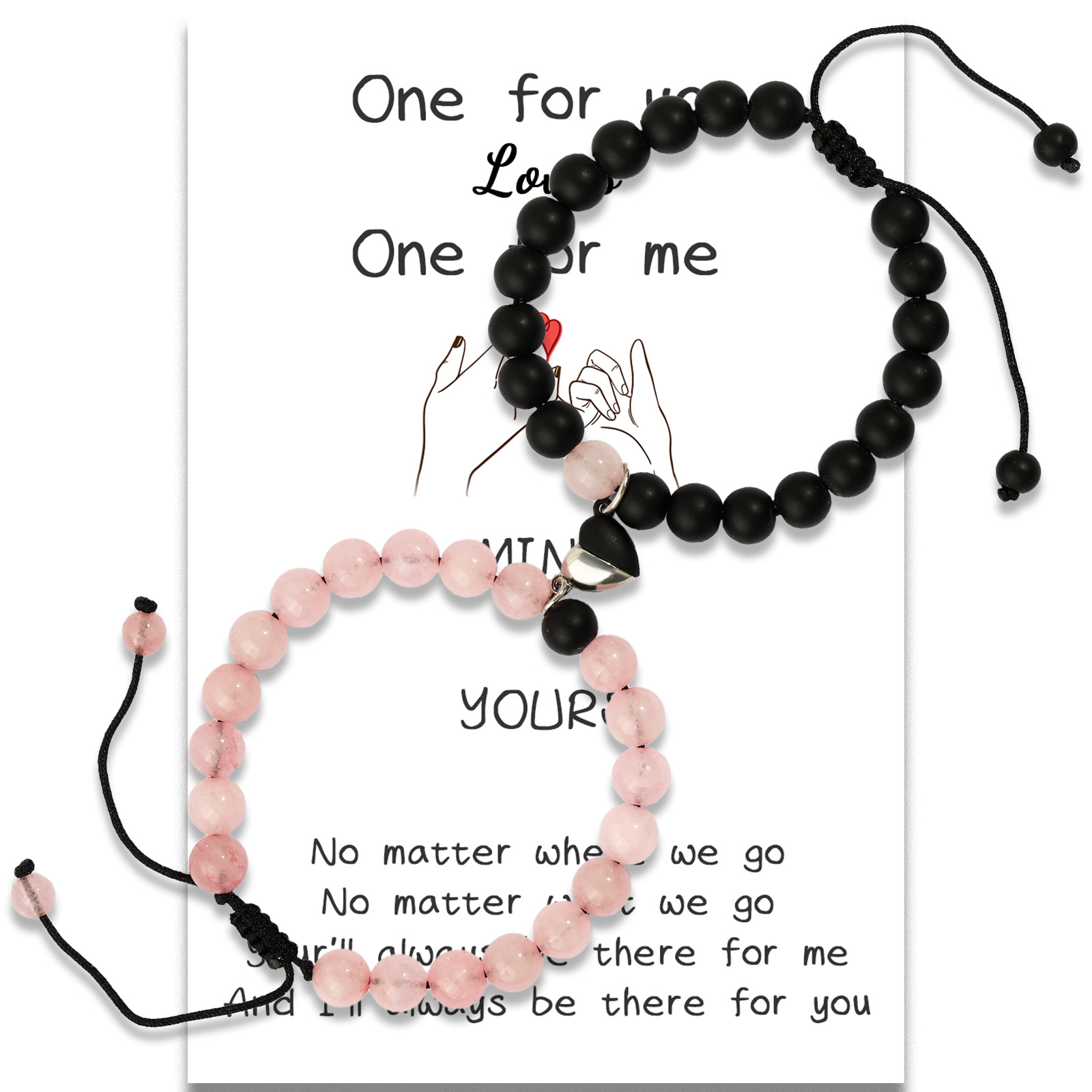 亚马逊新款情侣卡片手链粉晶火山石白松爱心磁铁粉晶情侣手链