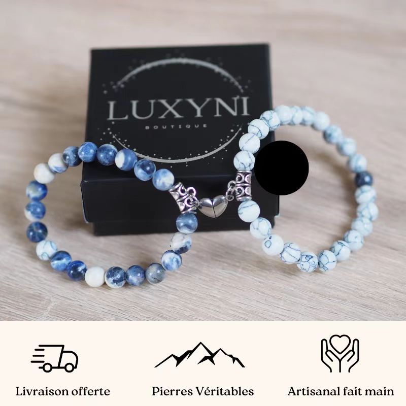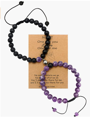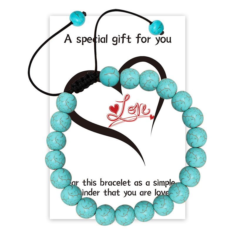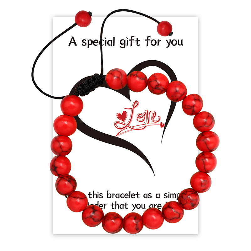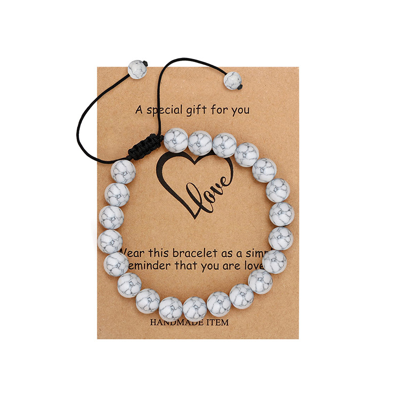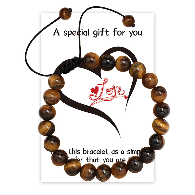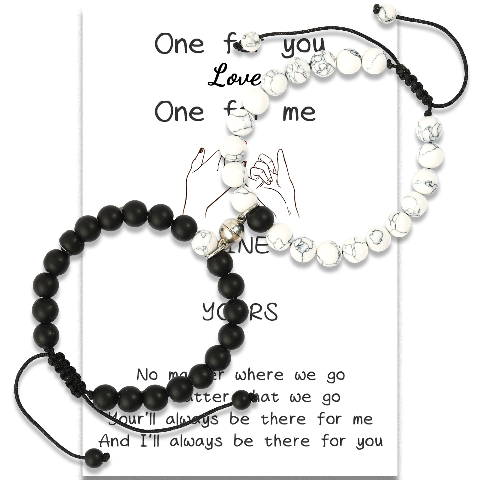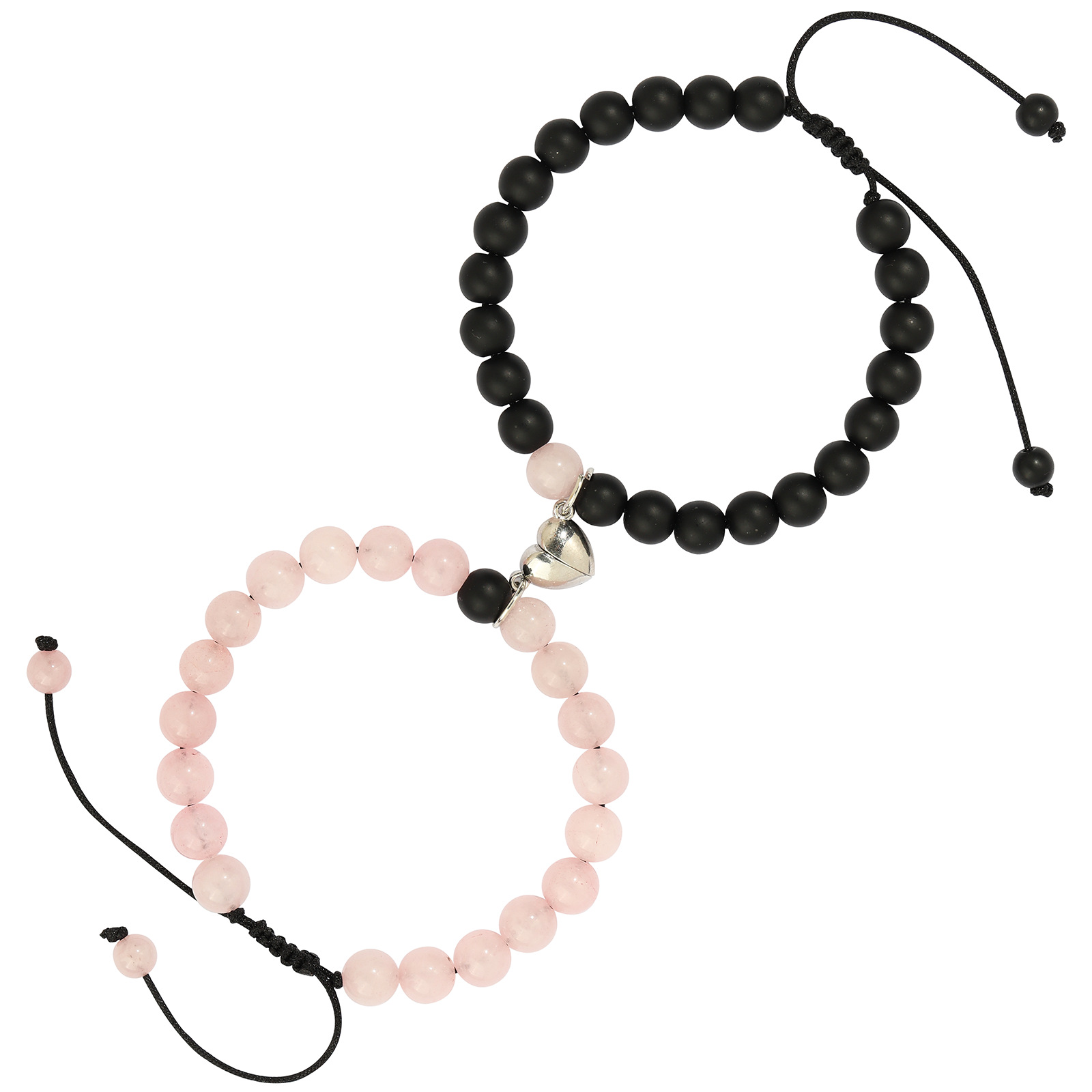 亚马逊新款情侣卡片手链粉晶火山石白松爱心磁铁粉晶情侣手链