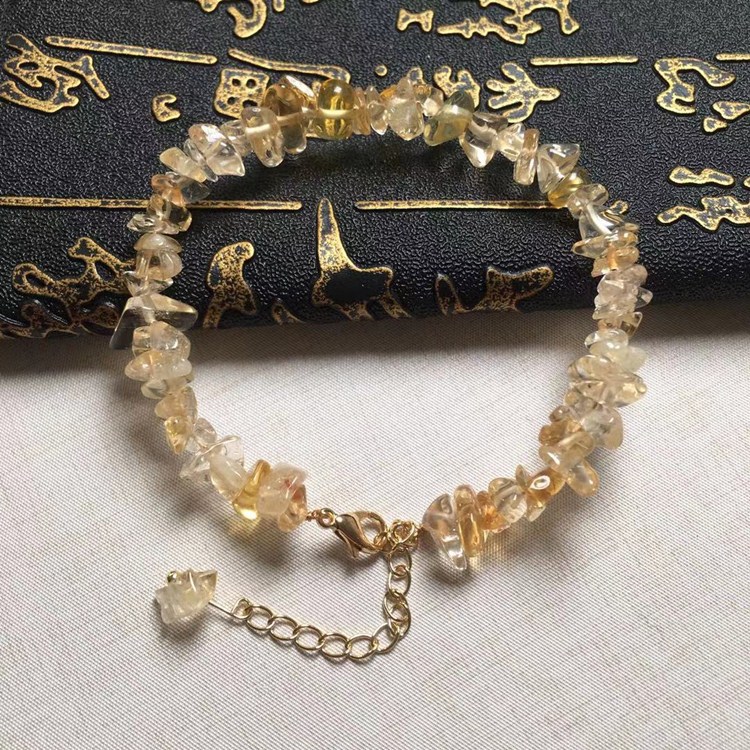 美萨水晶批发 黄水晶碎石手链 14K包金配饰 保色久