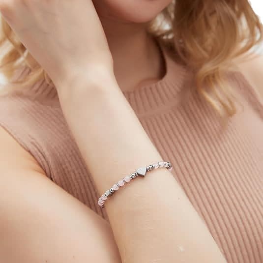 跨境新款 4mm粉晶紫帝皇松蓝松青金串珠爱心手串 不锈钢手链