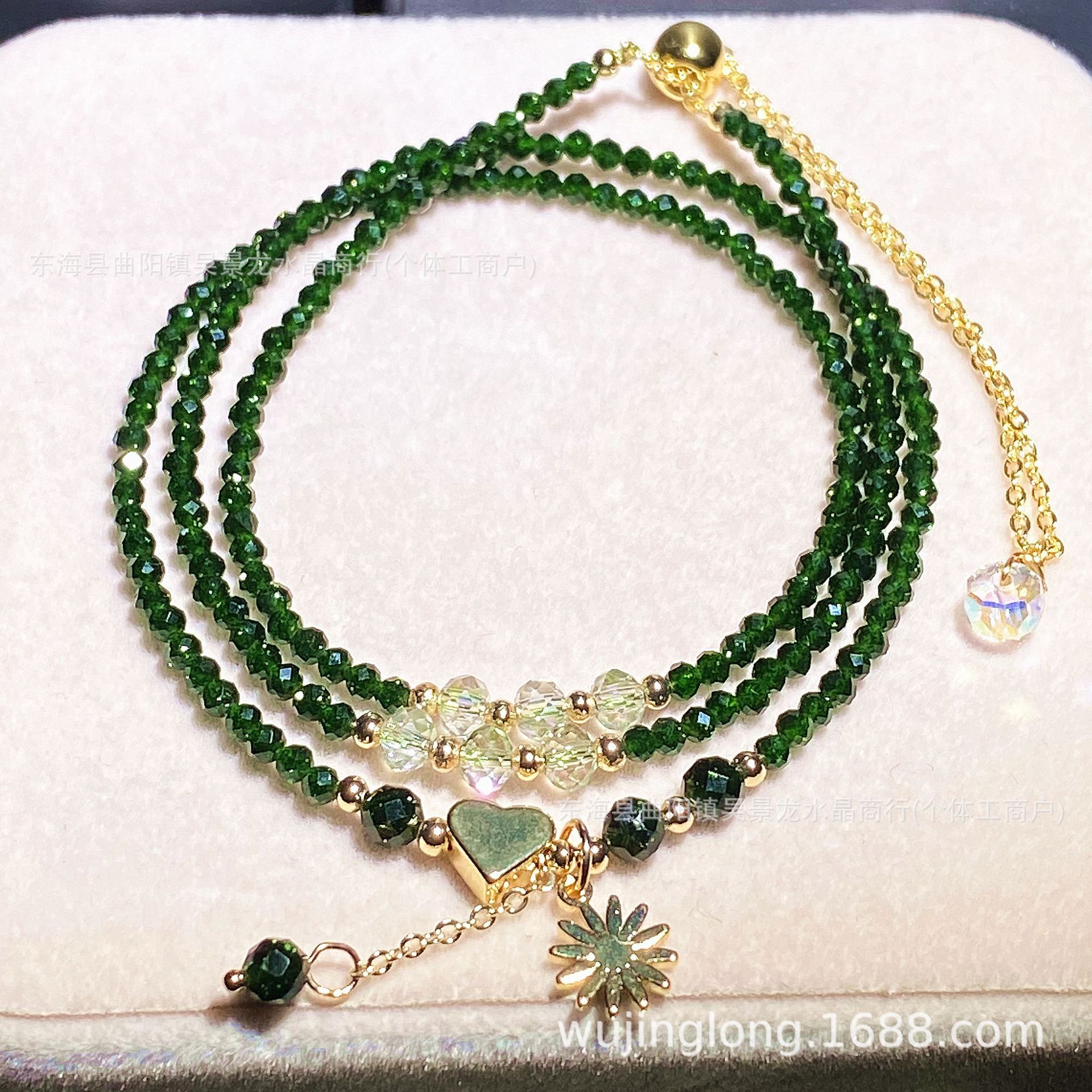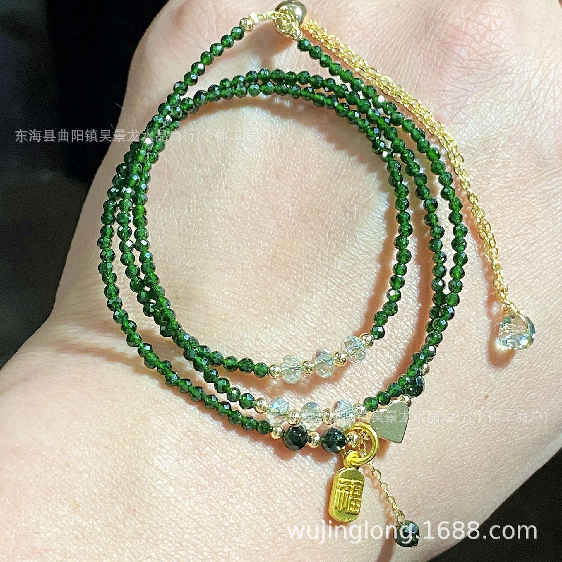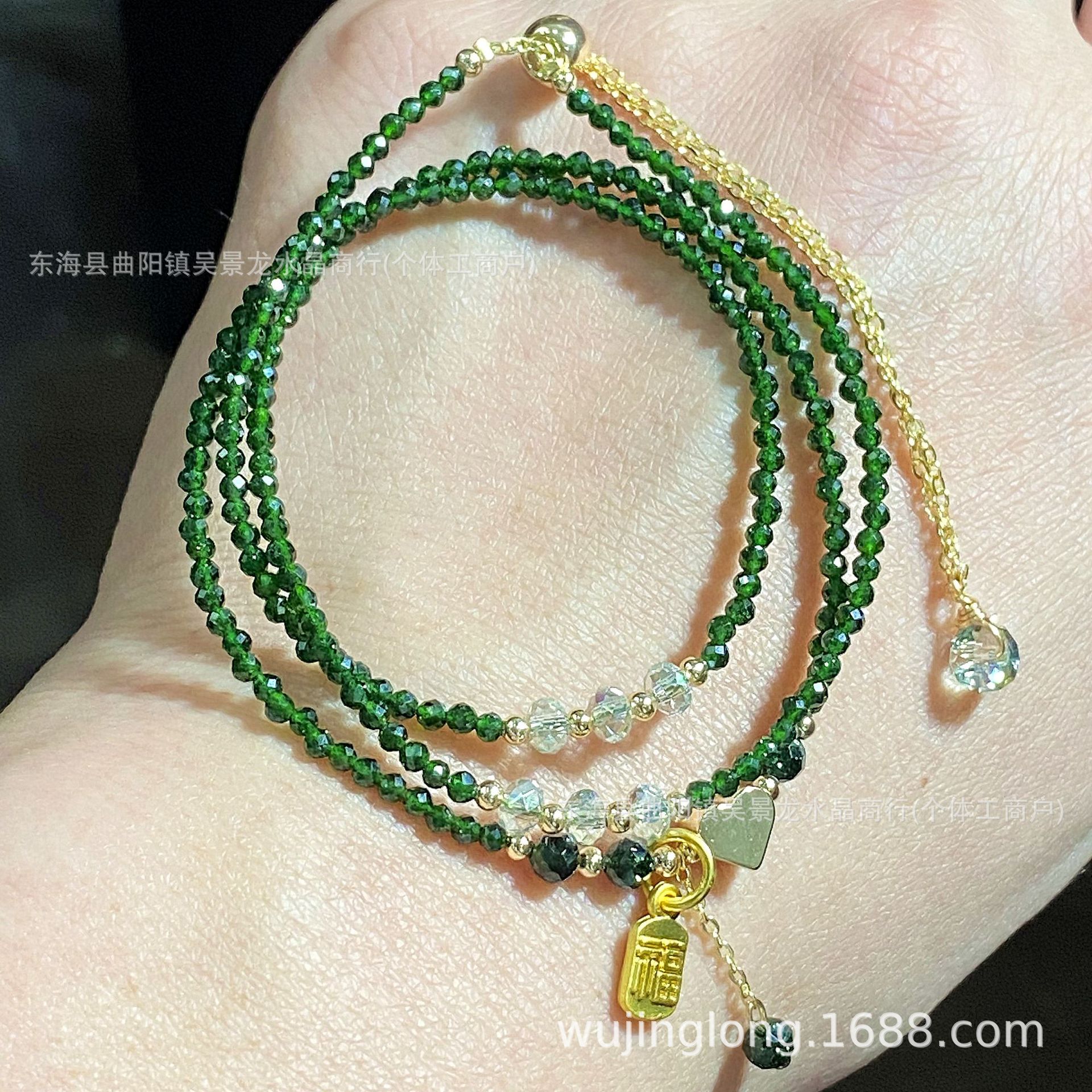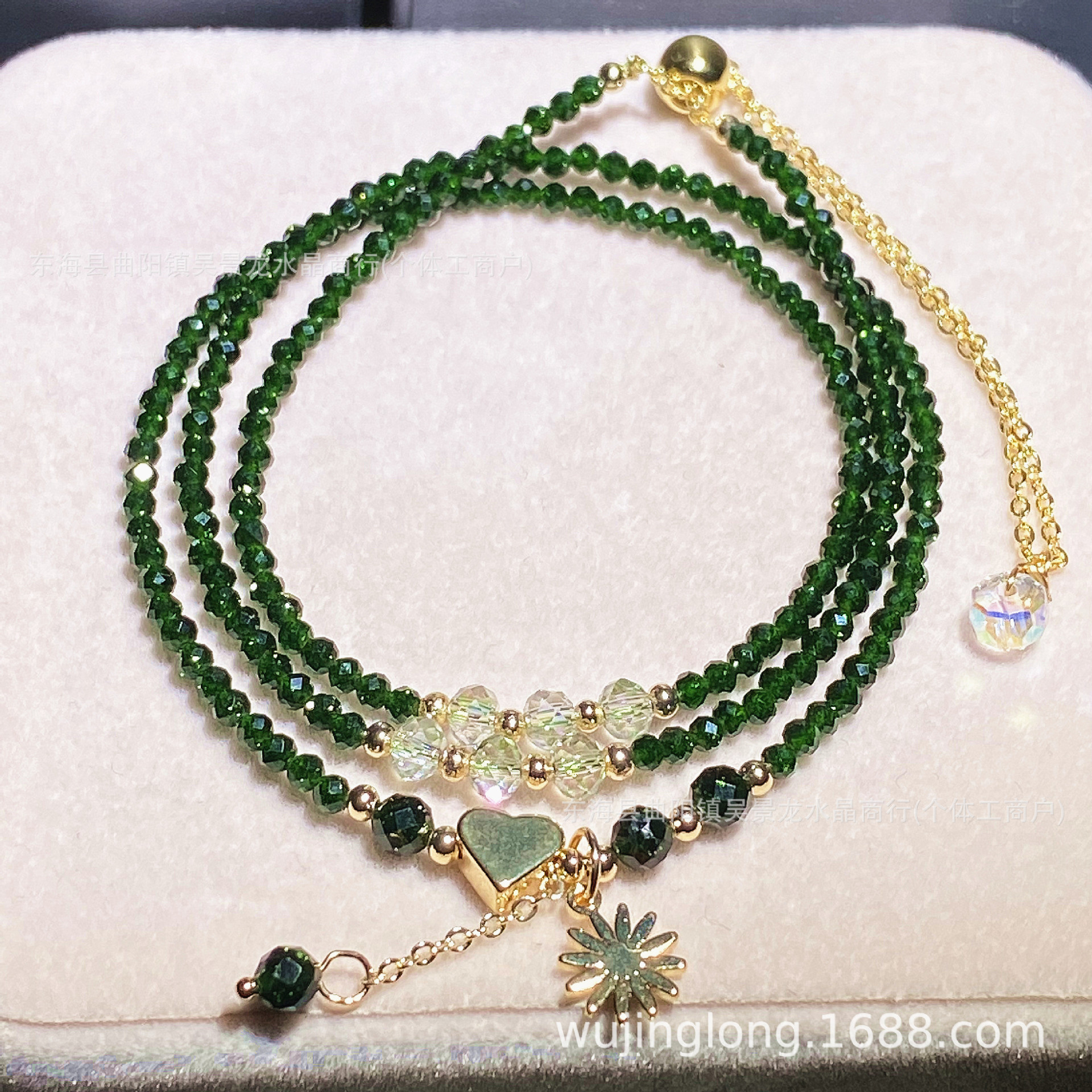 批发 绿尖金 金砂石 蓝绿色金砂石紫水晶发晶切面三圈 手串手链