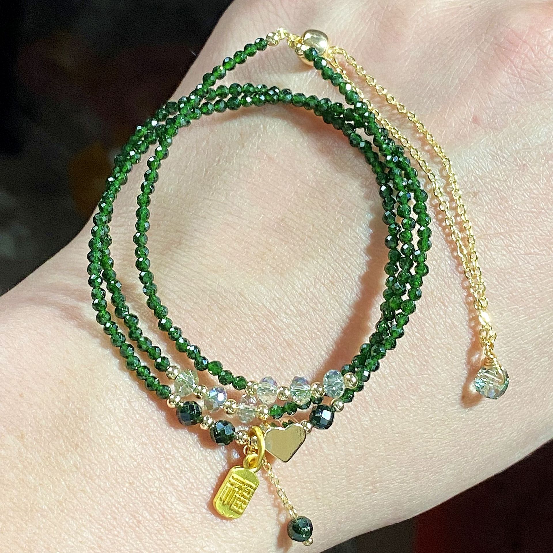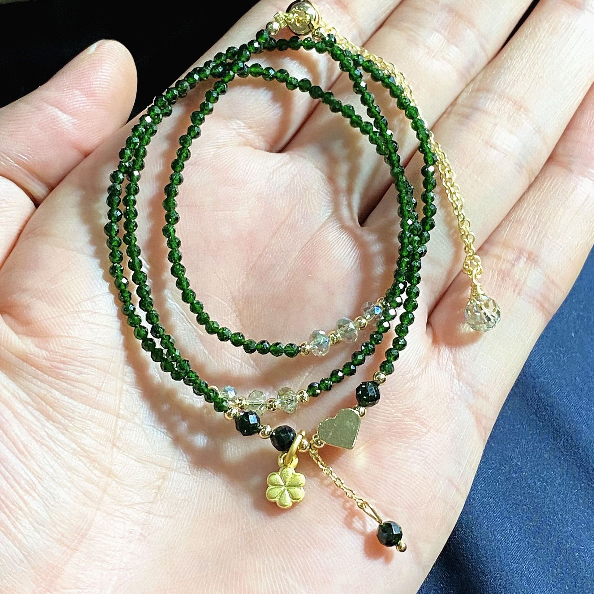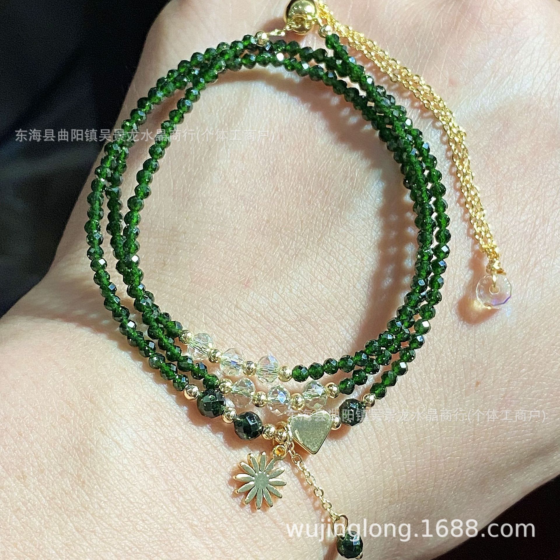 批发 绿尖金 金砂石 蓝绿色金砂石紫水晶发晶切面三圈 手串手链