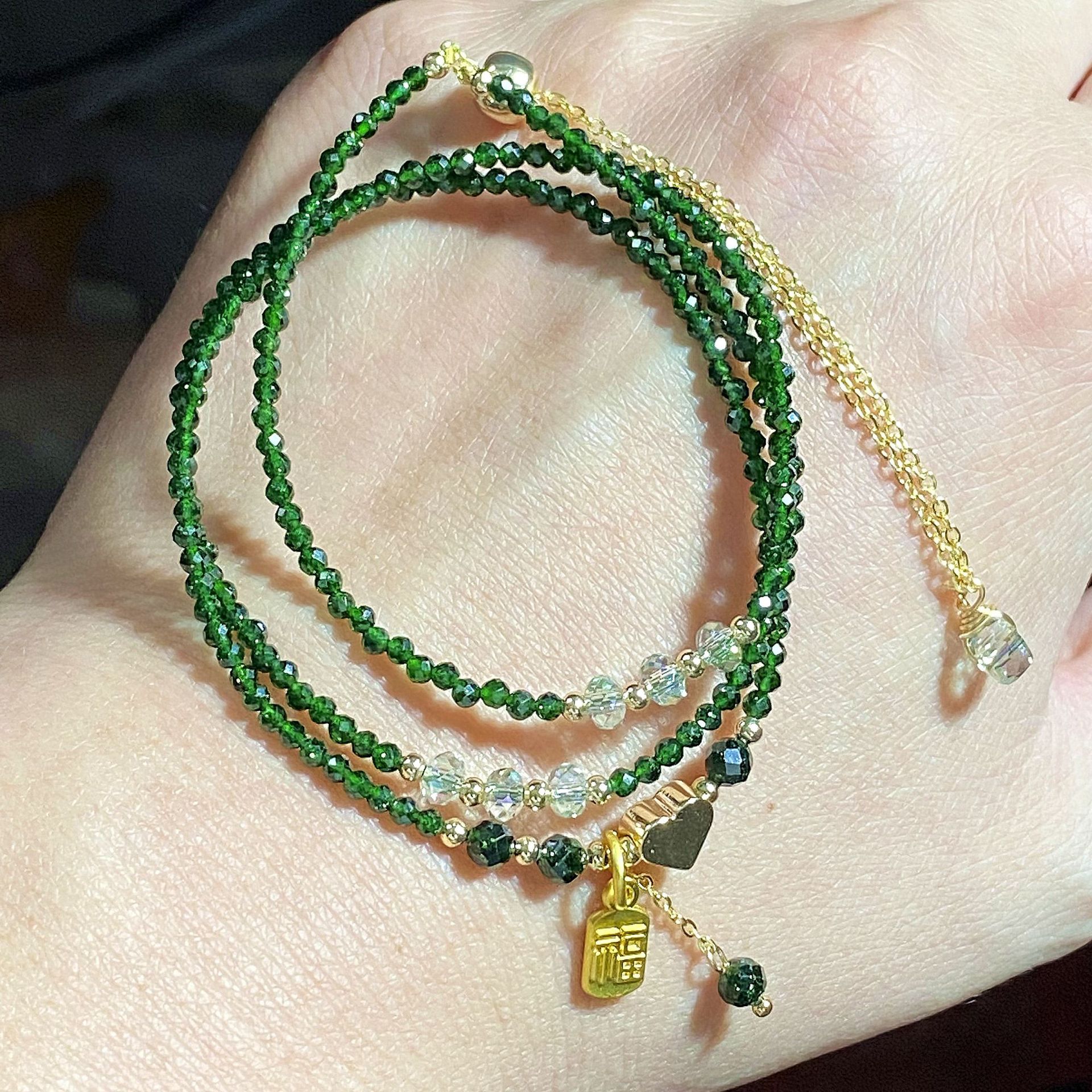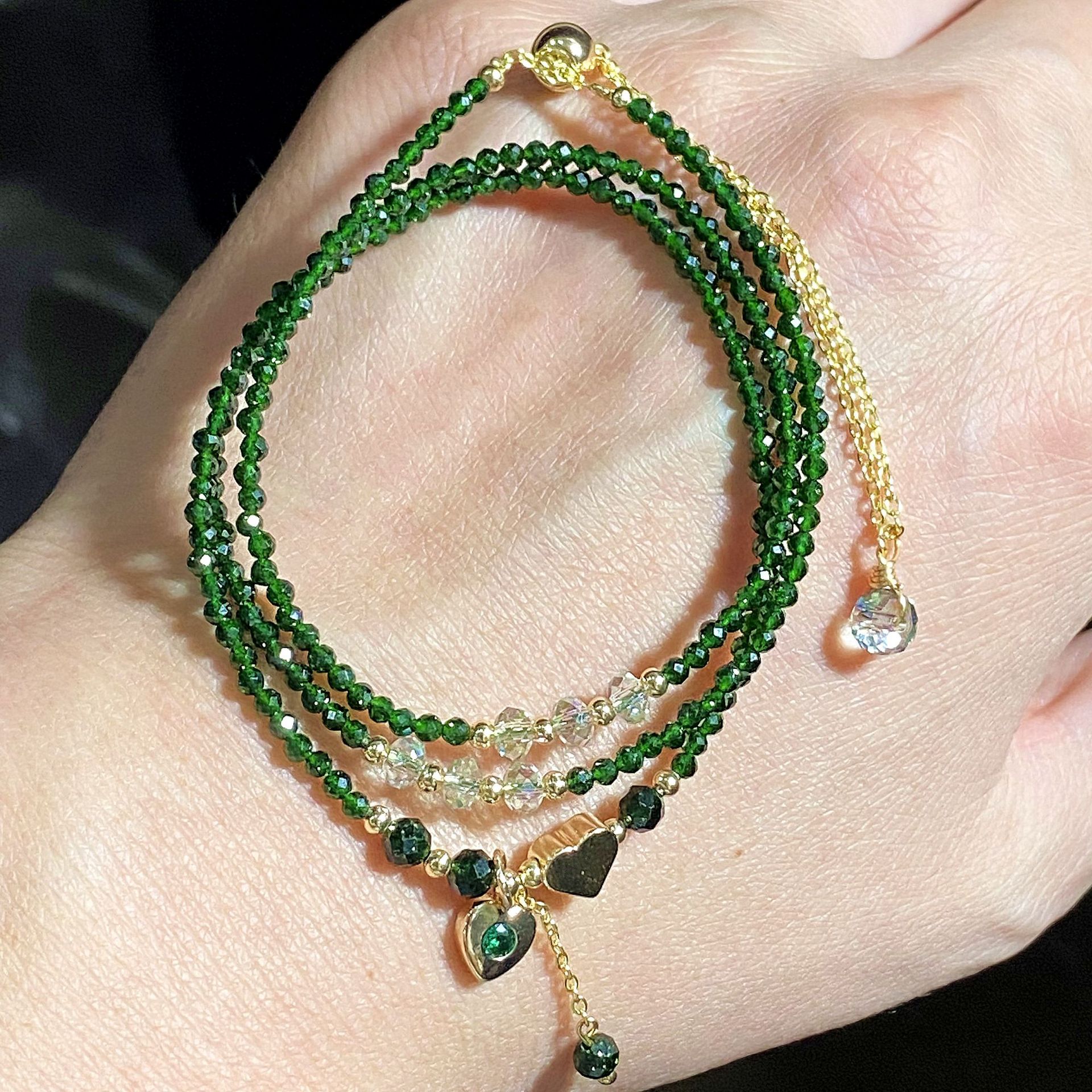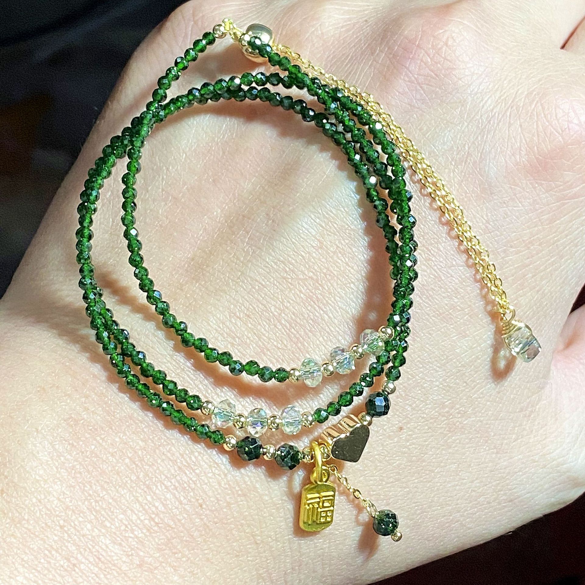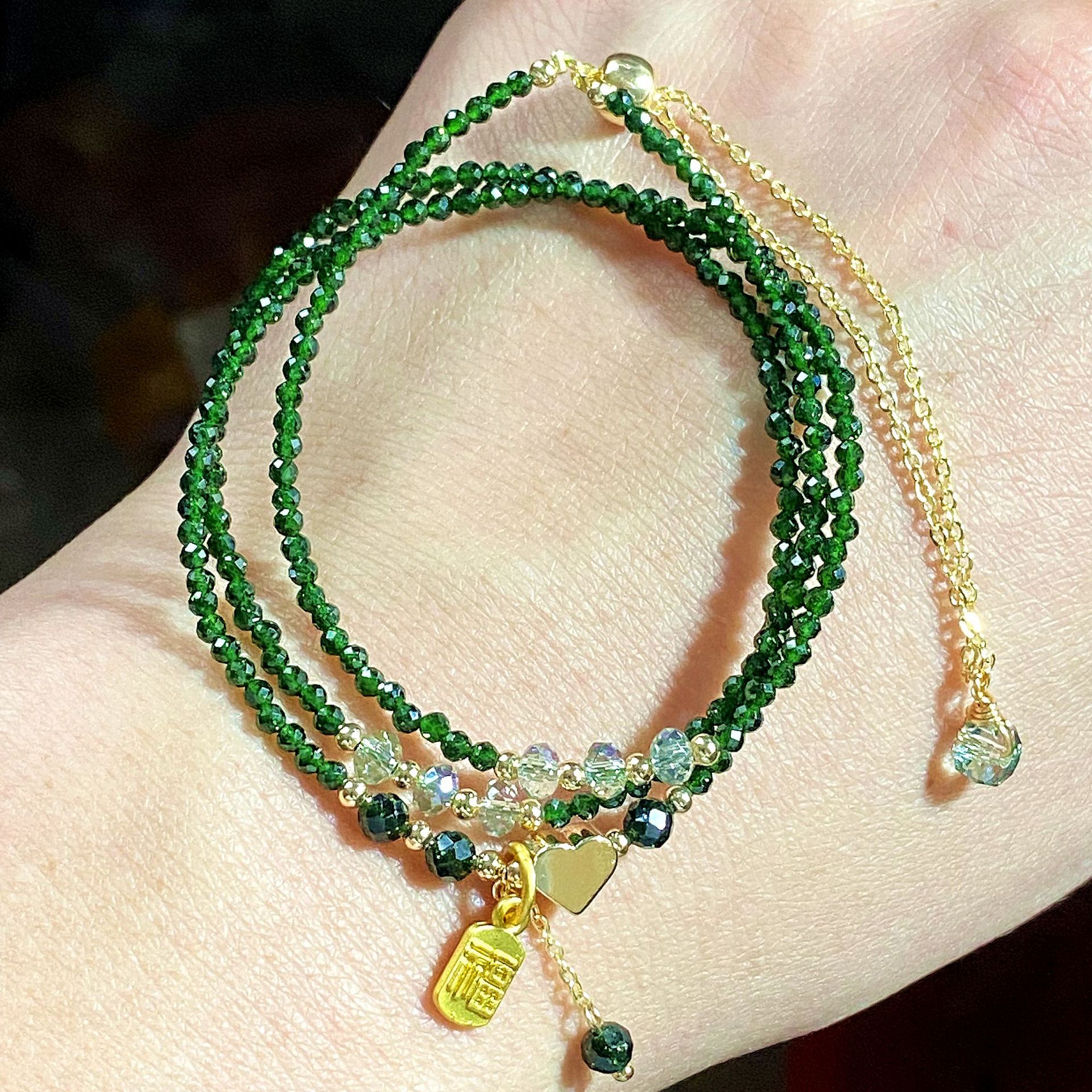 批发 绿尖金 金砂石 蓝绿色金砂石紫水晶发晶切面三圈 手串手链