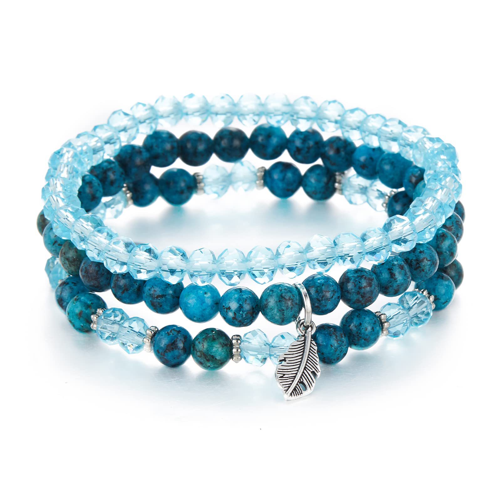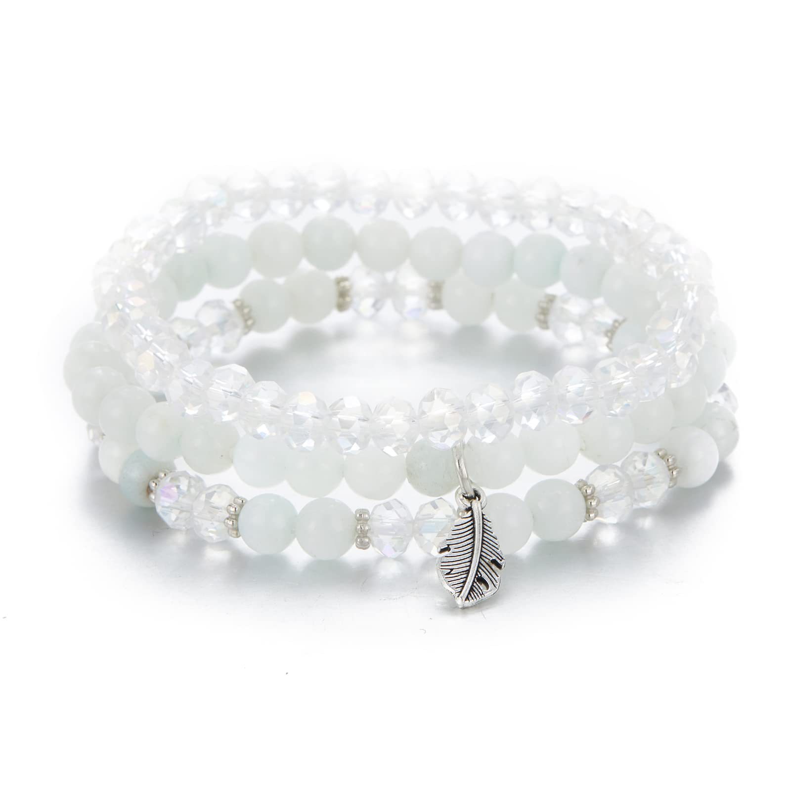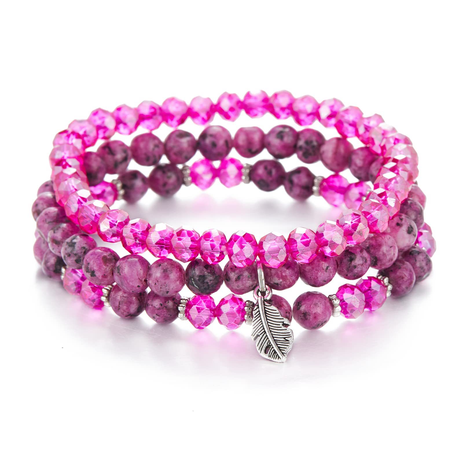 水晶手链套装三件套切角羽毛吊坠紫晶粉晶水晶黑曜石羽毛吊坠手链