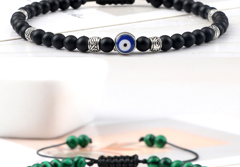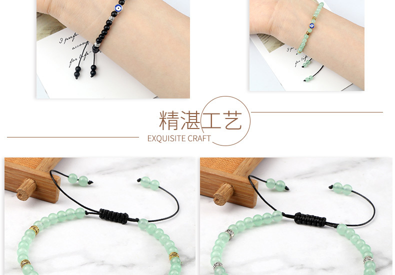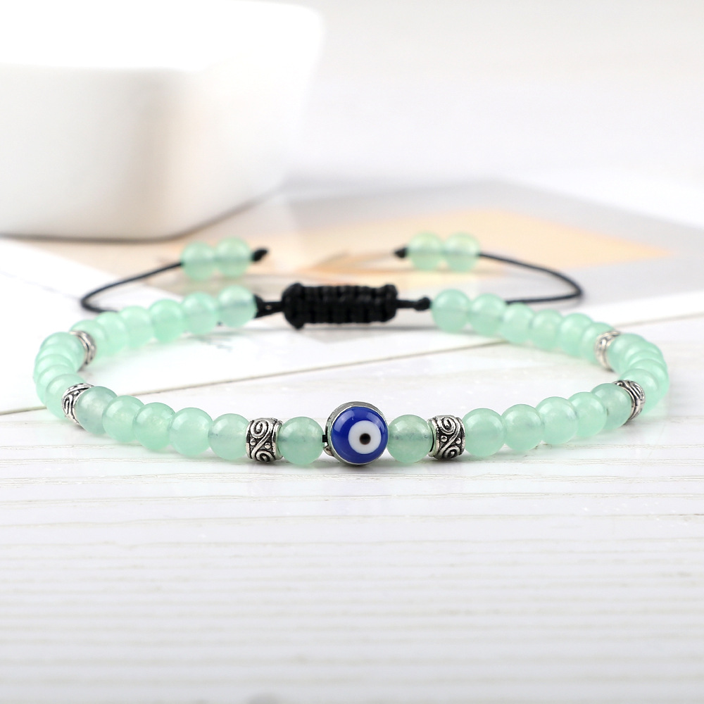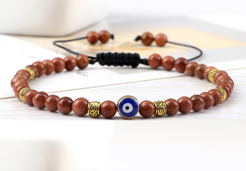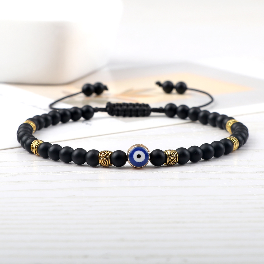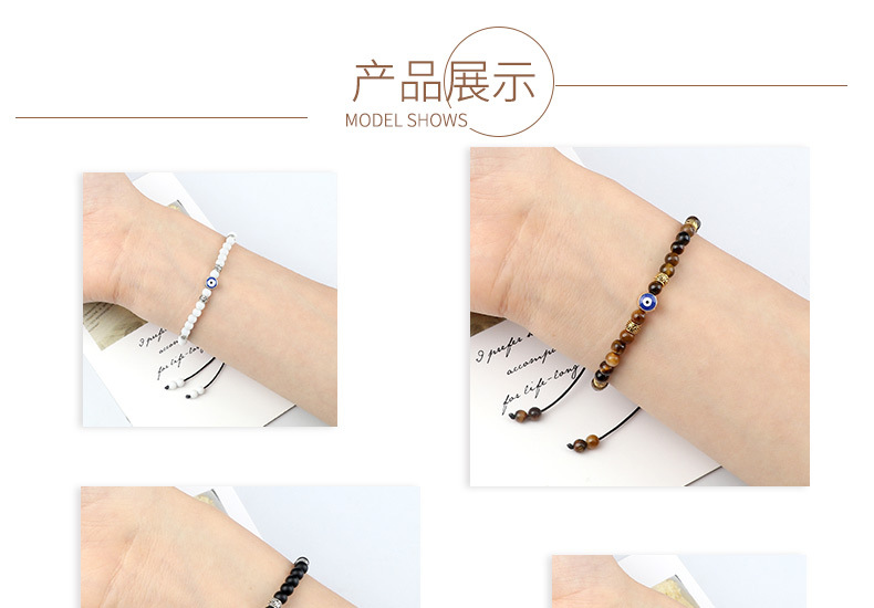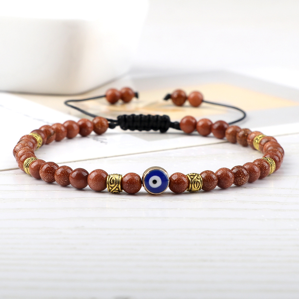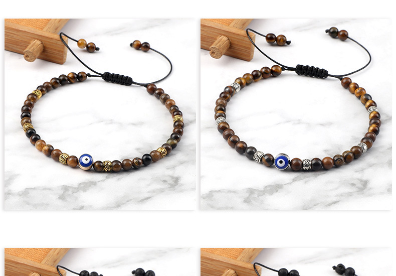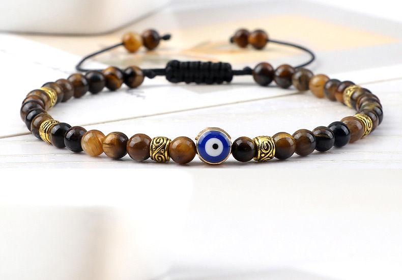 外贸饰品4mm手工编织手链合金眼睛虎眼石串珠可调节情侣手串配饰