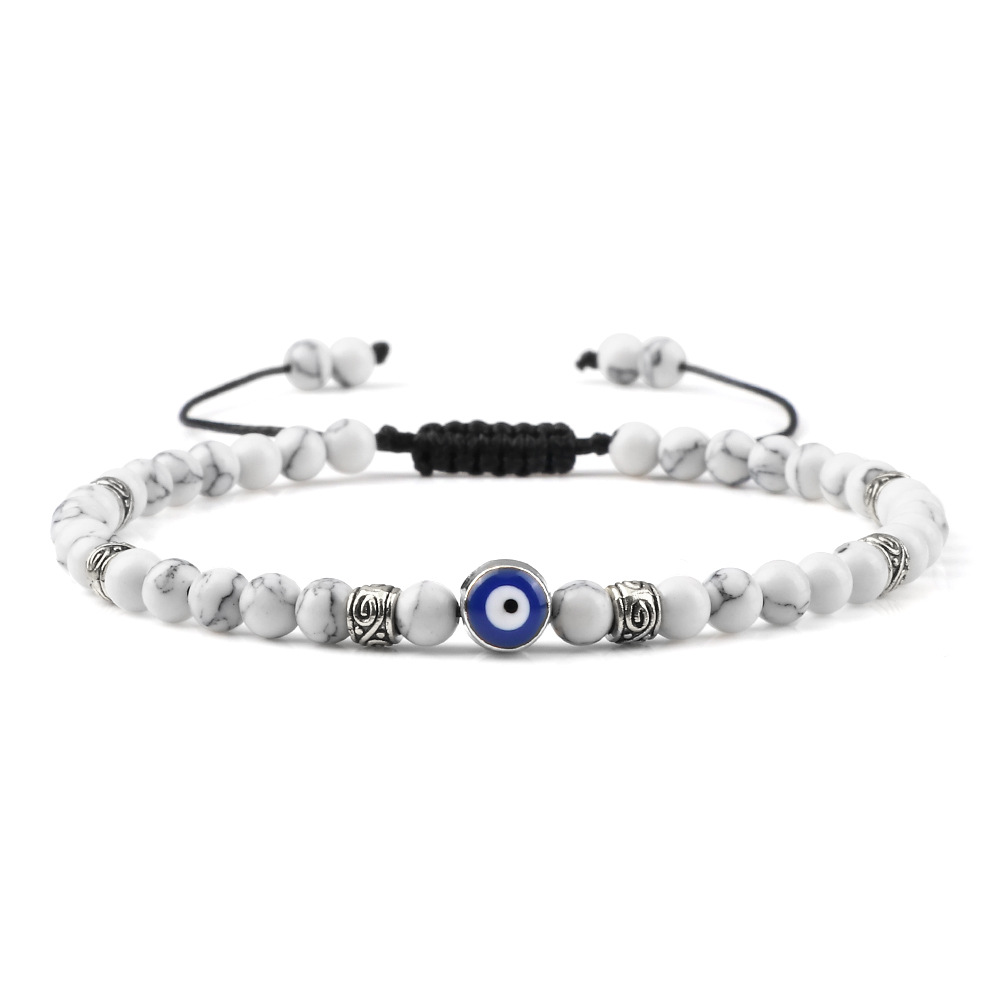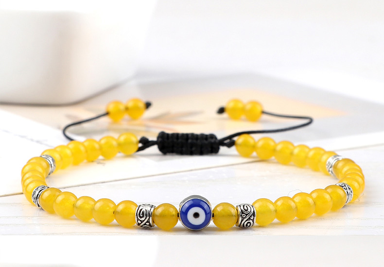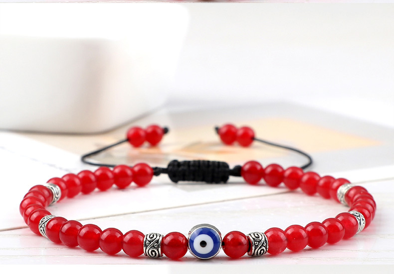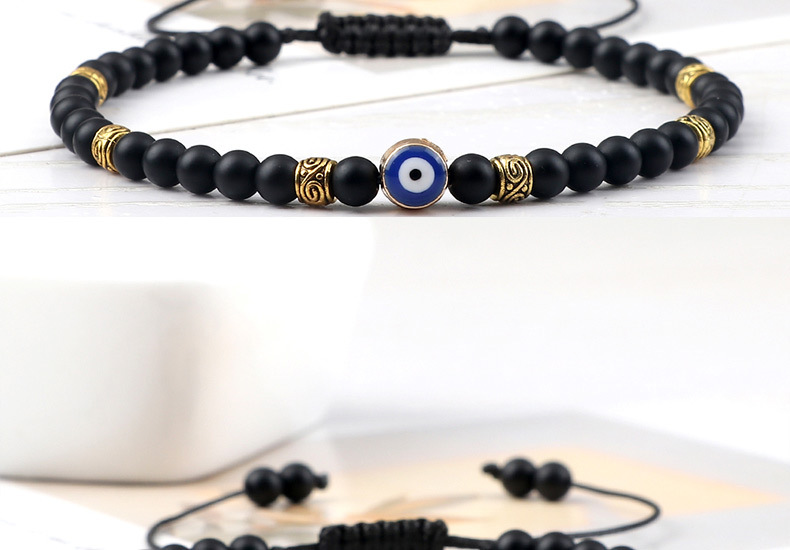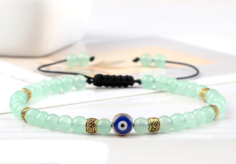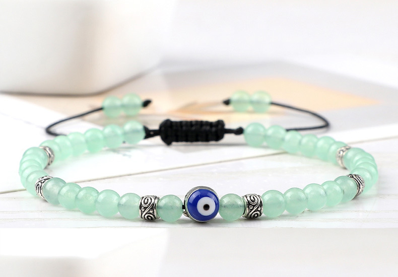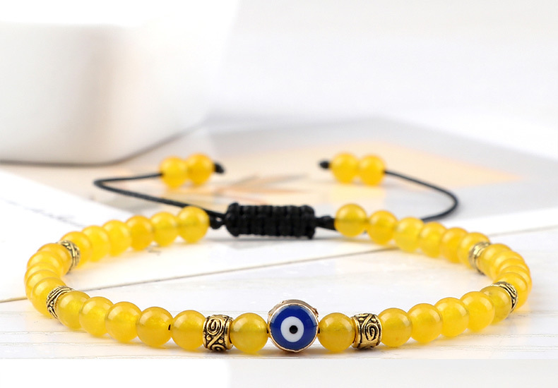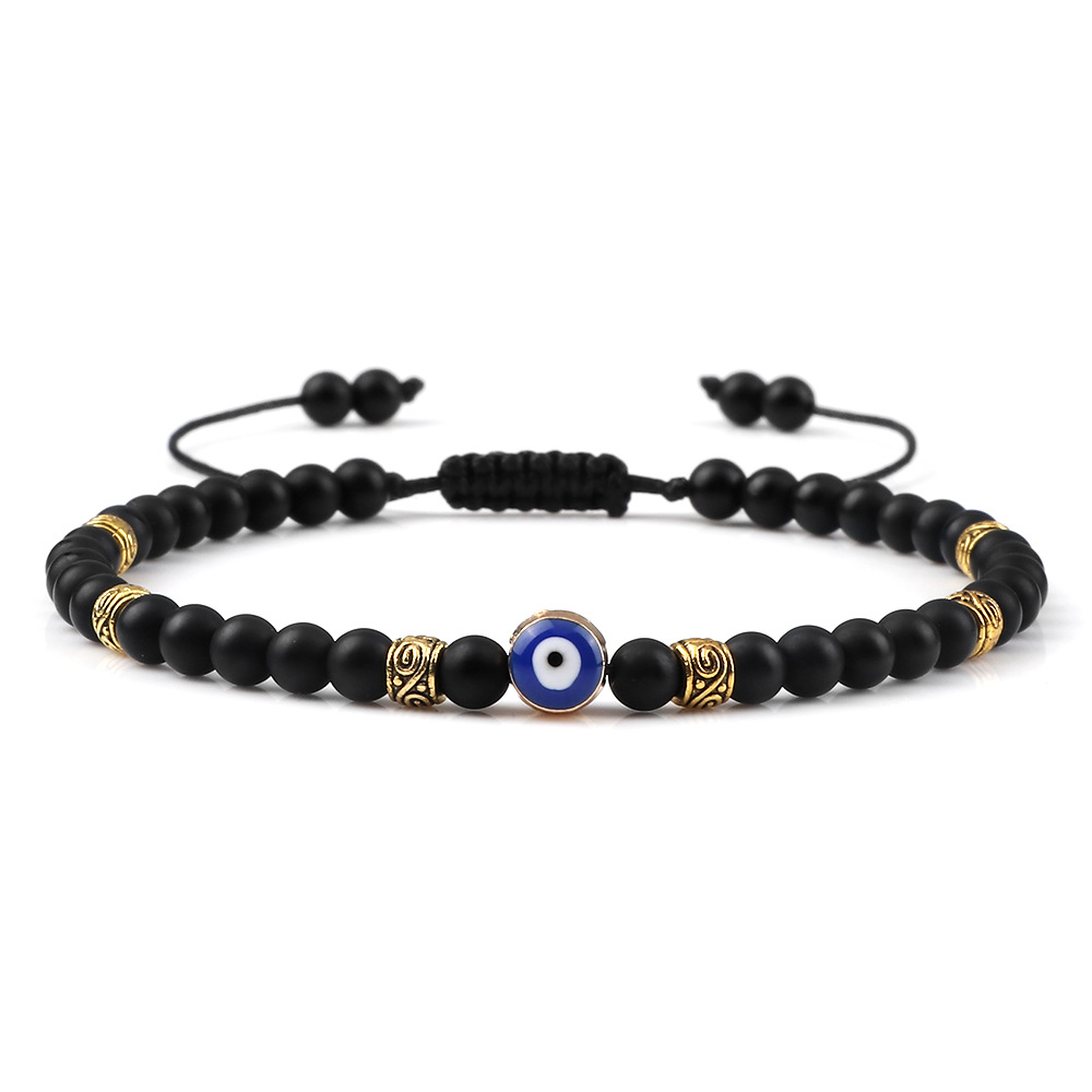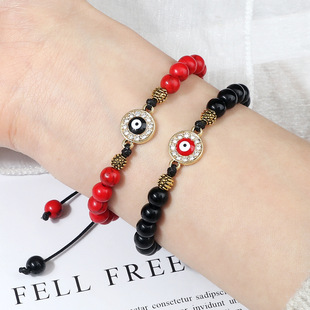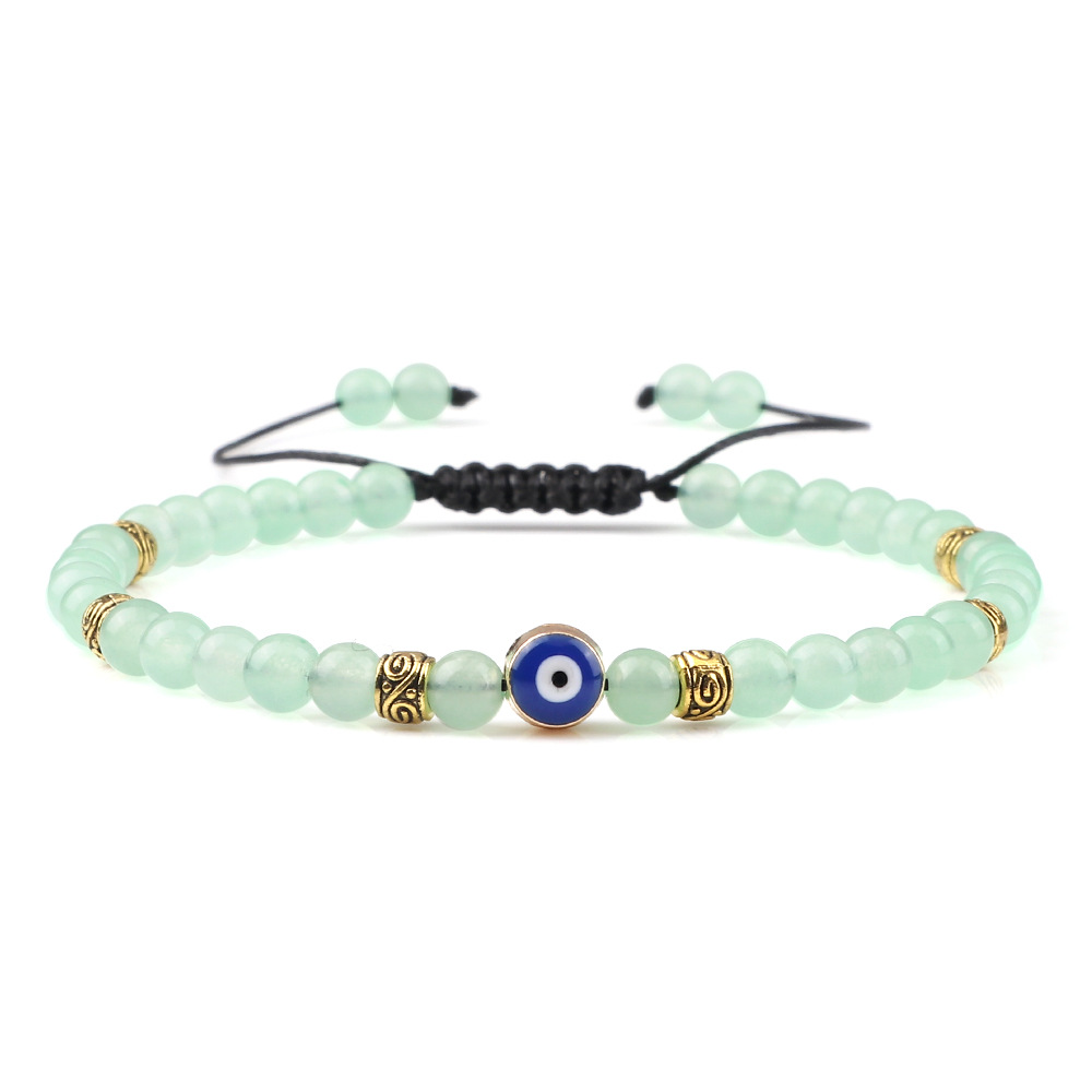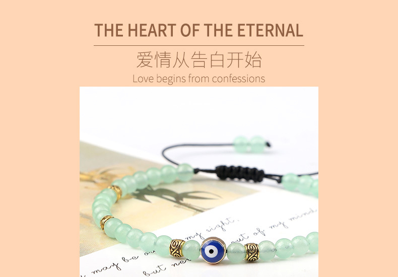 外贸饰品4mm手工编织手链合金眼睛虎眼石串珠可调节情侣手串配饰
