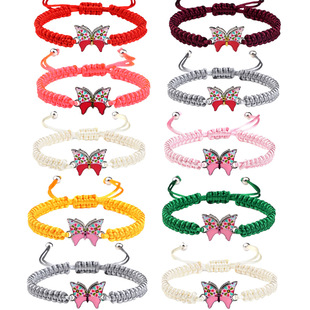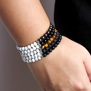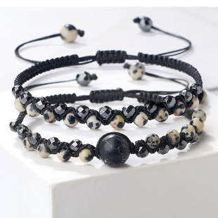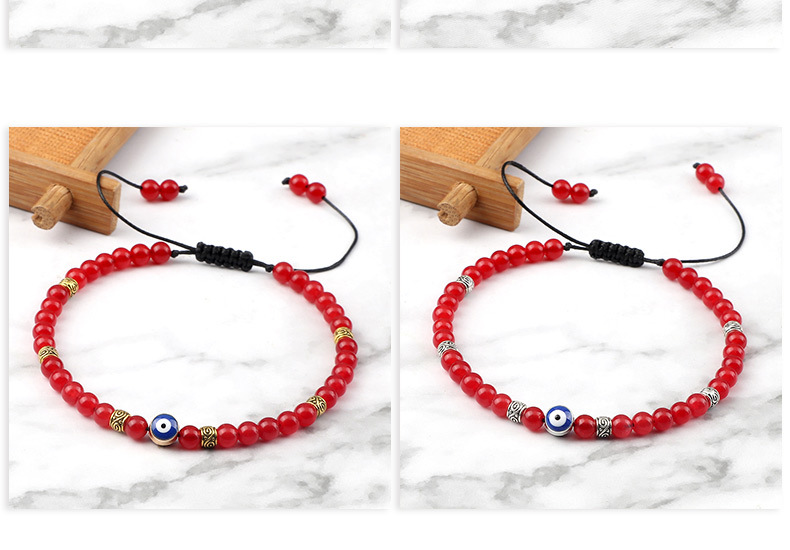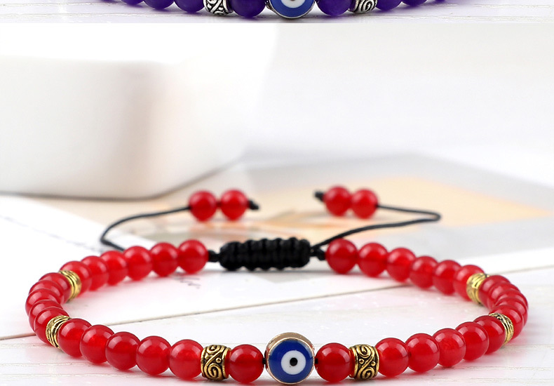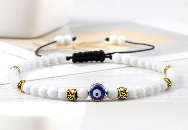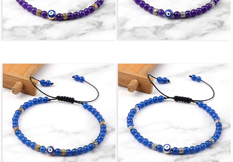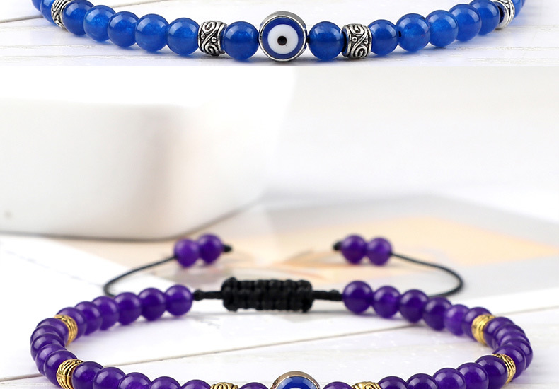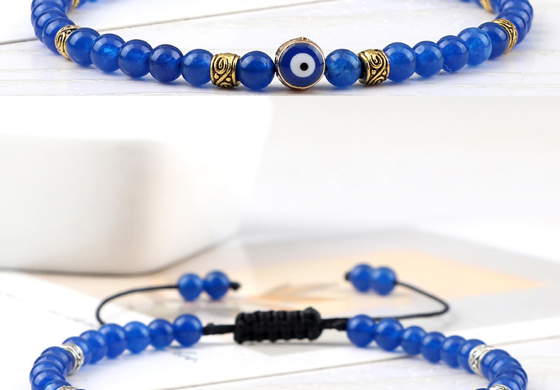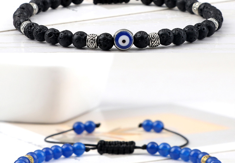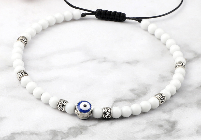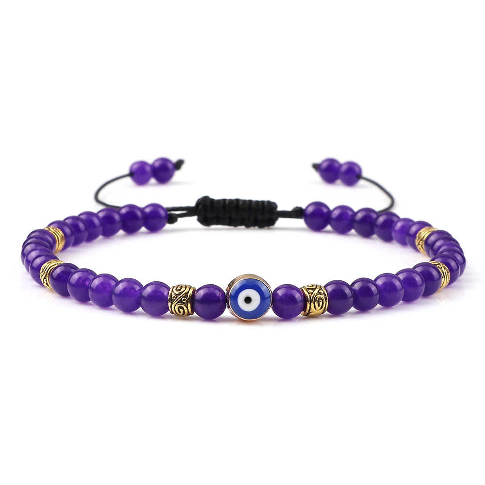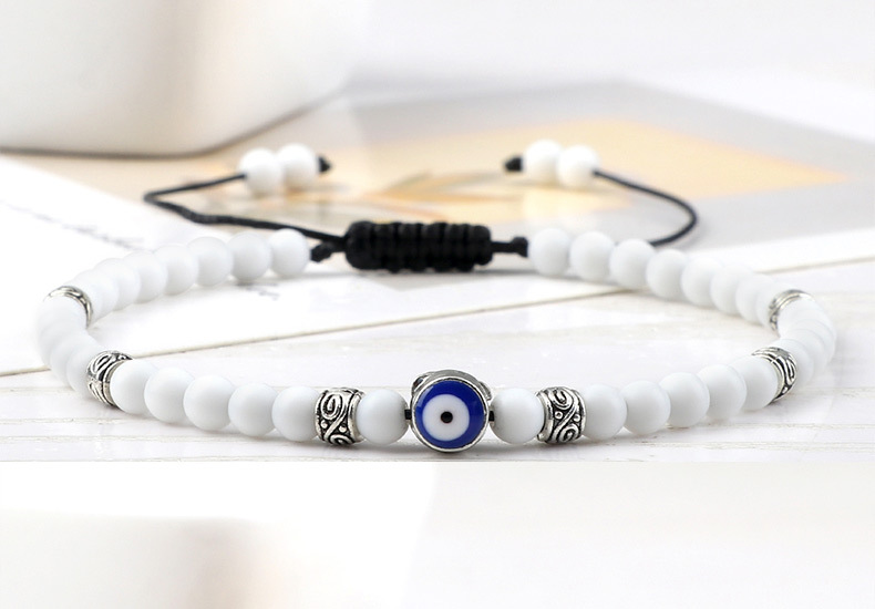 外贸饰品4mm手工编织手链合金眼睛虎眼石串珠可调节情侣手串配饰