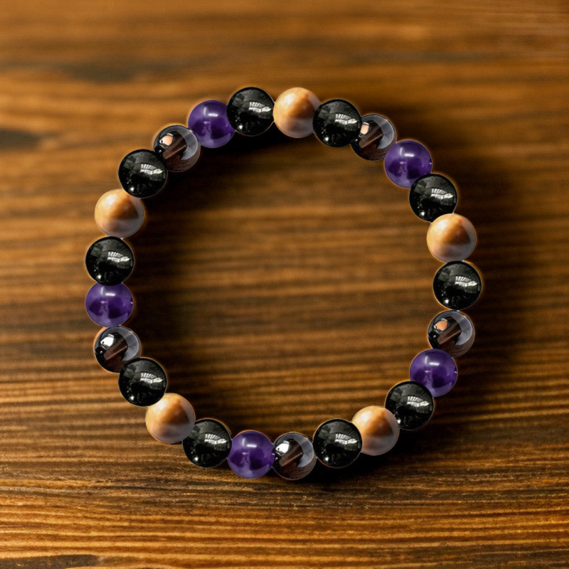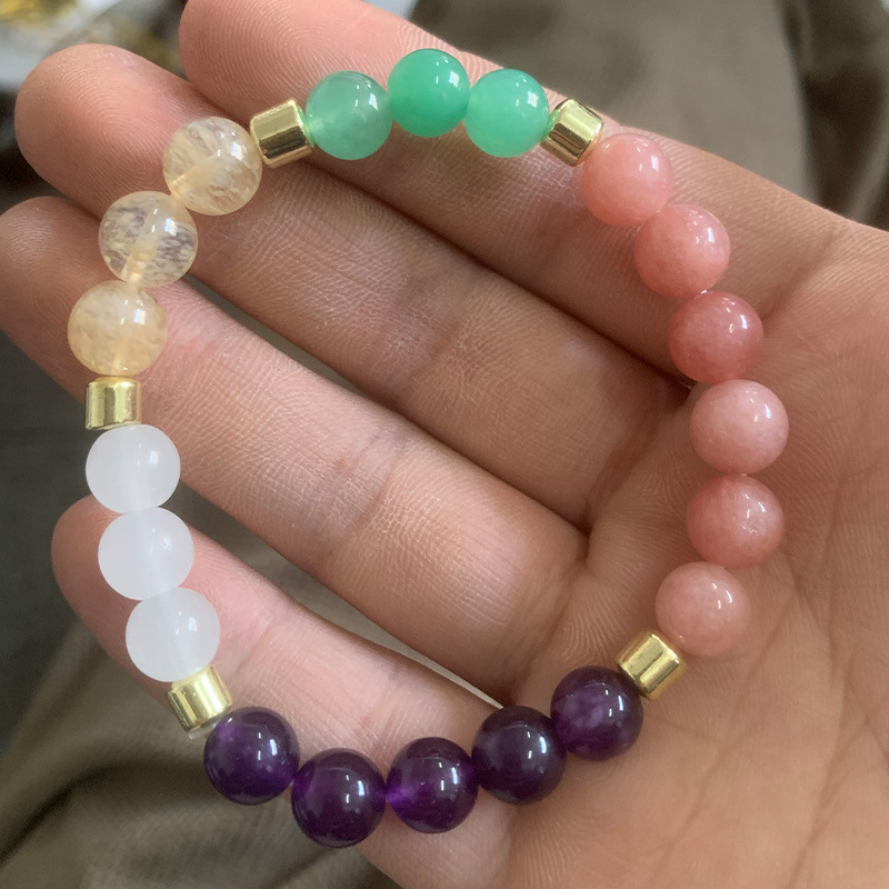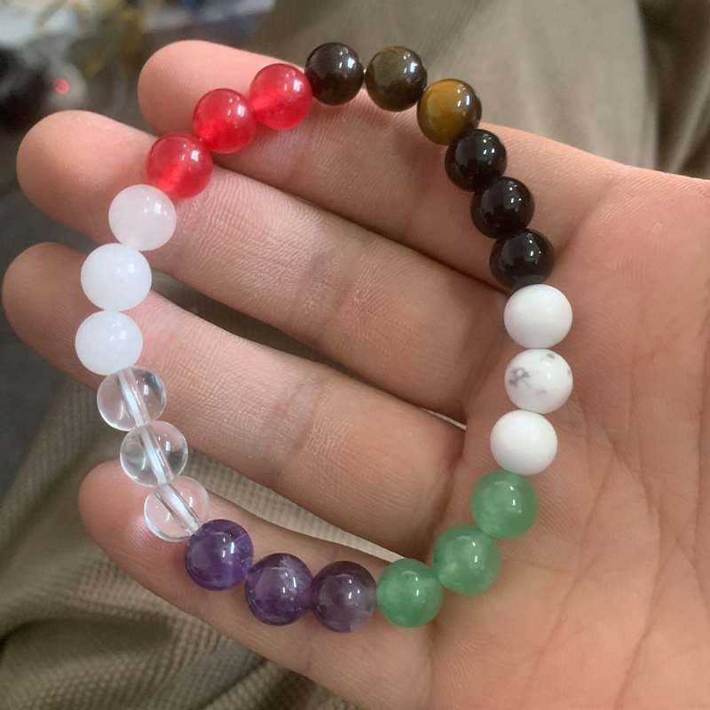 temu爆款欧美流行虎眼闪光石玛瑙串珠手链女粉晶瑜伽万圣节手串