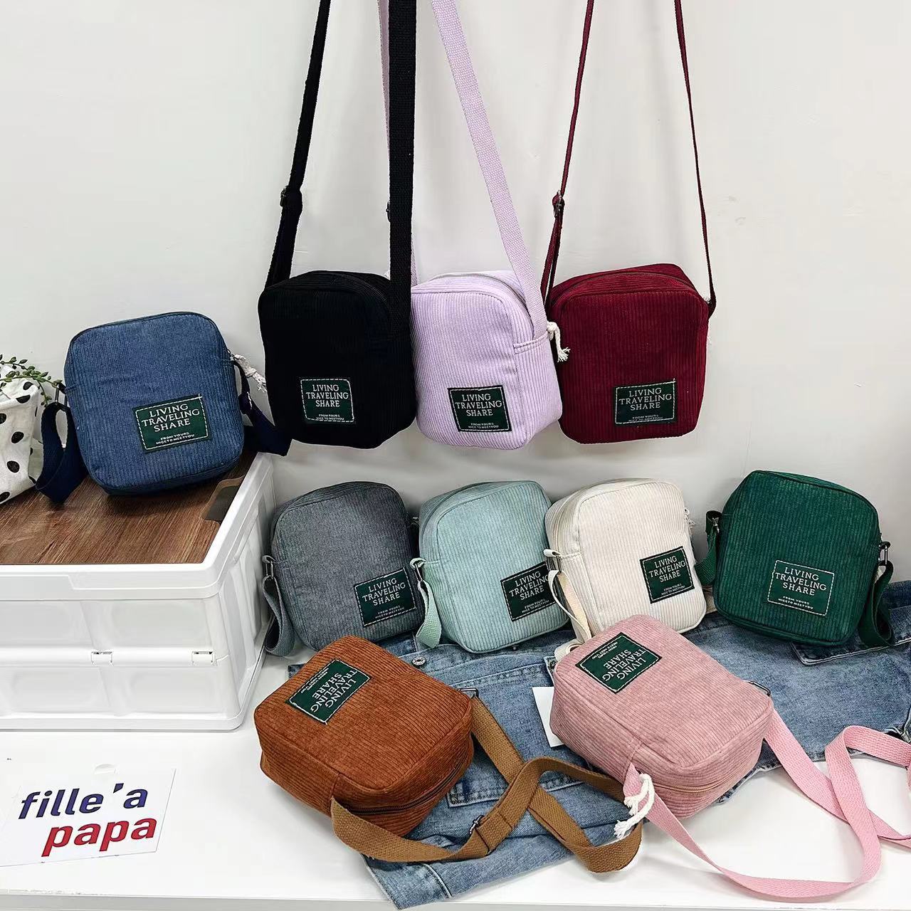 批发灯芯绒复古百搭女士包迷你灯芯绒布包条绒复古单肩斜跨包跨境
