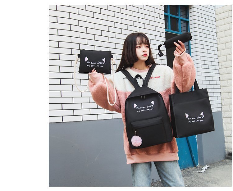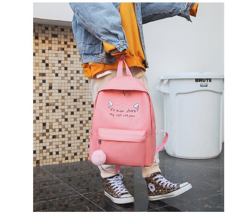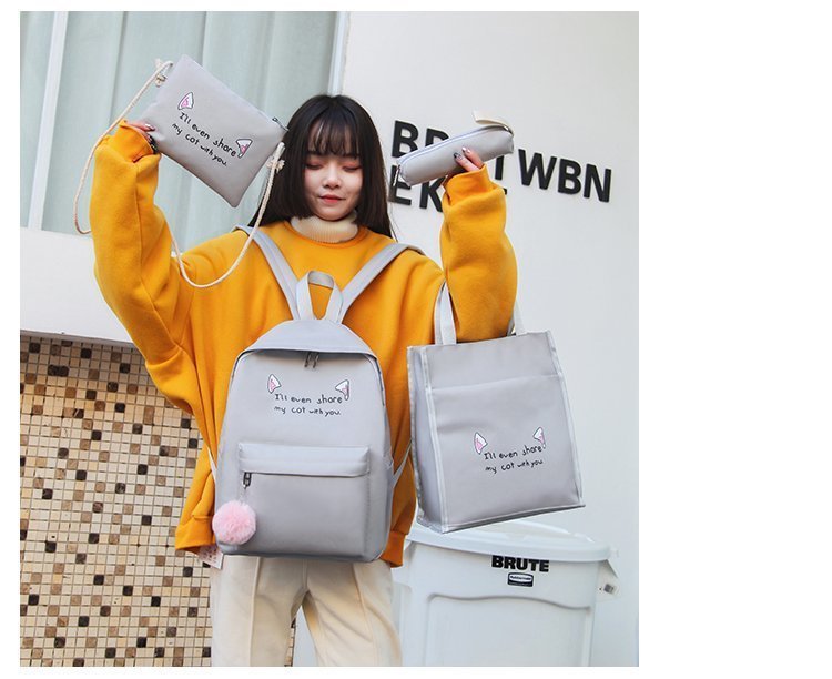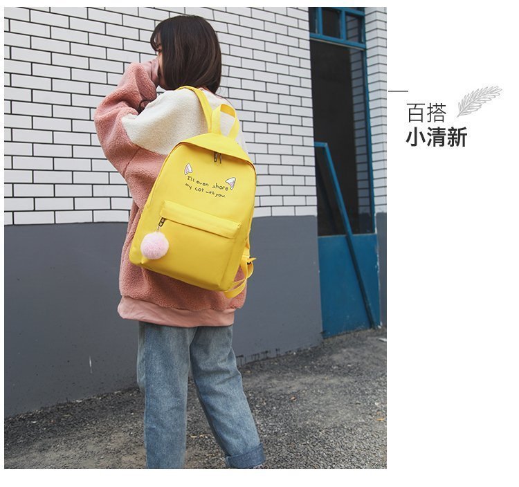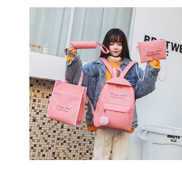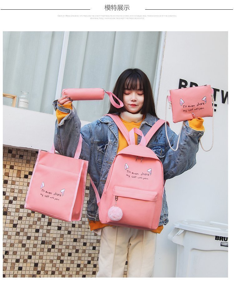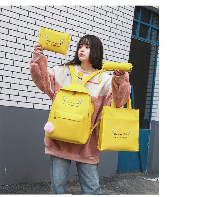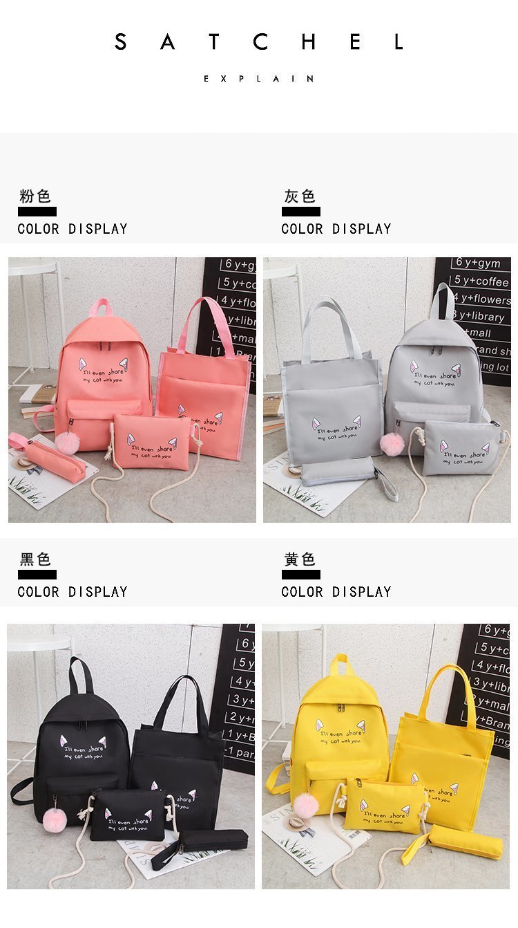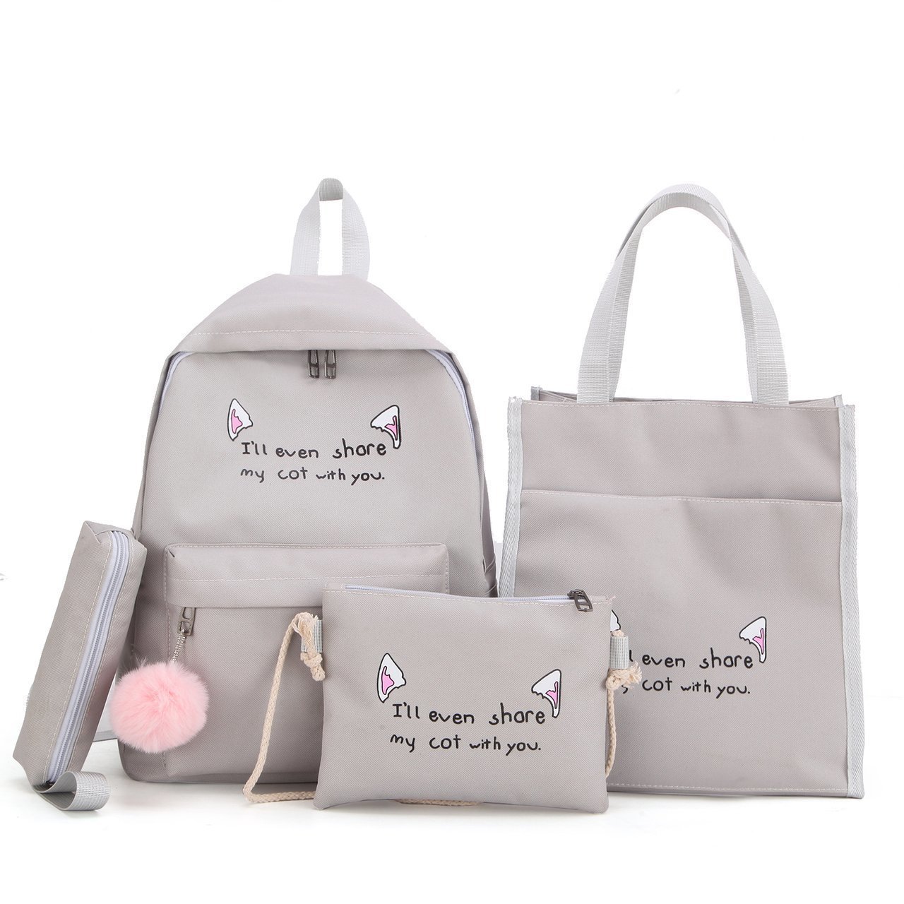 批发四件套ins风超火书包韩版原宿初中双肩包女高中学生百搭背包