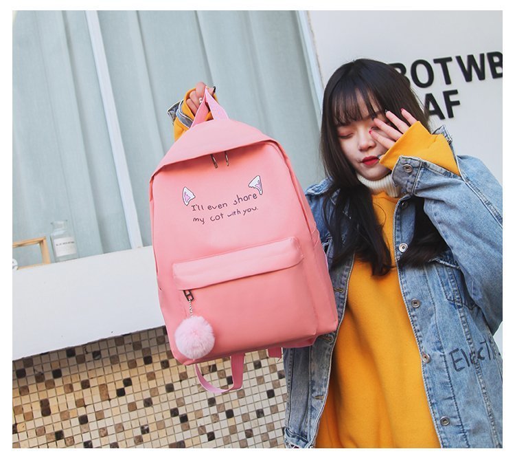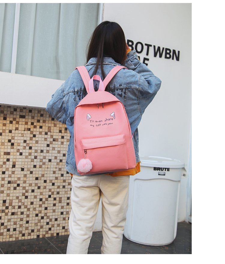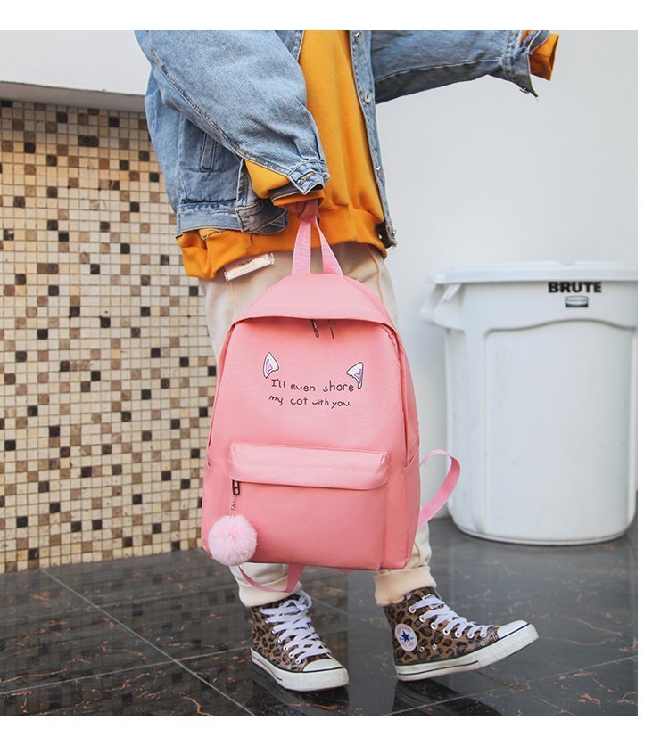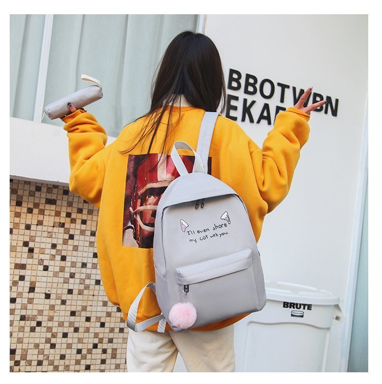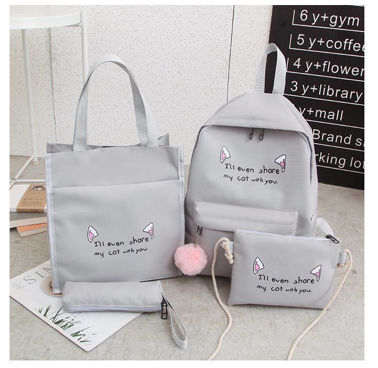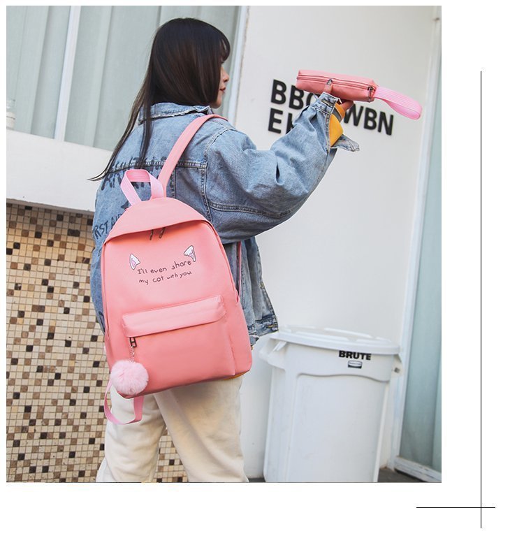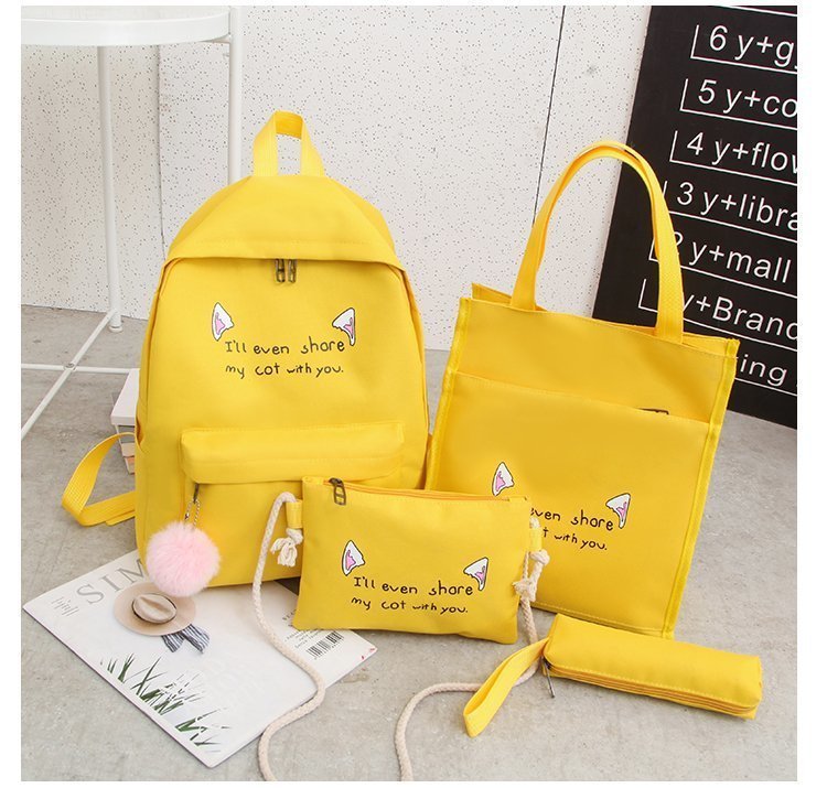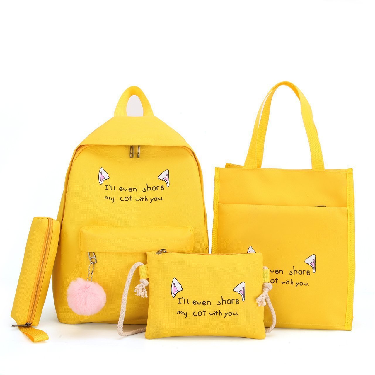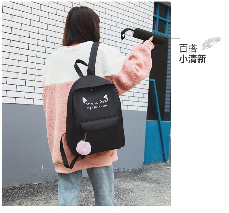 批发四件套ins风超火书包韩版原宿初中双肩包女高中学生百搭背包